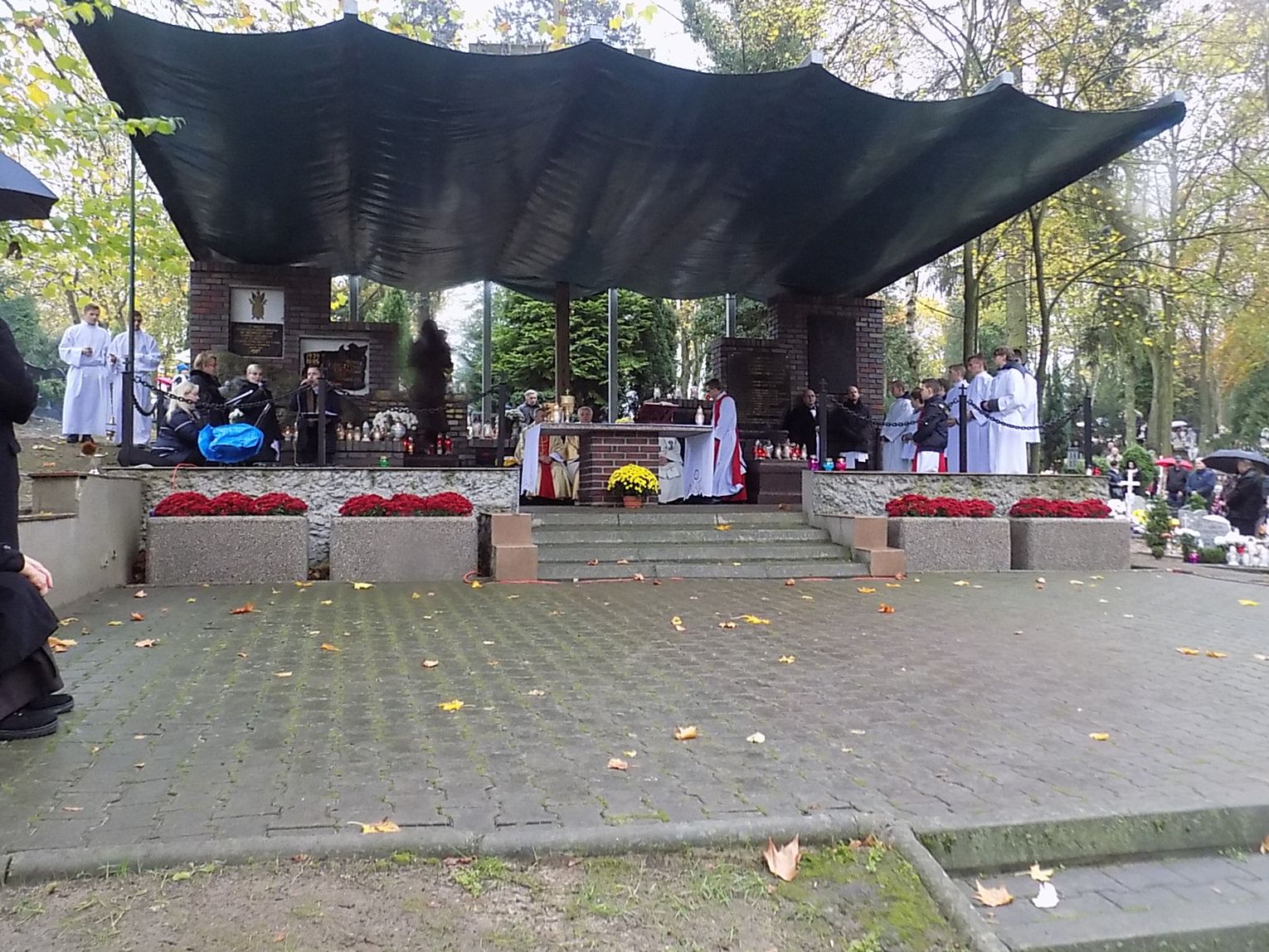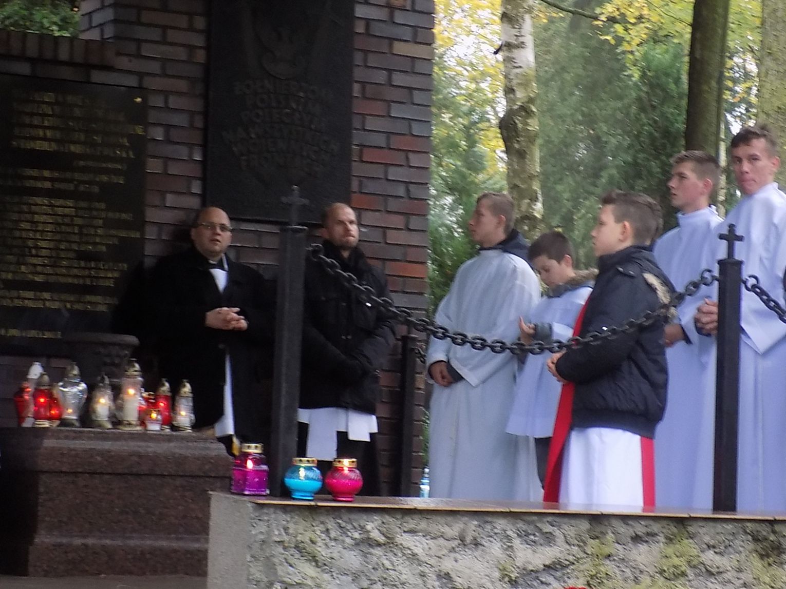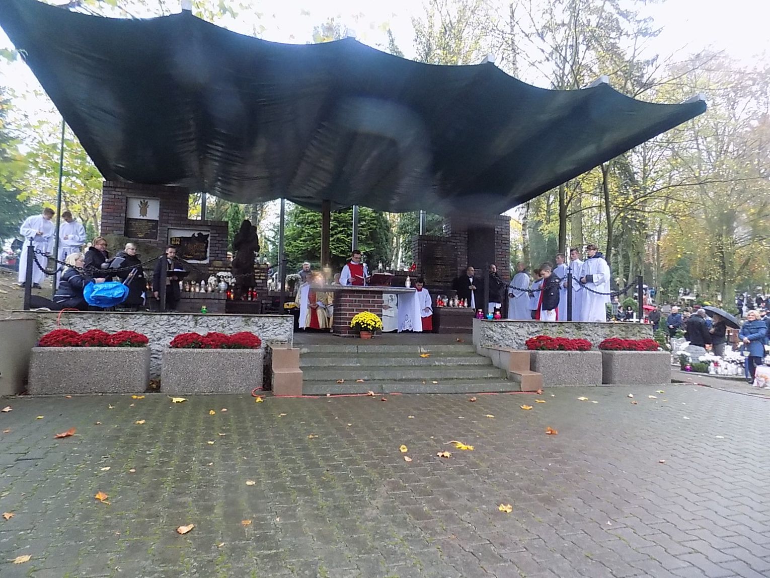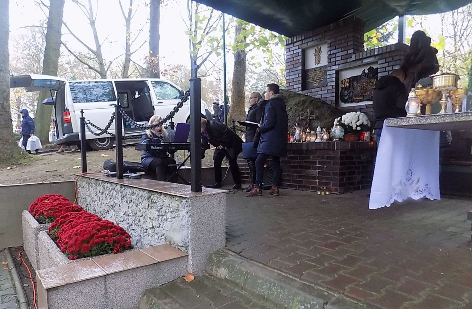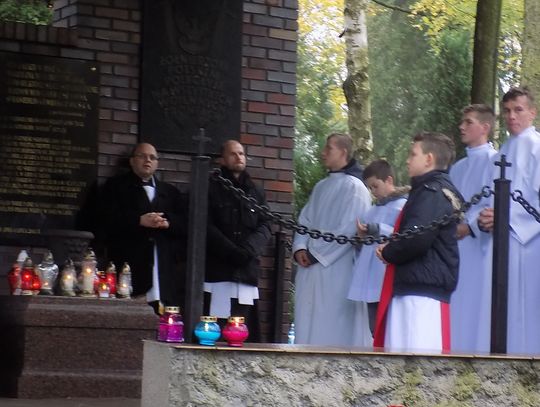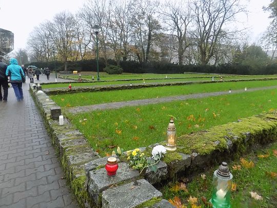 Trochę dalej, w dole tabliczki z setkami nazwisk tych, którzy zginęli za nasze miasto. Ich groby jakby zrównane z ziemią pokryła zielona jeszcze trawa. Tak rzadko pochyla się ktoś, by zapalić znicz lub położyć kwiat. Na cmentarnej Golgocie trwa msza. Księża modlą się do świętych, modlą się za zmarłych. Tylko czy za wszystkich?