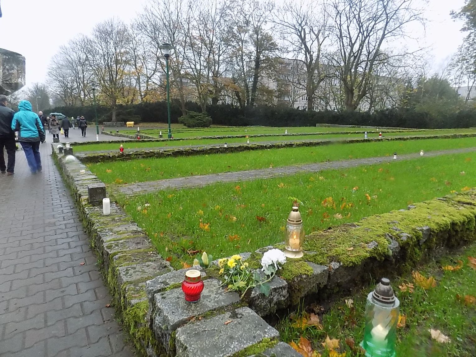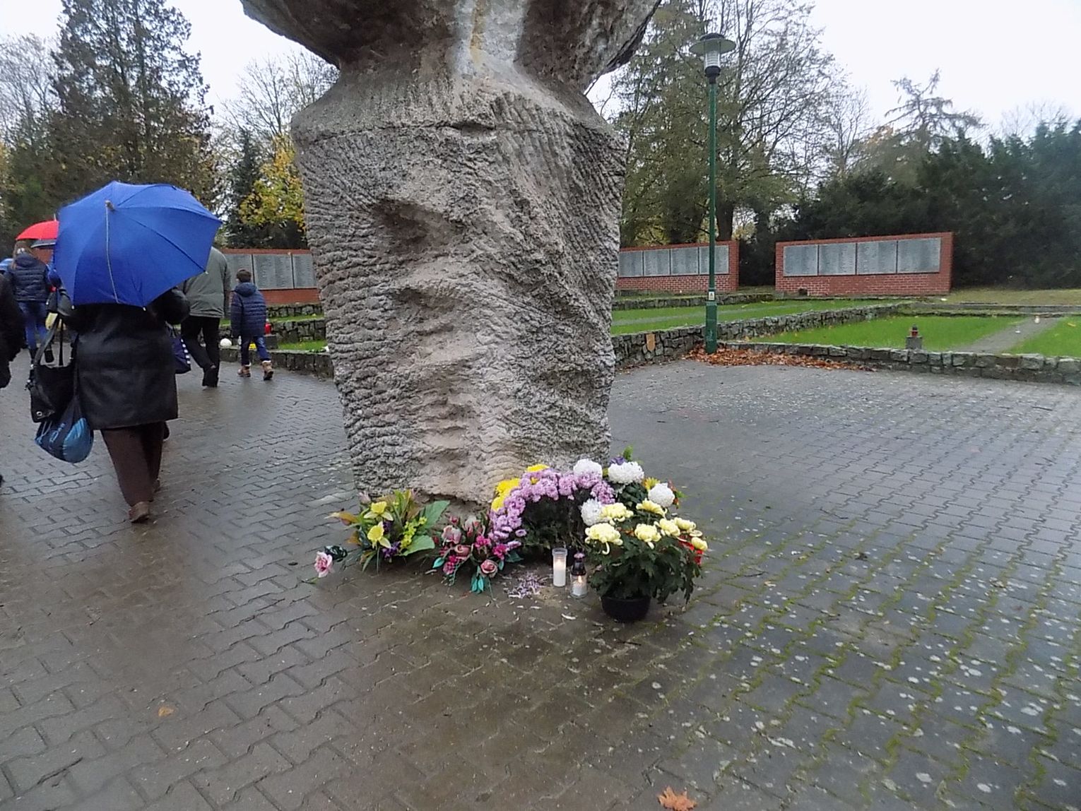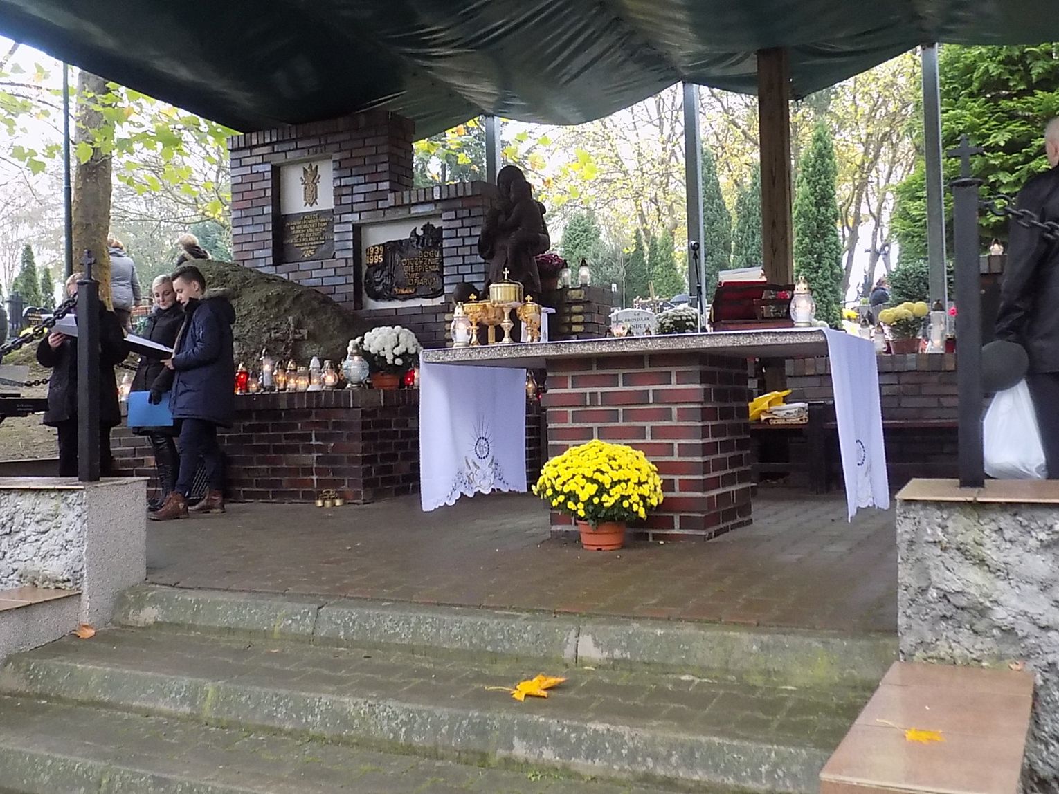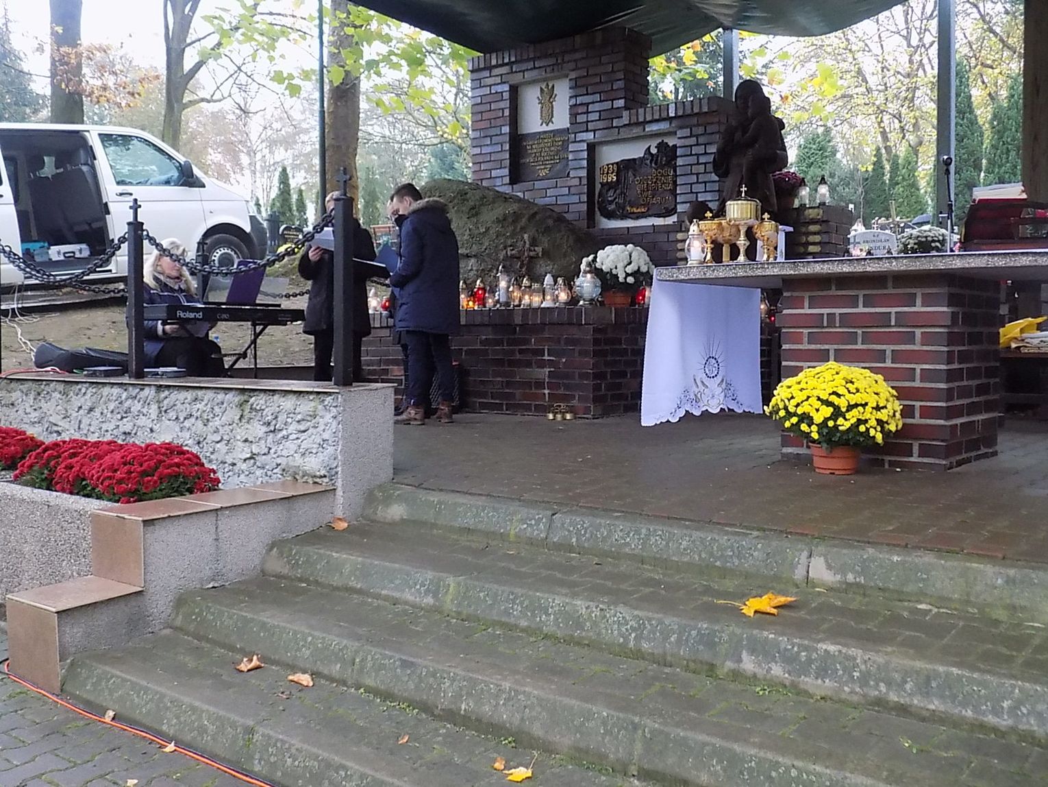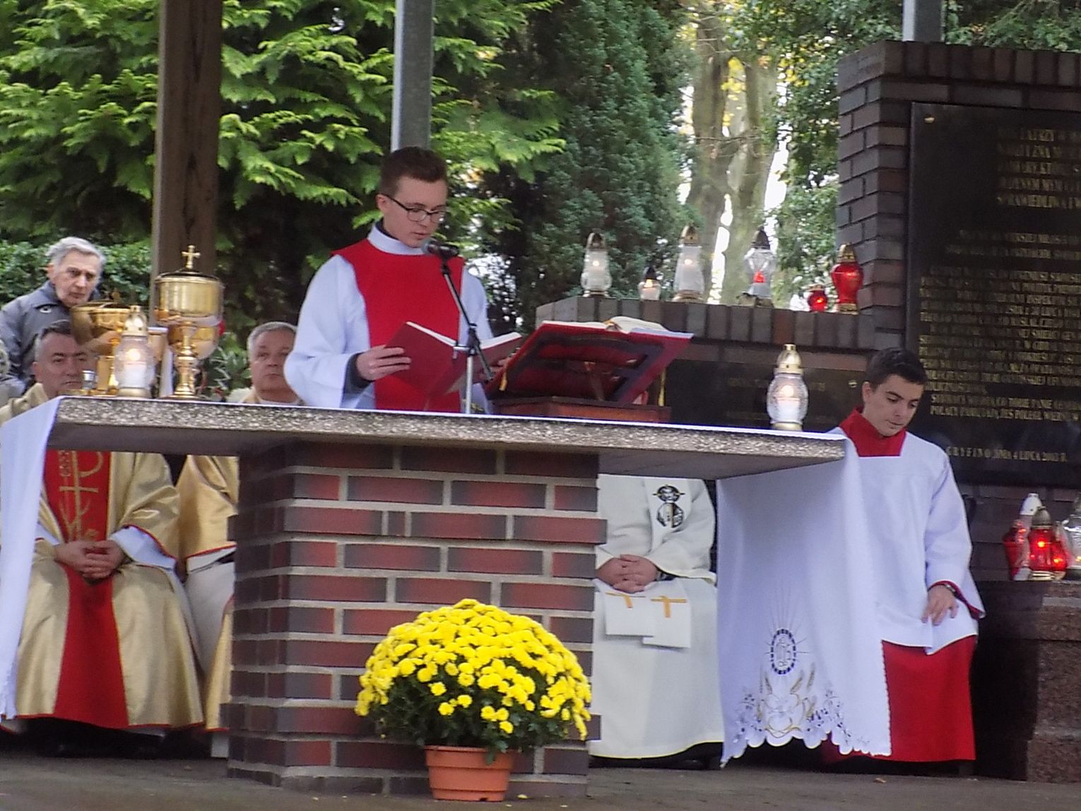Trochę dalej, w dole tabliczki z setkami nazwisk tych, którzy zginęli za nasze miasto. Ich groby jakby zrównane z ziemią pokryła zielona jeszcze trawa. Tak rzadko pochyla się ktoś, by zapalić znicz lub położyć kwiat. Na cmentarnej Golgocie trwa msza. Księża modlą się do świętych, modlą się za zmarłych. Tylko czy za wszystkich?