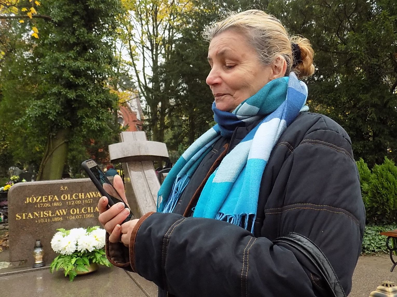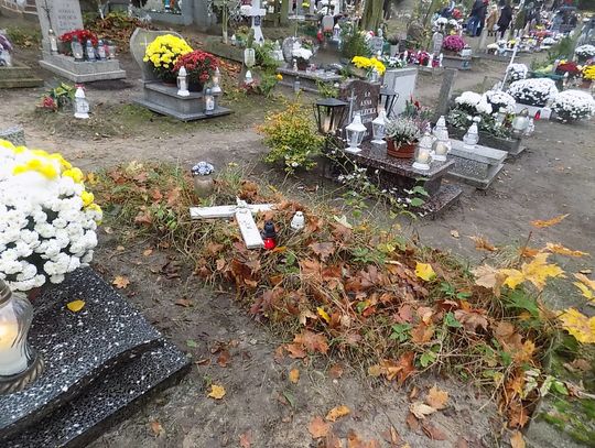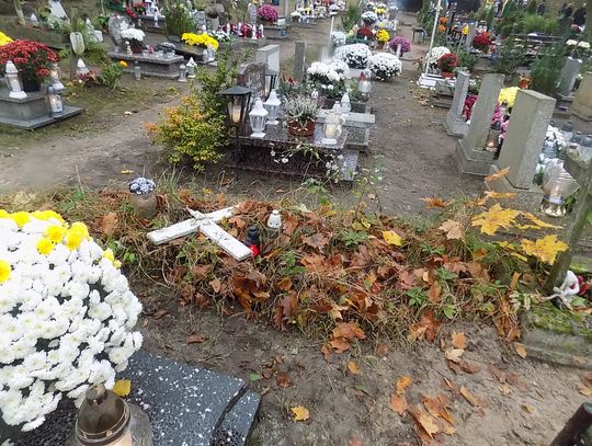 Wśród pięknych pomników, dawno zapomniany maleńki grób. Bez imienia, bez nazwiska. Pokryły go zmoknięte liście i złamany biały krzyż. I zrodziła się smutna myśl: przecież tak niewiele potrzeba – grabie, gwóźdź do krzyżyka, jeden kwiatek i świeczka oraz ktoś o wrażliwym sercu.