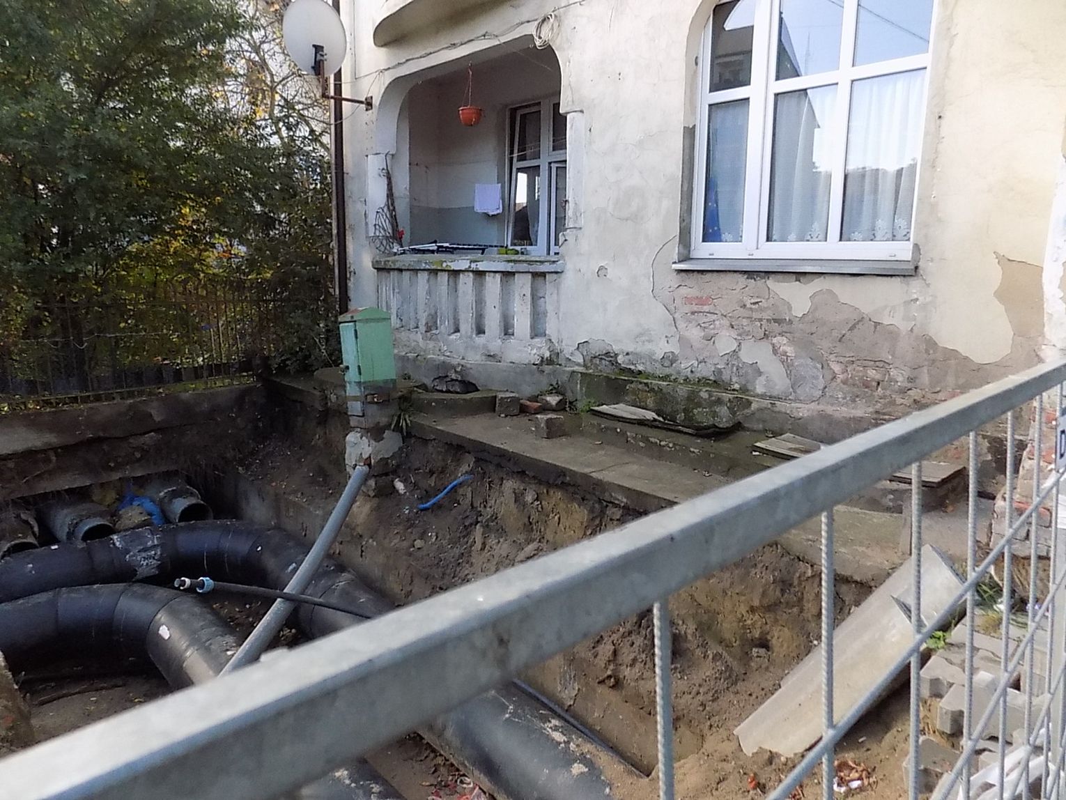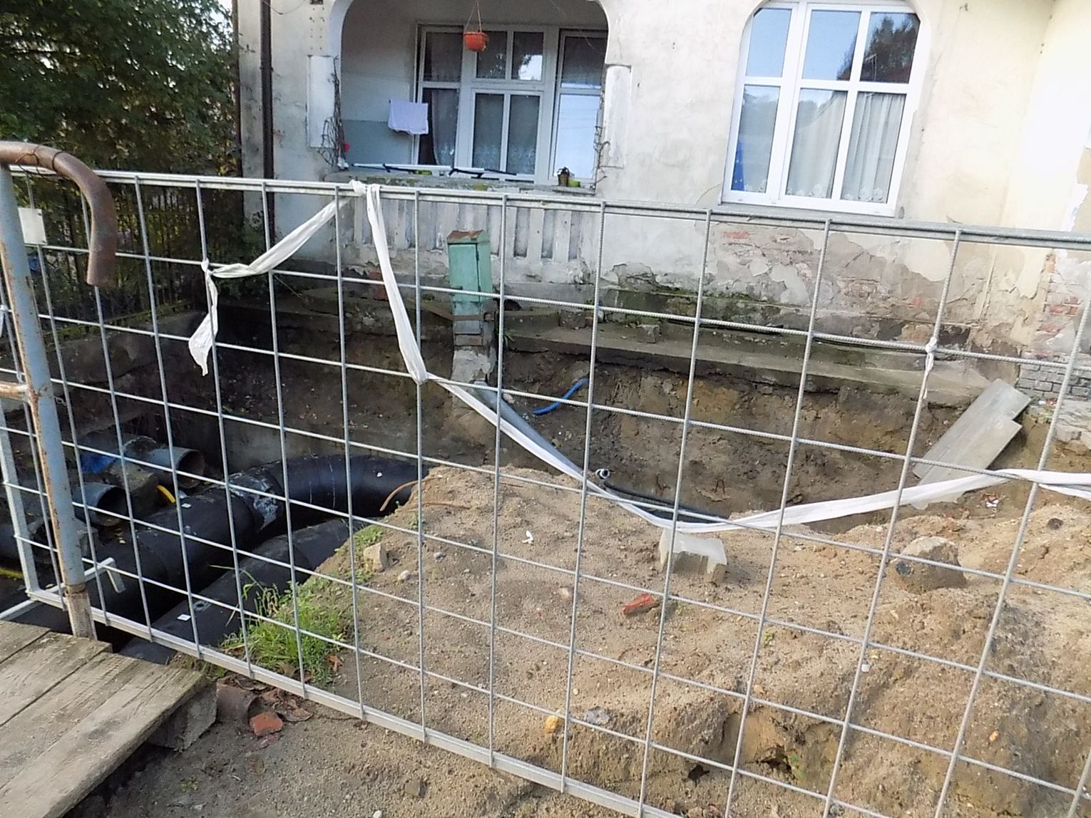 Przed kamieniczką nr 6 przy ulicy Łużyckiej rury wymieniono, ale zakończenia prac nie widać. Nic na to nie wskazuje, żeby prace zostały zakończone. Wykop jak był, tak nadal jest.