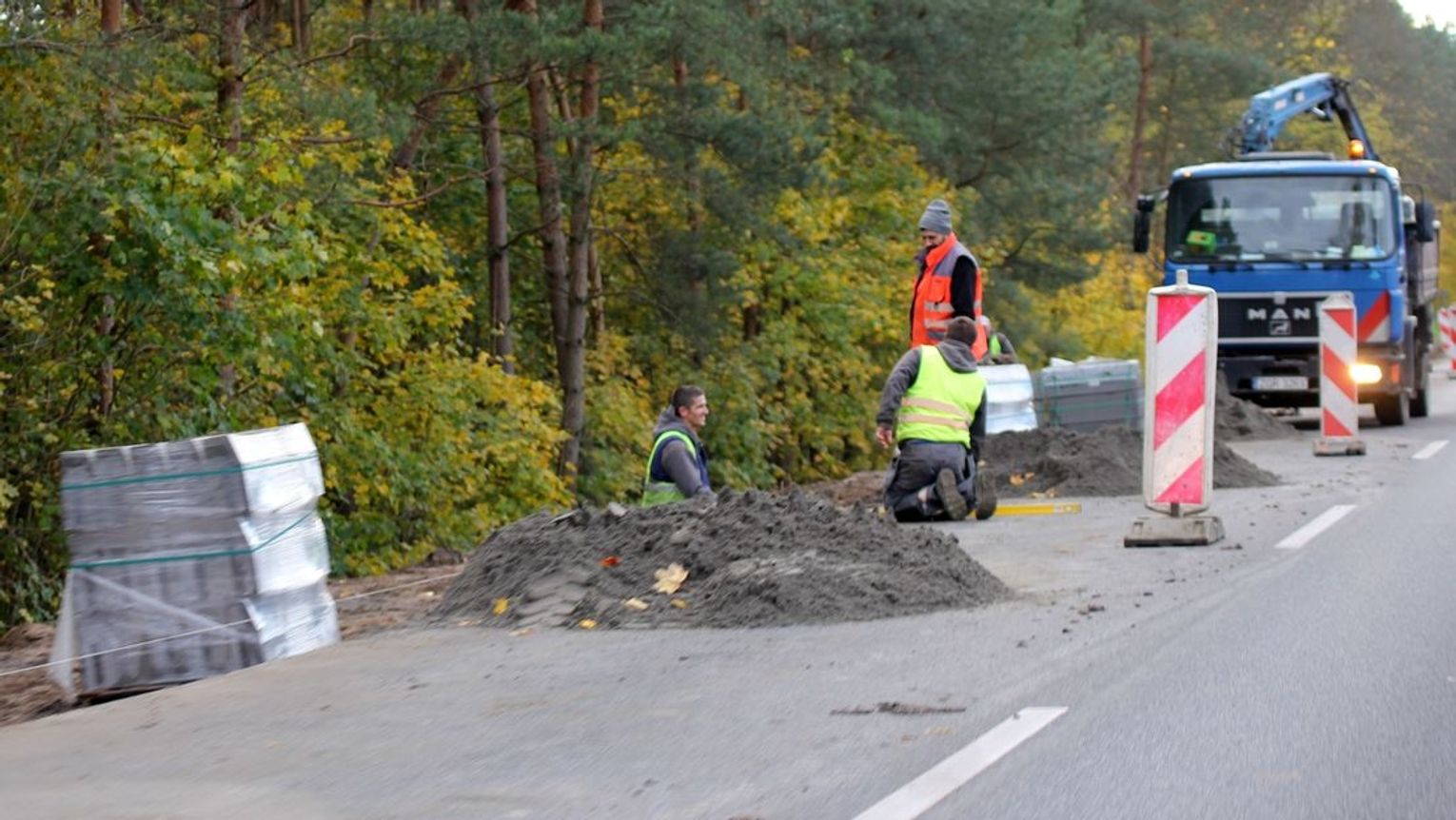 Uwaga kierowcy na drodze nr 124! Budują chodnik i zatokę autobusową