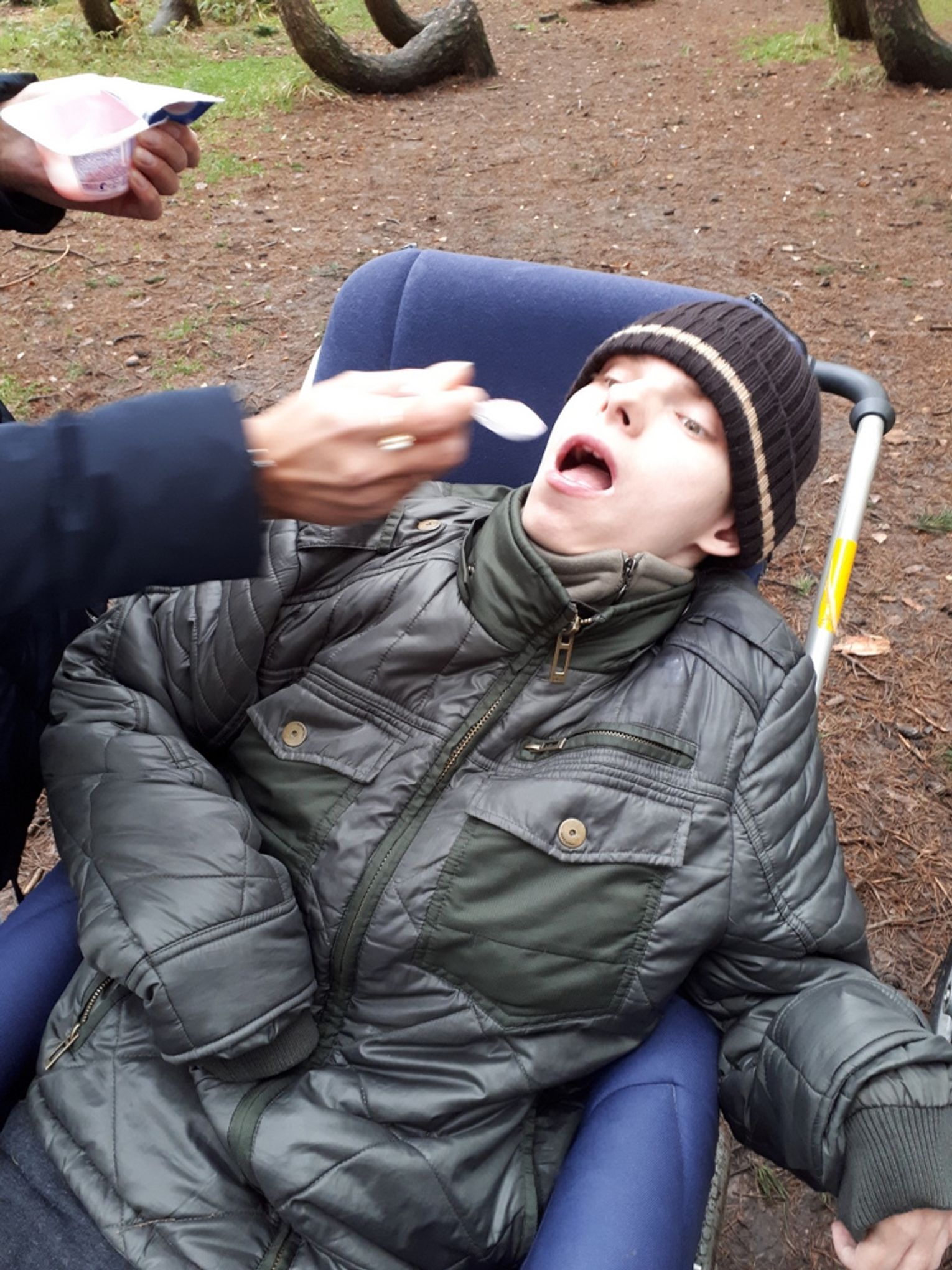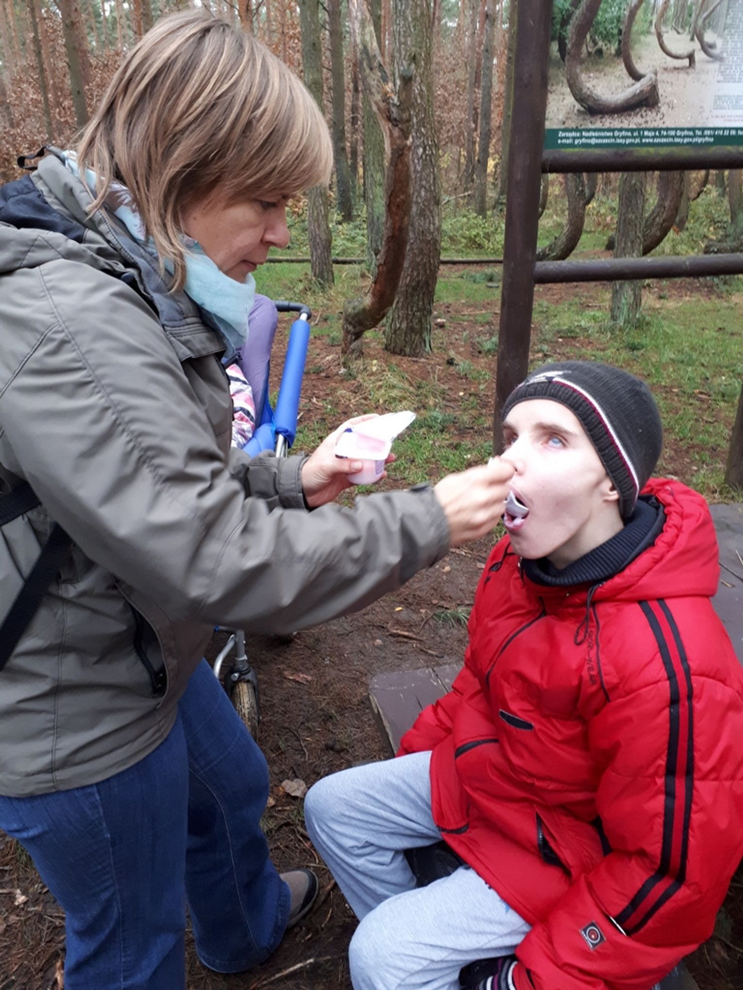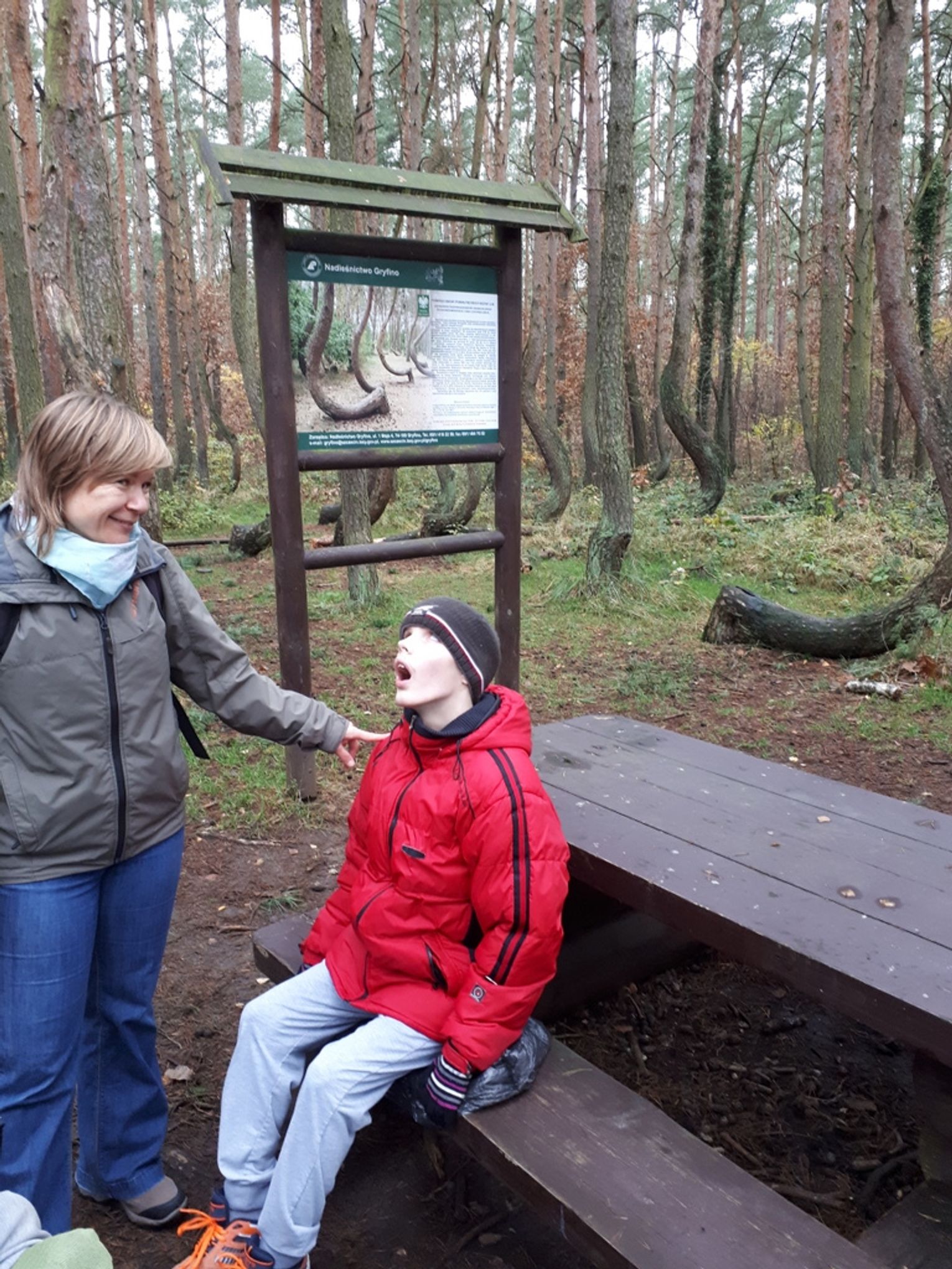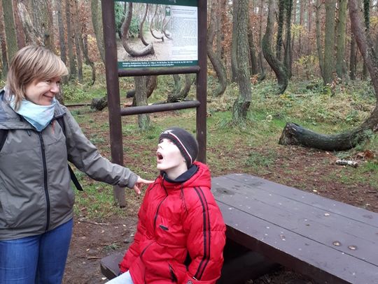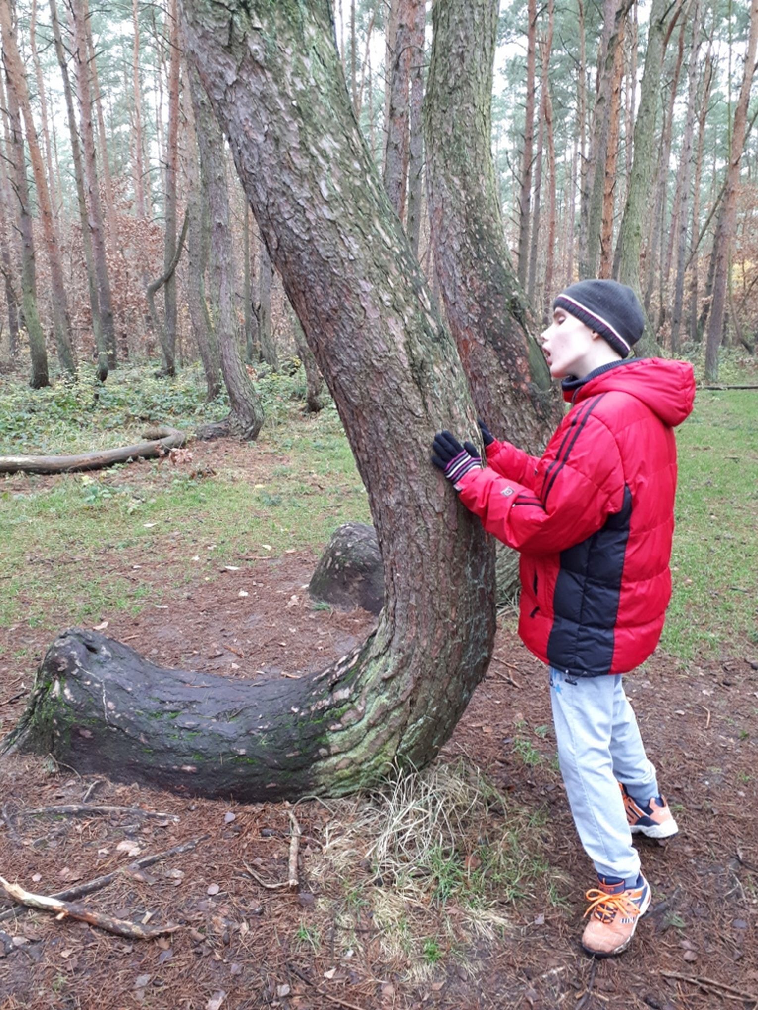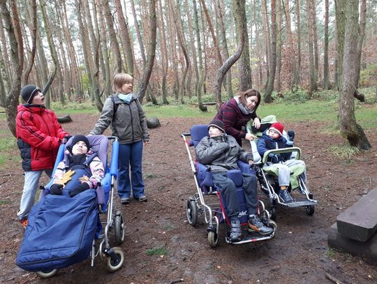 Trzecie spotkanie zaaranżowane w ramach realizacji Projektu Aktywizacji Sensoryczno - Motorycznej "Bawię się, doświadczam, rozwijam" odbyło się w czwartek 16 listopada 2017r. Uczestnicy zajęć rewalidacyjno - wychowawczych wraz z nauczycielami wyruszyli po obiedzie na listopadowy spacer do "Krzywego Lasu". Razem obserwowaliśmy otoczenie, pozostałości liści na drzewach, kolory jesieni, odczuwaliśmy zapach wilgotnej ściółki, chłodnego już powietrza.