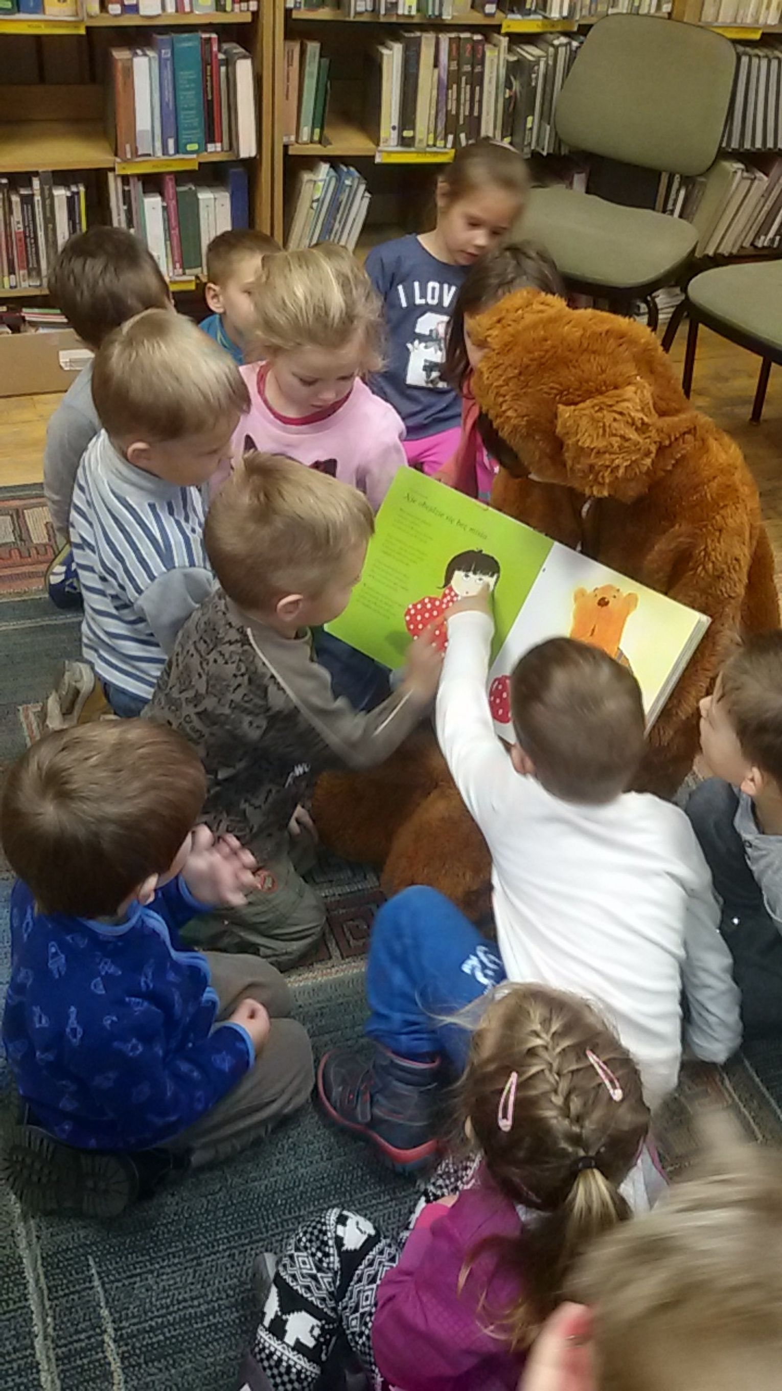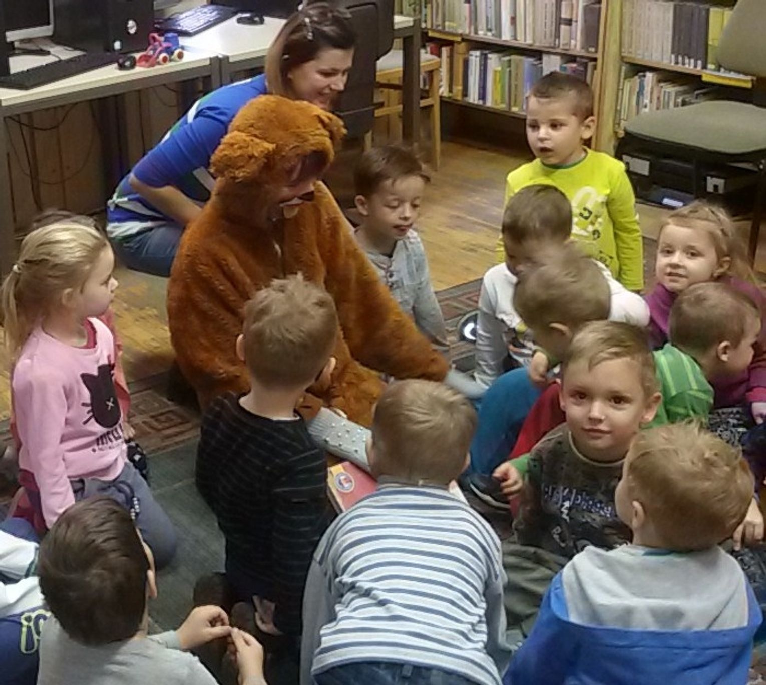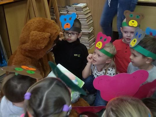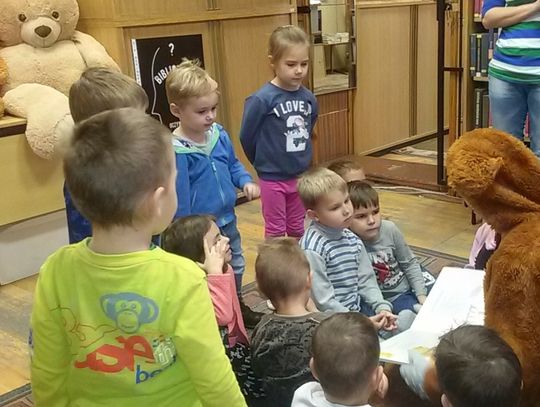 W związku z tym, w piątek 24 listopada Miejską Bibliotekę Publiczną w Moryniu odwiedziły przedszkolaki z grup Słoneczek oraz Pszczółek wraz z opiekunkami. Na początku dzieci zapoznały się z zasadami panującymi w bibliotece, następnie przywitały się z misiem, który przeczytał najmłodszym „Misiowe wierszyki”. Maluchy z uwagą i zainteresowaniem słuchały misia oraz chętnie odpowiadały na zadawane przez niego pytania. Nie zabrakło wspólnego tańca, a także znanej piosenki „Jadą, jadą misie”. Na zakończenie każdy otrzymał kolorowankę oraz słodki poczęstunek. Spotkanie upłynęło w atmosferze radości i dobrej zabawy.