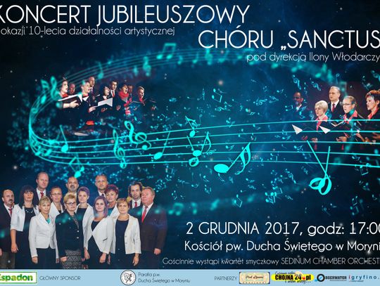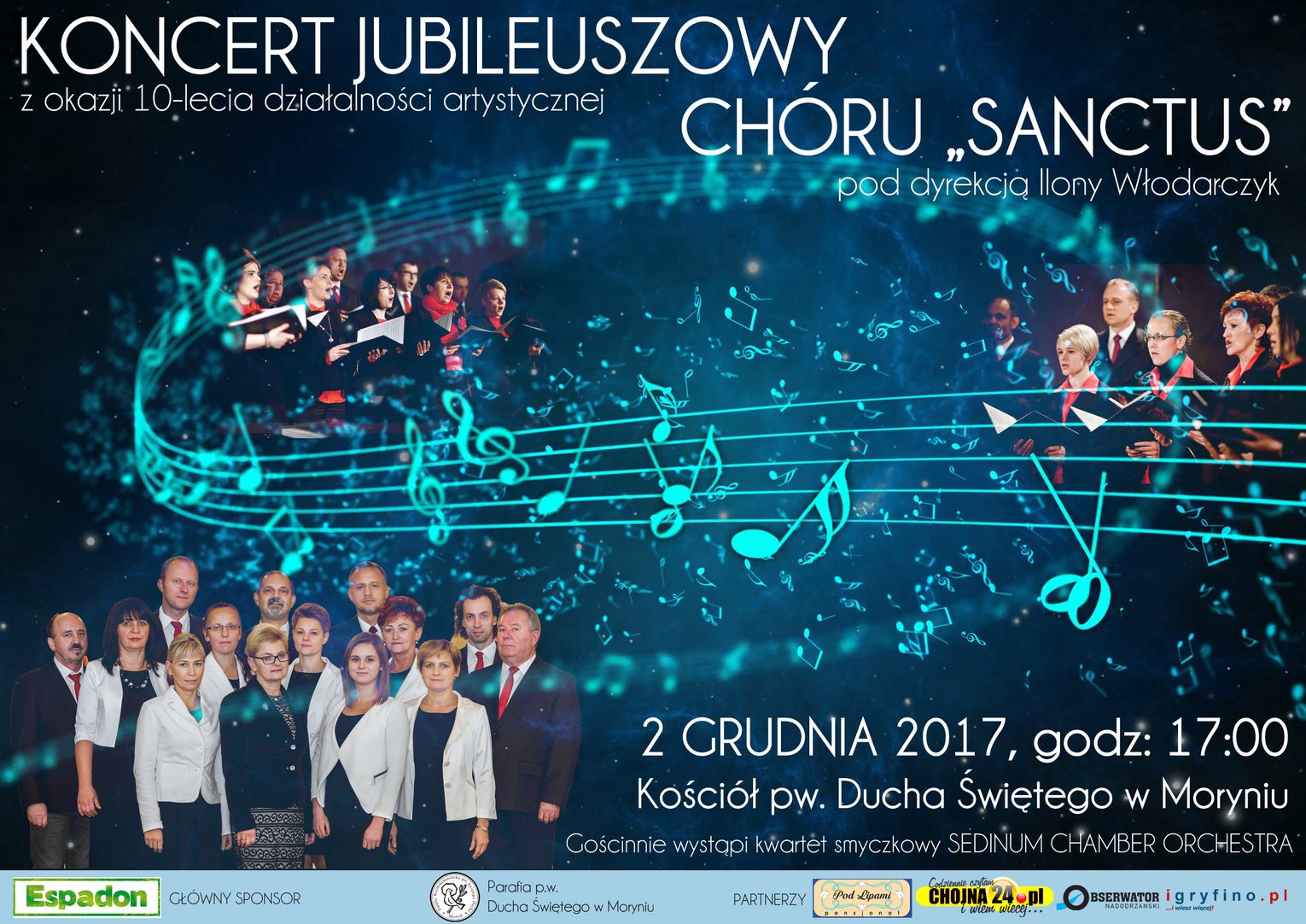 W sobotę 2 grudnia o godz. 17.00 w kościele pw. Świętego Ducha w Moryniu odbędzie się koncert chóru SANCTUS działającego przy moryńskiej parafii. Koncert odbędzie się z okazji przeżywanej w tym roku 10. rocznicy powstania chóru. Podczas koncertu zostaną wykonane różne utwory, które ukażą wartość artystyczną chóru oraz jego szeroki repertuar. Gościnnie wystąpi kwartet smyczkowy SEDINUM CHAMBER ORCHESTRA.