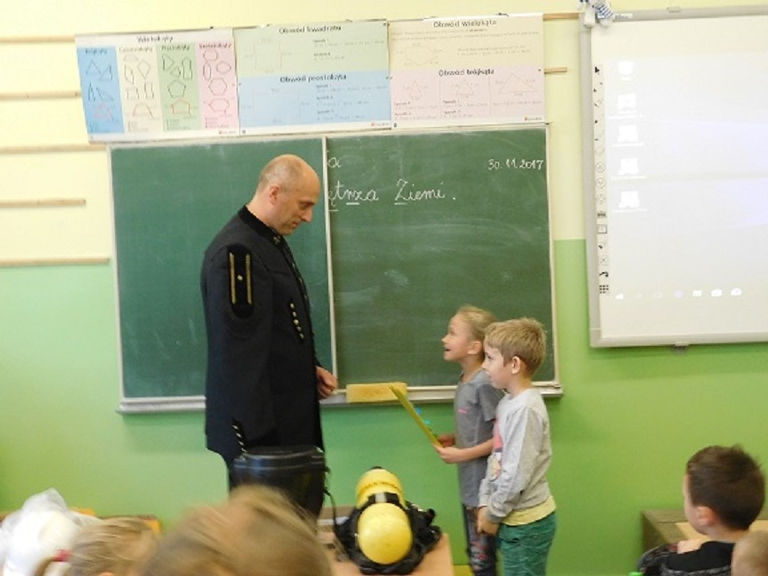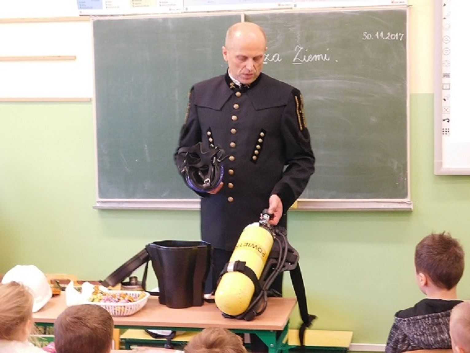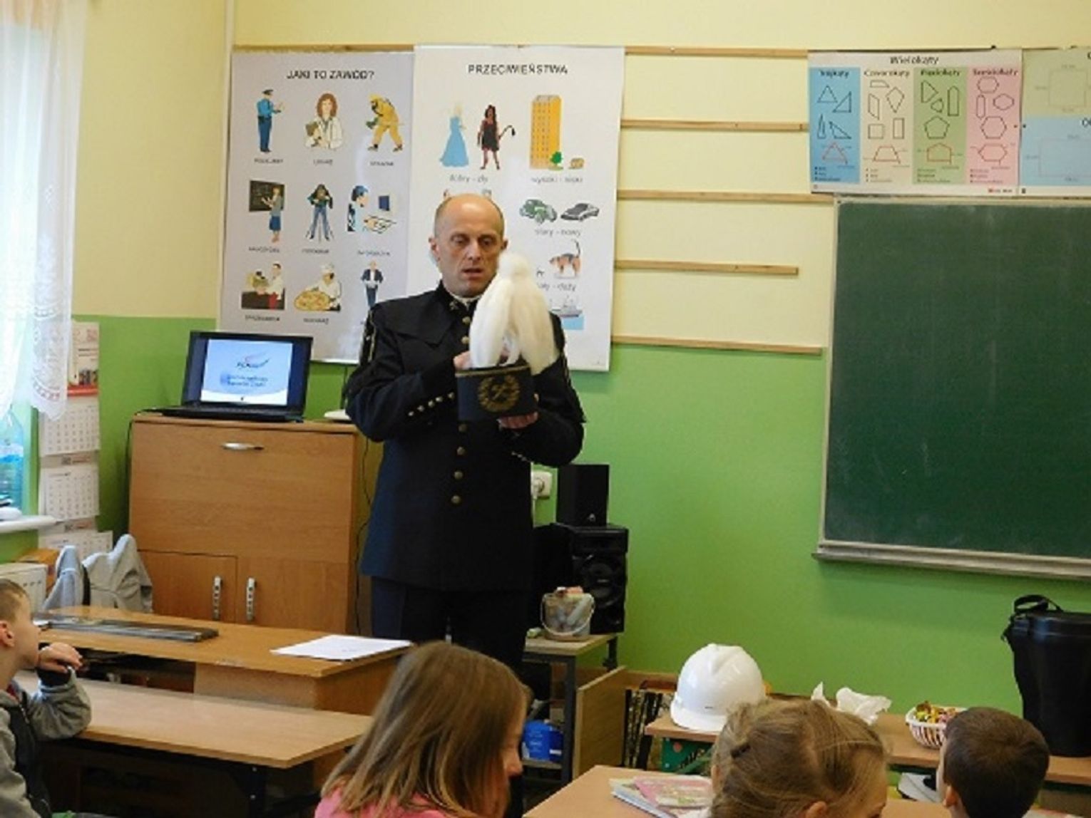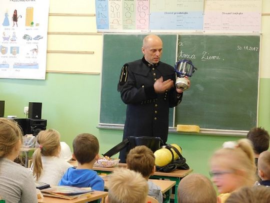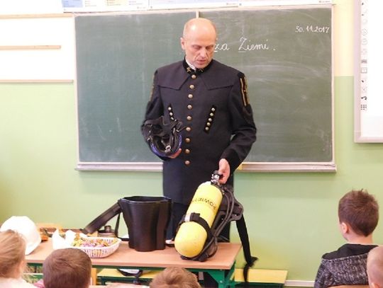 Ponadto dowiedziały się jaka jest różnica między górnictwem węglowym, a naftowym i nauczyły się rozróżniać znaczenie barw pióropuszy na czapce górnika („Czako”). Uczniowie z zainteresowaniem uczestniczyli w zajęciach, zadawali pytania i odpowiadali na zagadki gościa. Na zakończenie dzieci podziękowały górnikowi i otrzymały upominki (czapki górnicze, broszury i słodycze). Cała społeczność szkolna dziękuje panu Januszowi za ciekawe zajęcia. Mamy nadzieję, że w przyszłym roku znów się spotkamy.