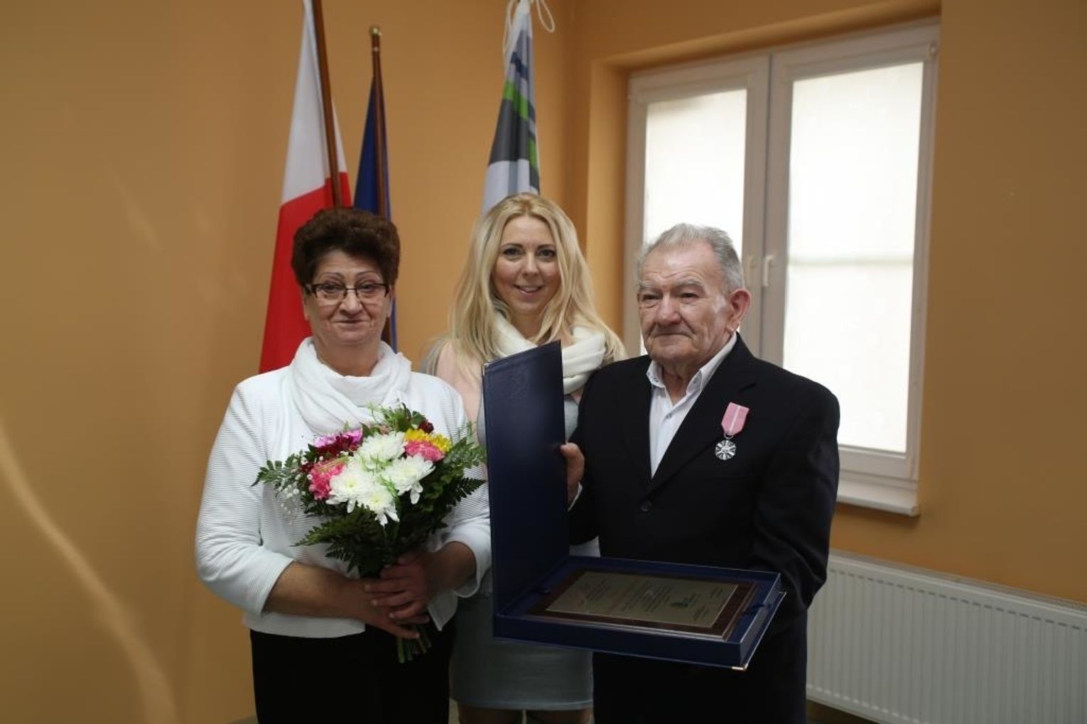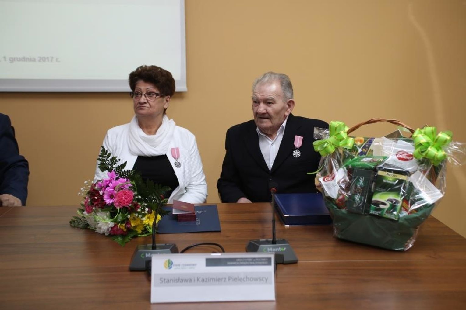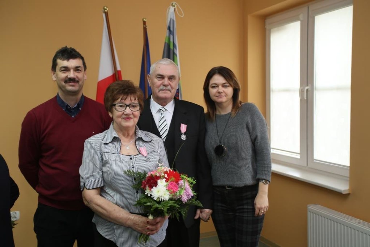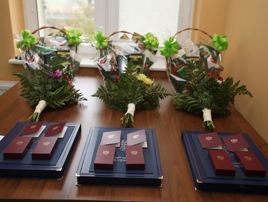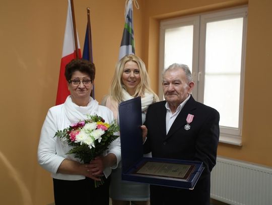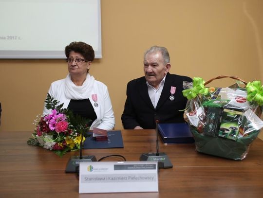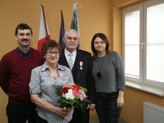Dwóm parom ze Starego Czarnowa, Zuzannie i Marianowi Wojciechowskim oraz Teresie i Henrykowi Rabenda, wójt Marzena Grzywińska wręczyła odznaczenia w miejscu zamieszkania.