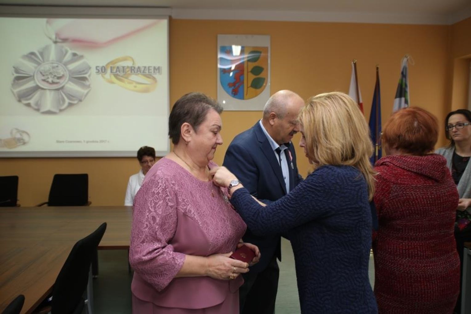 - W naszej gminie coraz więcej par może pochwalić się takim wspaniałym stażem małżeńskim. Łza kręci się w oku, kiedy patrzę, jak niesiecie Państwo swoją miłość przez całe życie, że mimo trudności i kłopotów idziecie w szczęściu razem od tylu lat. Z pewnością bez wierności, poszanowania siebie i wzajemnego zrozumienia, nie byłoby tak niezwykłego święta zarówno dla Was, jak i dla nas, mieszkańców gminy - podkreśliła wójt Marzena Grzywińska.