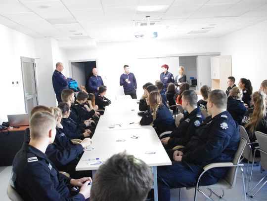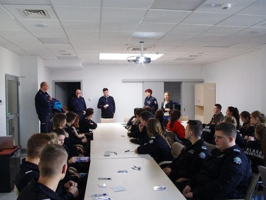 Policjanci odpowiadali na bardzo wiele szczegółowych pytań. Gimnazjaliści kierowali również pytania do swoich starszych kolegów z klasy mundurowej.