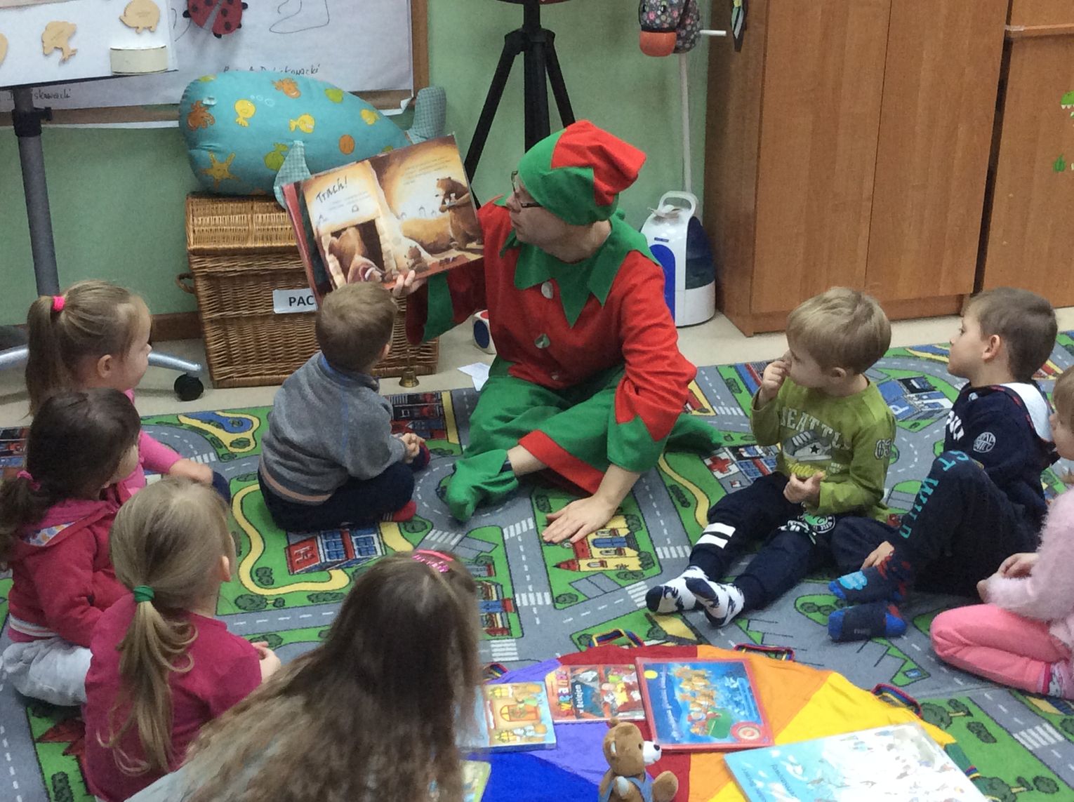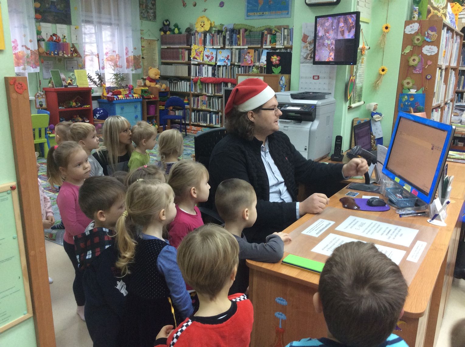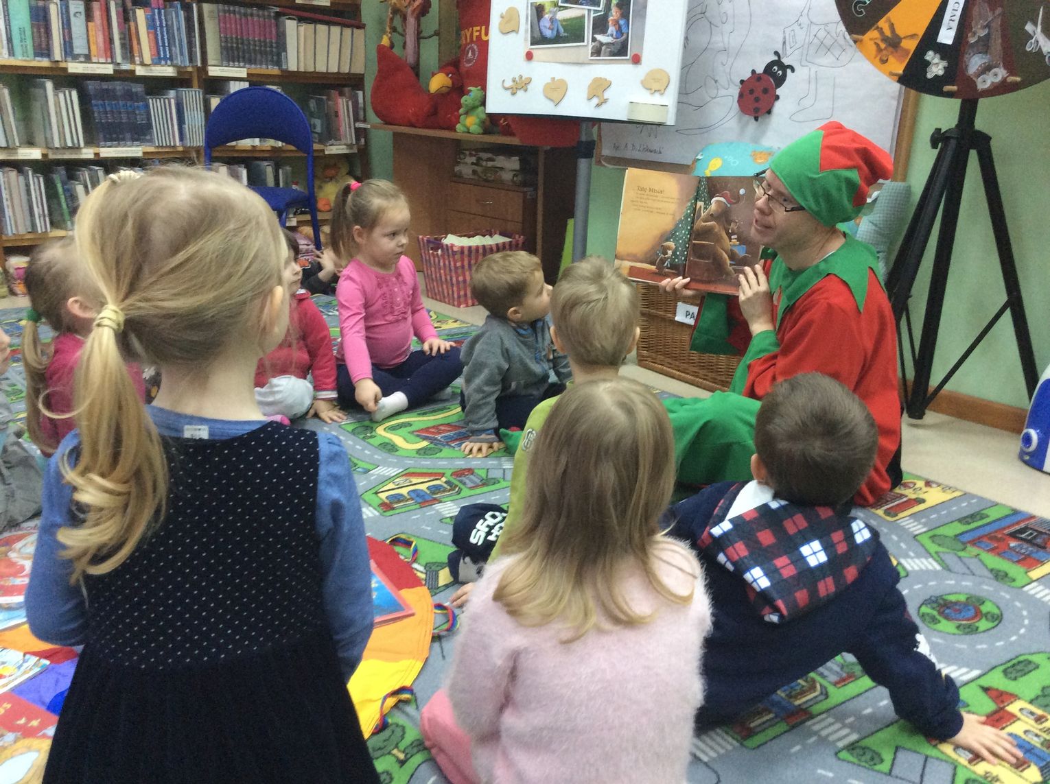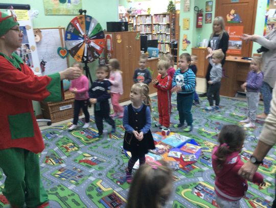 Cała historia z Mikołajem skończyła się szczęśliwie, a Przyjaciele Uszatka oglądali jeszcze świąteczne bajeczki. W prezencie otrzymały pluszowego misia i bajeczkę do przedszkolnej biblioteczki. Następną wizytę zaplanowaliśmy wiosną. Ciekawe kogo wtedy przedszkolaki spotkają w dziecięcej bibliotece?