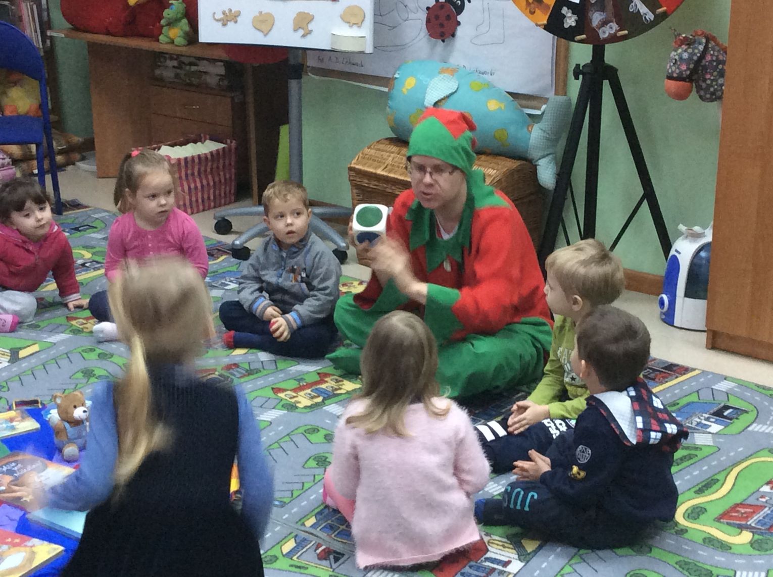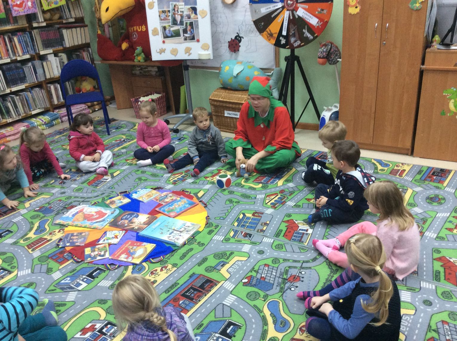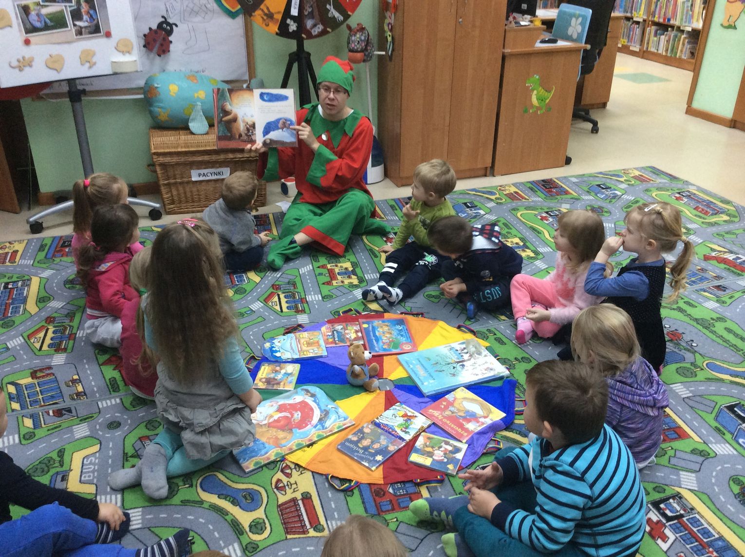 Cała historia z Mikołajem skończyła się szczęśliwie, a Przyjaciele Uszatka oglądali jeszcze świąteczne bajeczki. W prezencie otrzymały pluszowego misia i bajeczkę do przedszkolnej biblioteczki. Następną wizytę zaplanowaliśmy wiosną. Ciekawe kogo wtedy przedszkolaki spotkają w dziecięcej bibliotece?