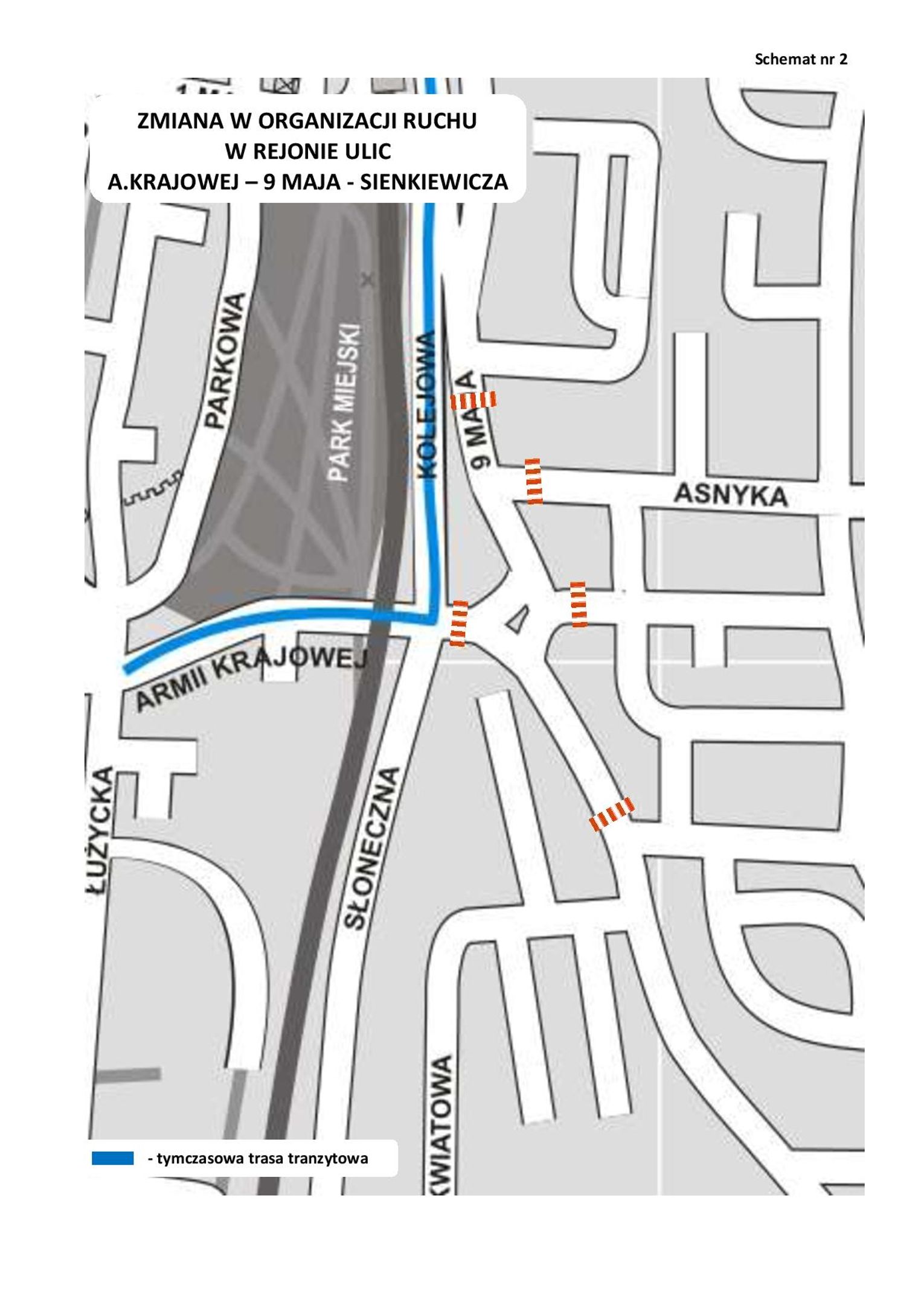 2. Zamknięciu skrzyżowania ulic Armii Krajowej - 9 Maja - Sienkiewicza:
