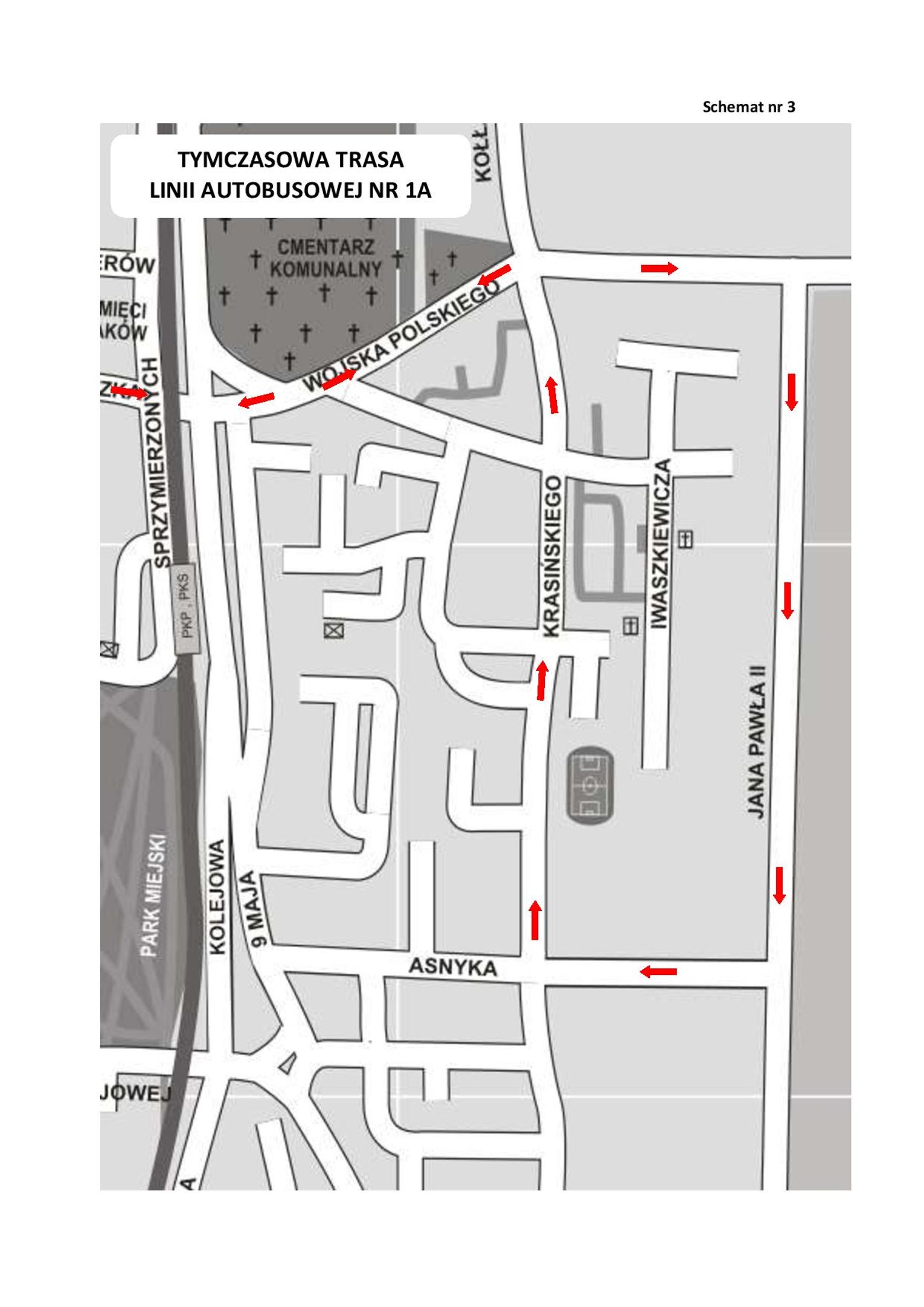 3. Zmianie trasy linii autobusowej nr 1A - jak na schemacie nr 3 ( w fotogalerii)
