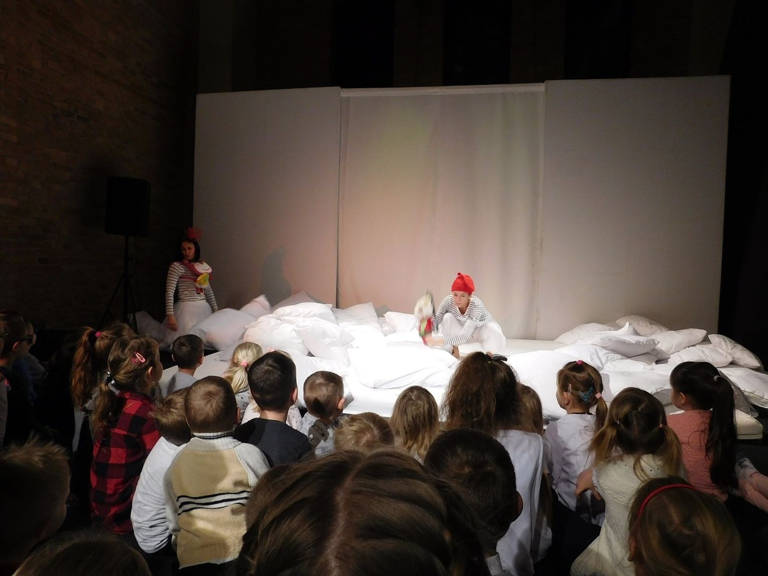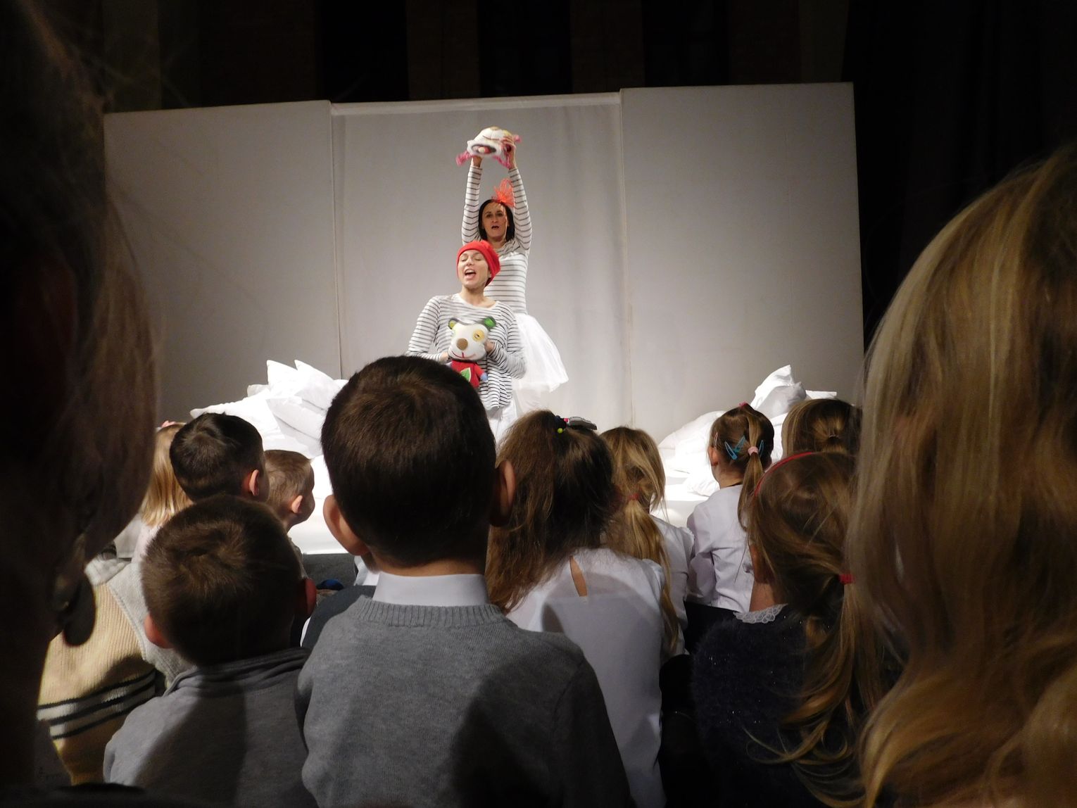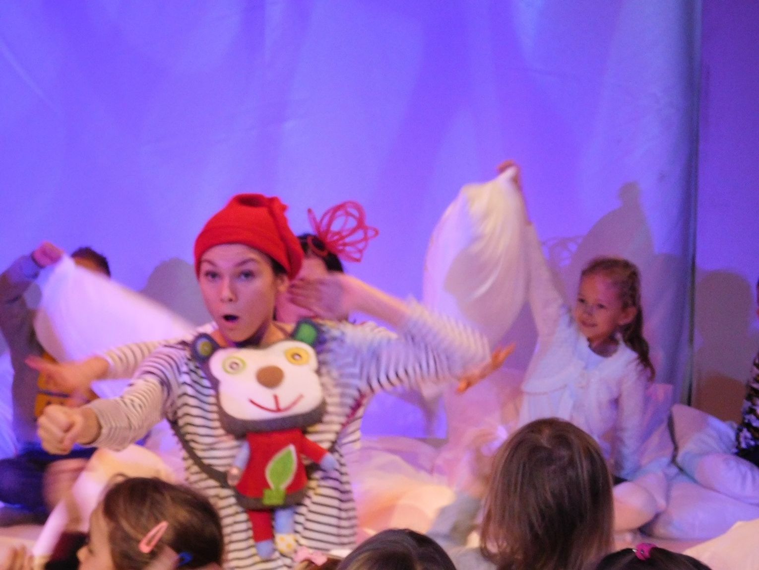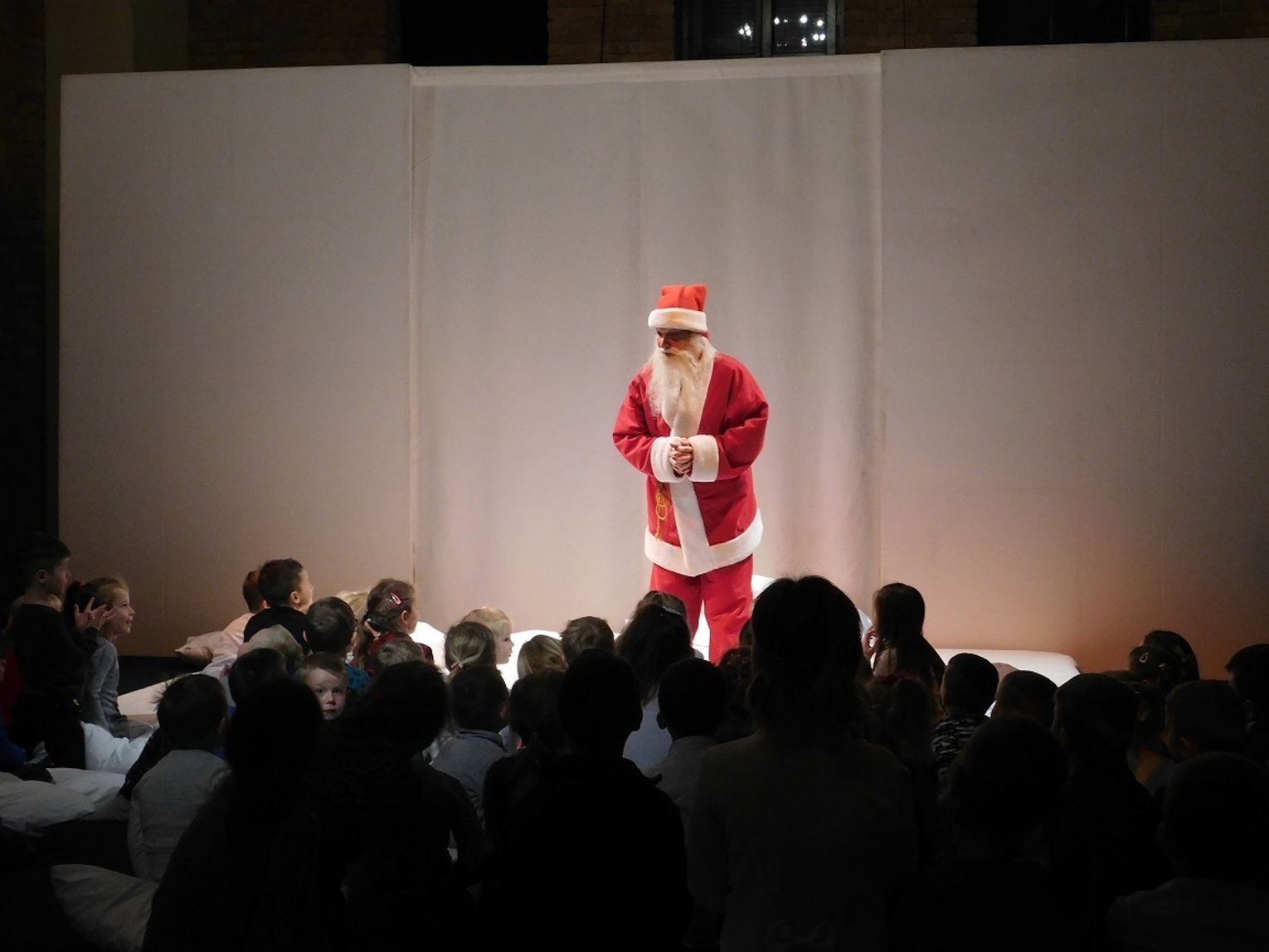 Poprzez wspólna zabawę z aktorami dzieci dowiedziały się jaki kształt ma Smutek, a jak smakuje Radość i czy Strach naprawdę ma wielkie oczy? Po przedstawieniu uczestników odwiedził Święty Mikołaj ze słodkim upominkiem.