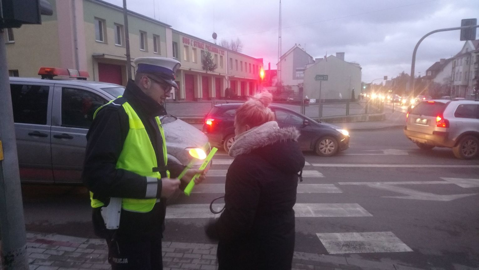 Funkcjonariusze zachęcali pieszych uczestników ruchu drogowego do zwiększenia własnego bezpieczeństwa propagując noszenie na odzieży elementów odblaskowych, dzięki którym stają się bardziej widoczni dla kierujących pojazdami. Nosząc elementy odblaskowe, szczególnie po zmroku, nawet w terenie zabudowanym jesteśmy bardziej widoczni a tym samym bezpieczniejsi.