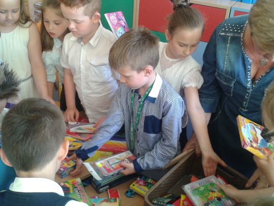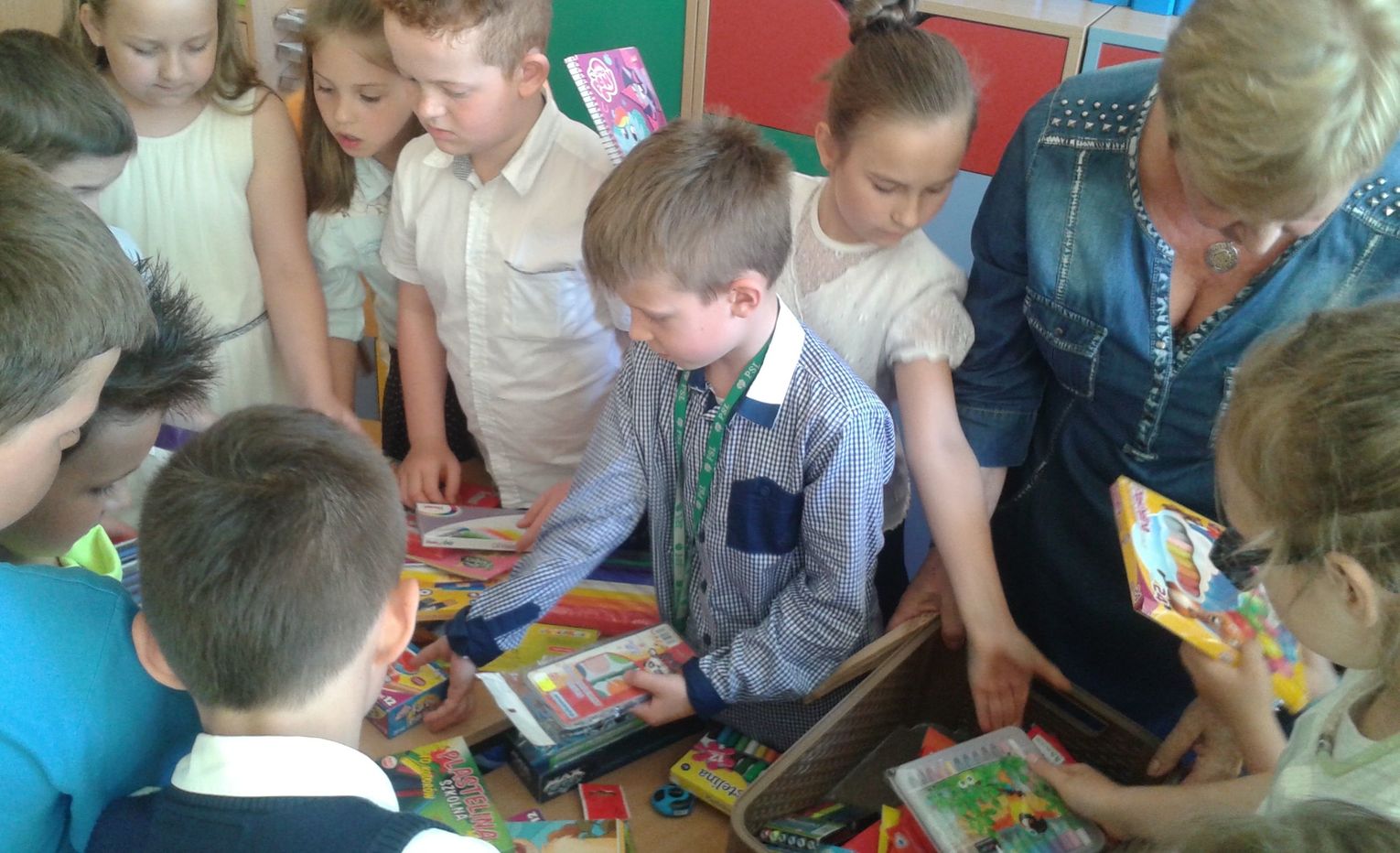 W miniony czwartek, 2 czerwca, najmłodsi Wolontariusze Stowarzyszenia „Jestem i pomagam” ze Szkoły Podstawowej nr 3 w Gryfinie przekazali Ewie Chludzińskiej-Lewczuk zebrane przez siebie i swoich kolegów z innych klas materiały plastyczne – bloki, kredki, plastelinę, farby, wycinanki, kleje i nożyczki.