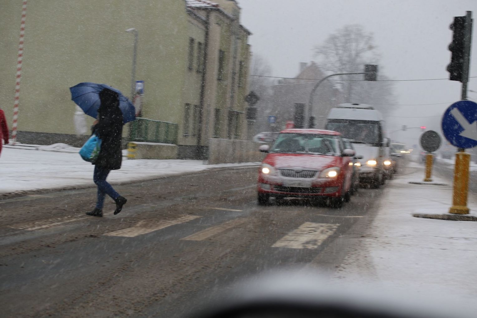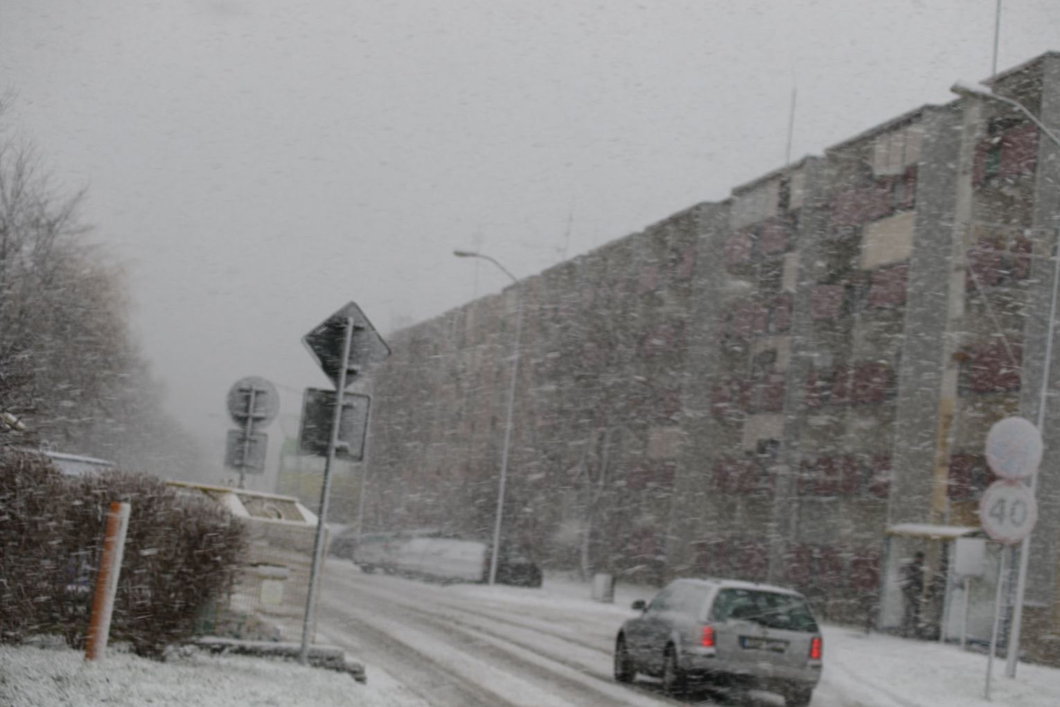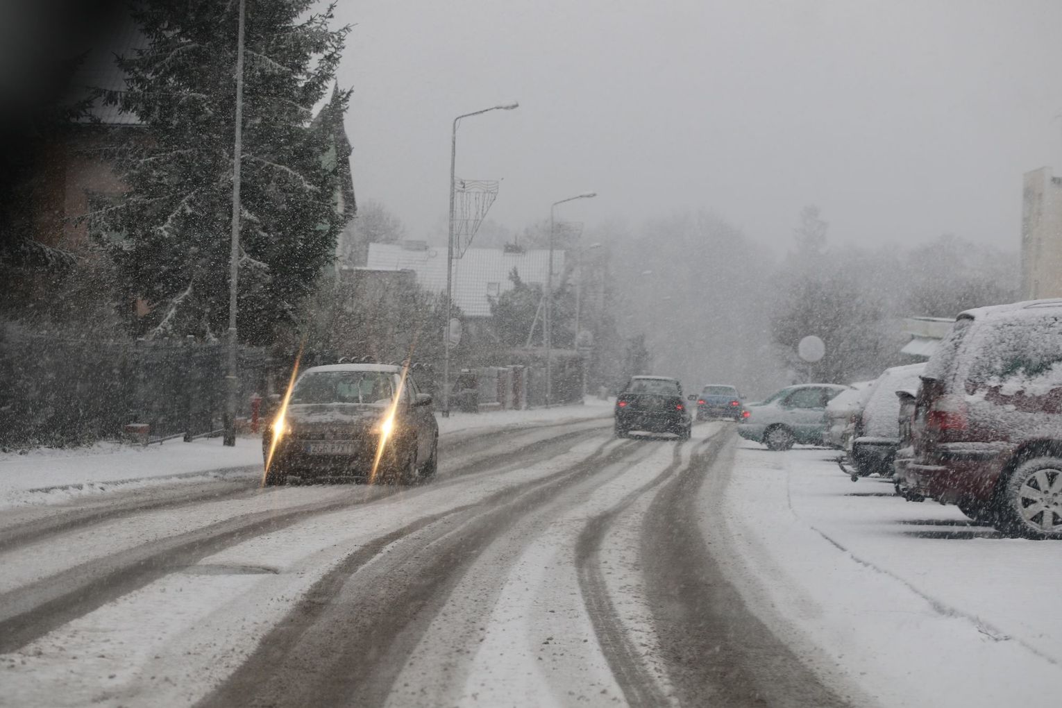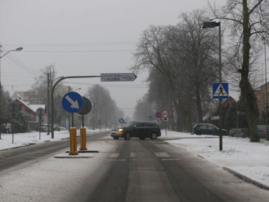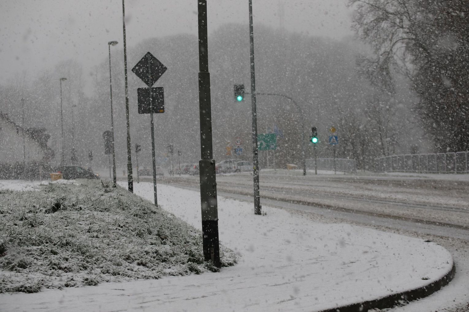 Znaki poziome i pionowe na ulicach przysypane są śniegiem. Samochody ślizgają się na drodze, zwłaszcza na zakrętach.