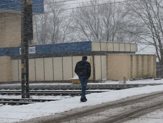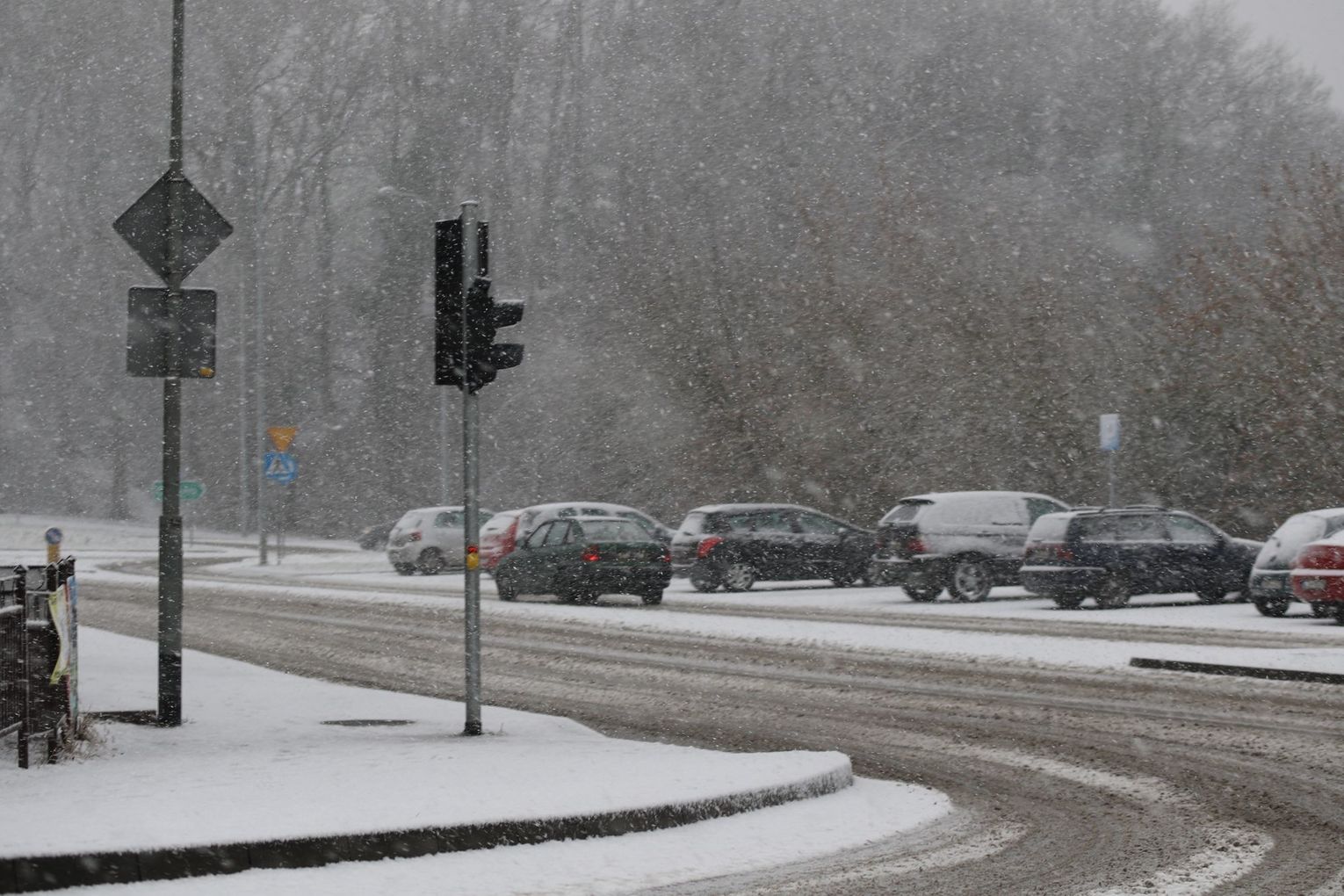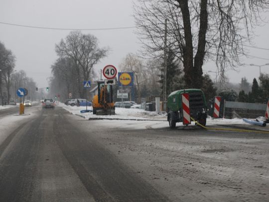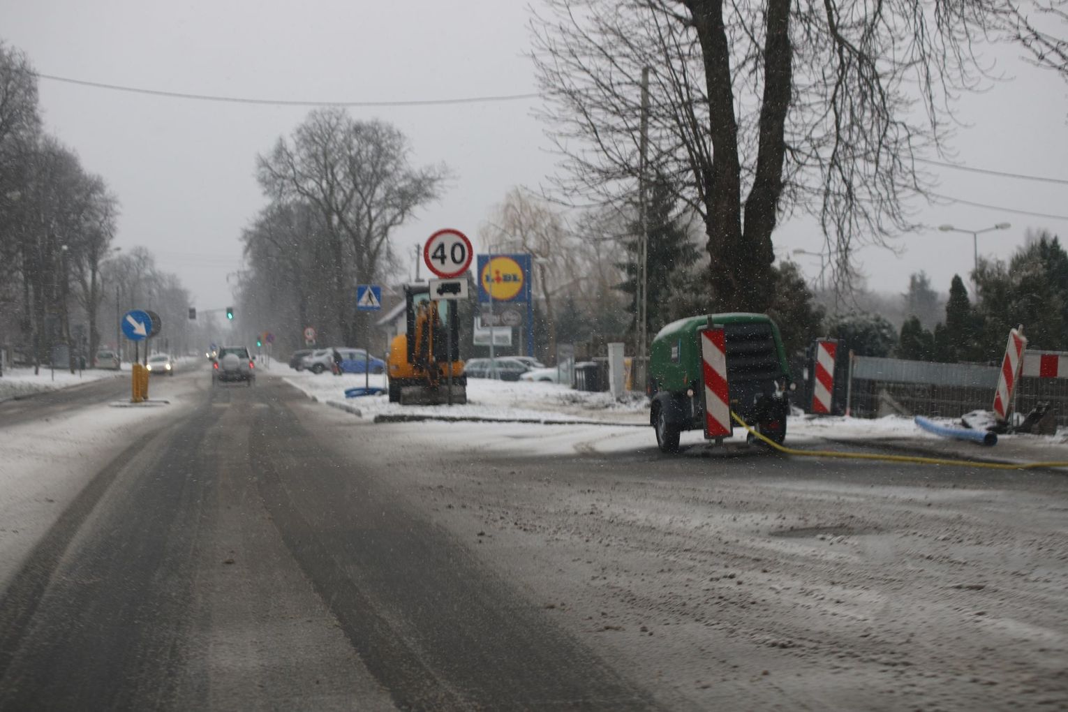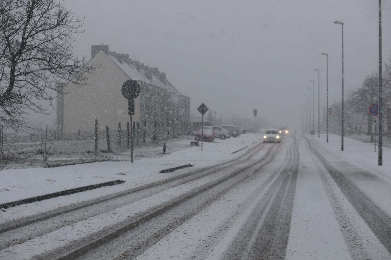 Znaki poziome i pionowe na ulicach przysypane są śniegiem. Samochody ślizgają się na drodze, zwłaszcza na zakrętach.
