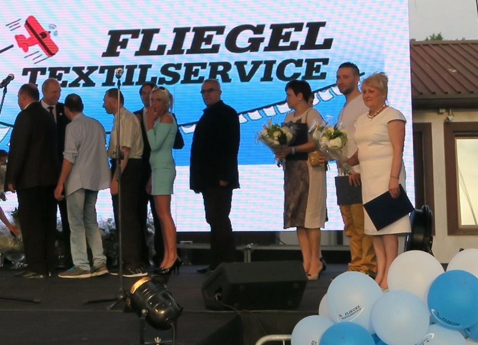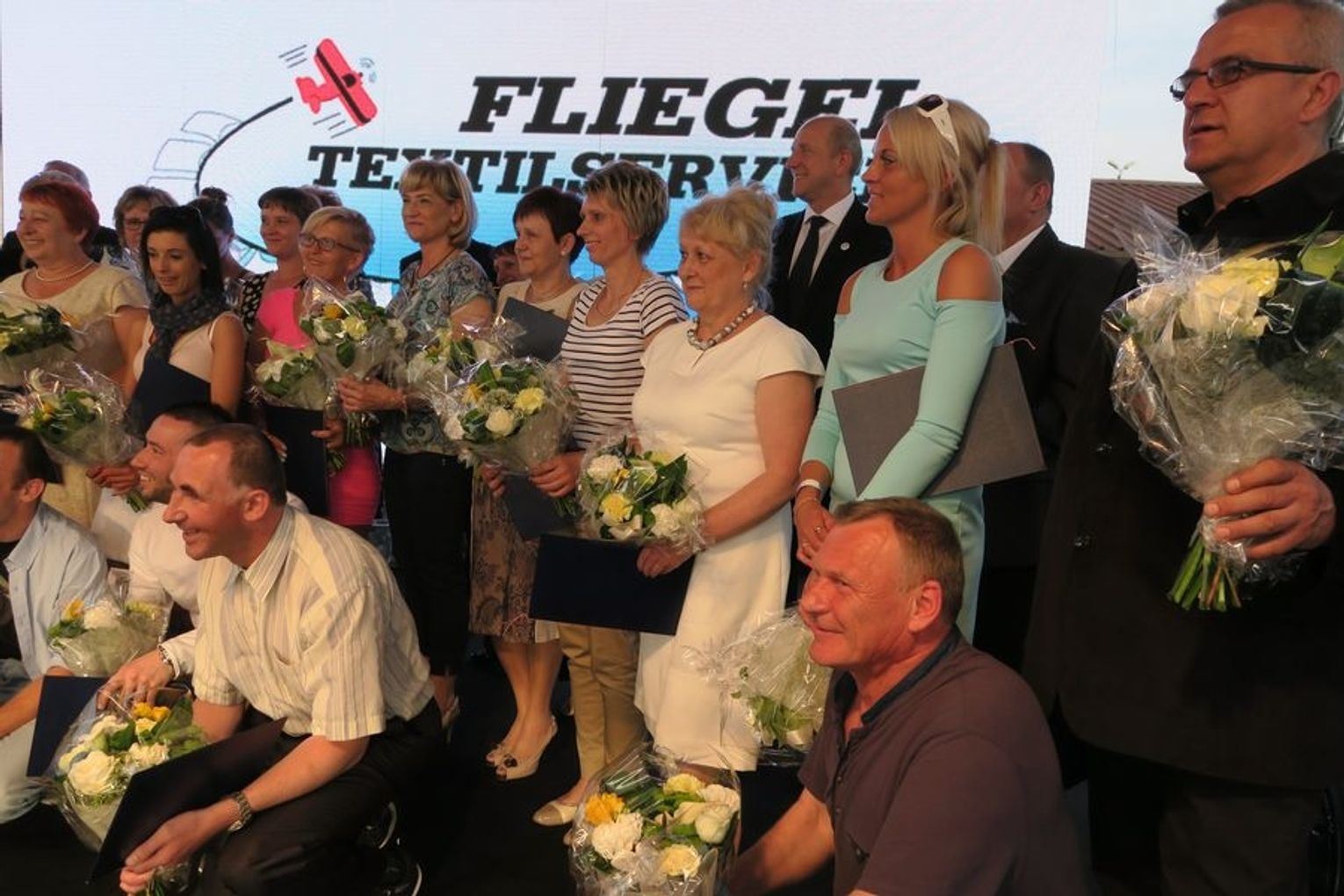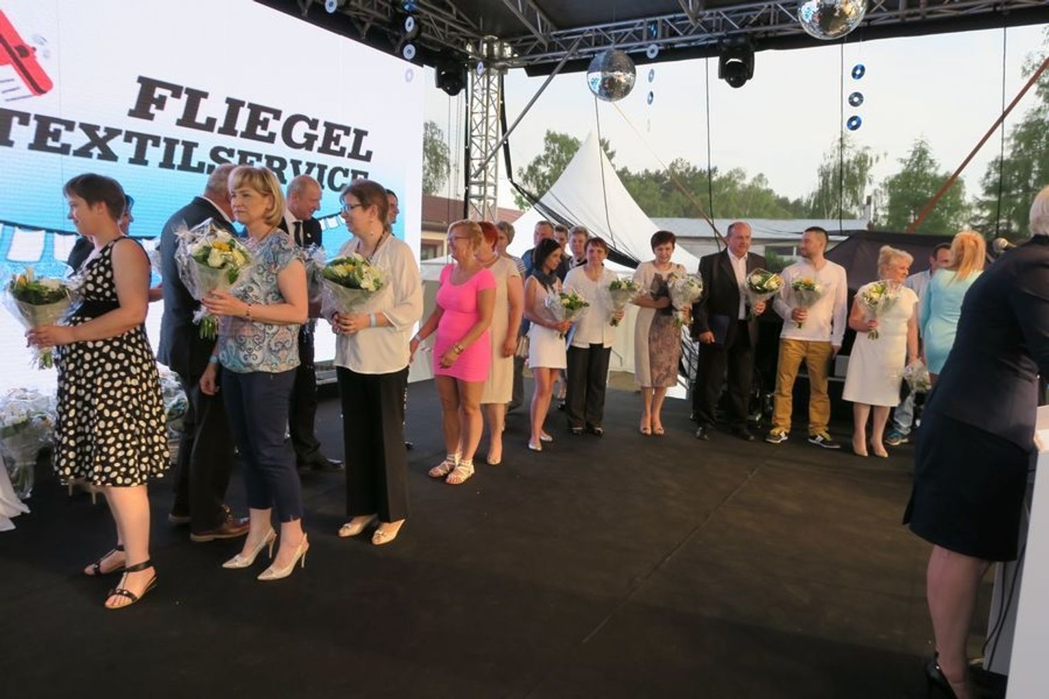Otwarcie nowej hali było okazją do wielkiej fety, jaką firma Fliegel Textilservice przygotowała dla gości i pracowników w Pniewie. Tutaj historię zakładu od 1992 roku przypomnieli dyrektorzy – Romuald Sikora oraz Daniel Tarczyński. Pracownicy od szefów firmy otrzymali jubileuszowe premie i nagrody.