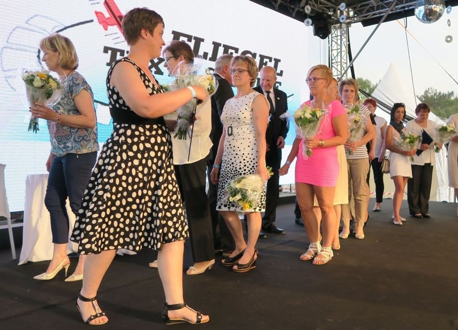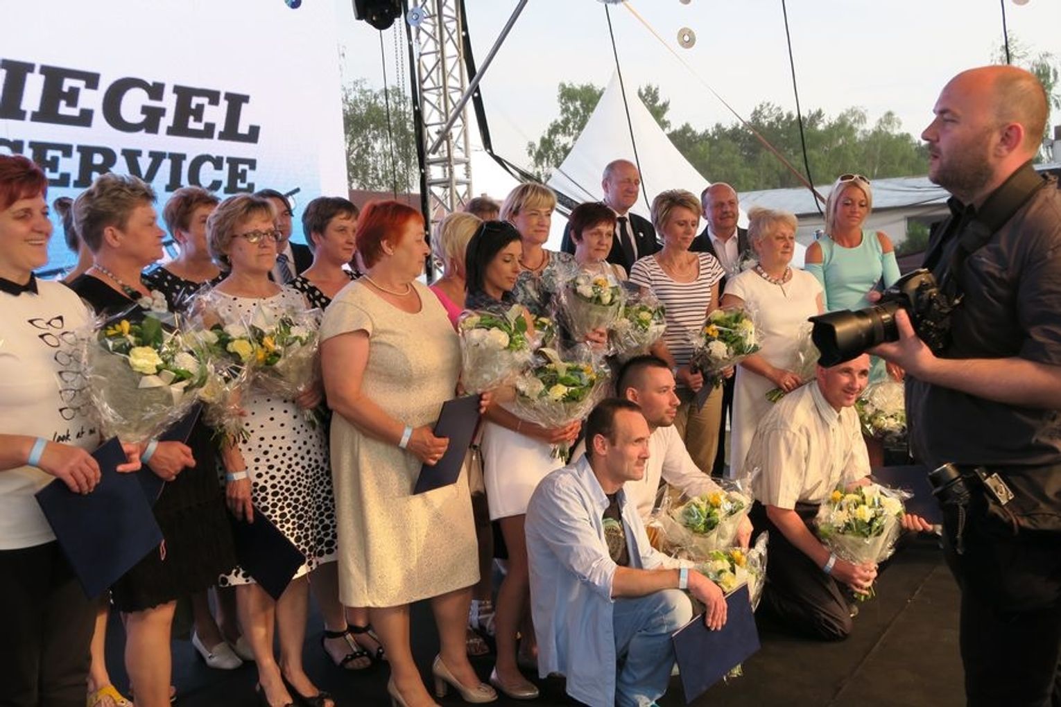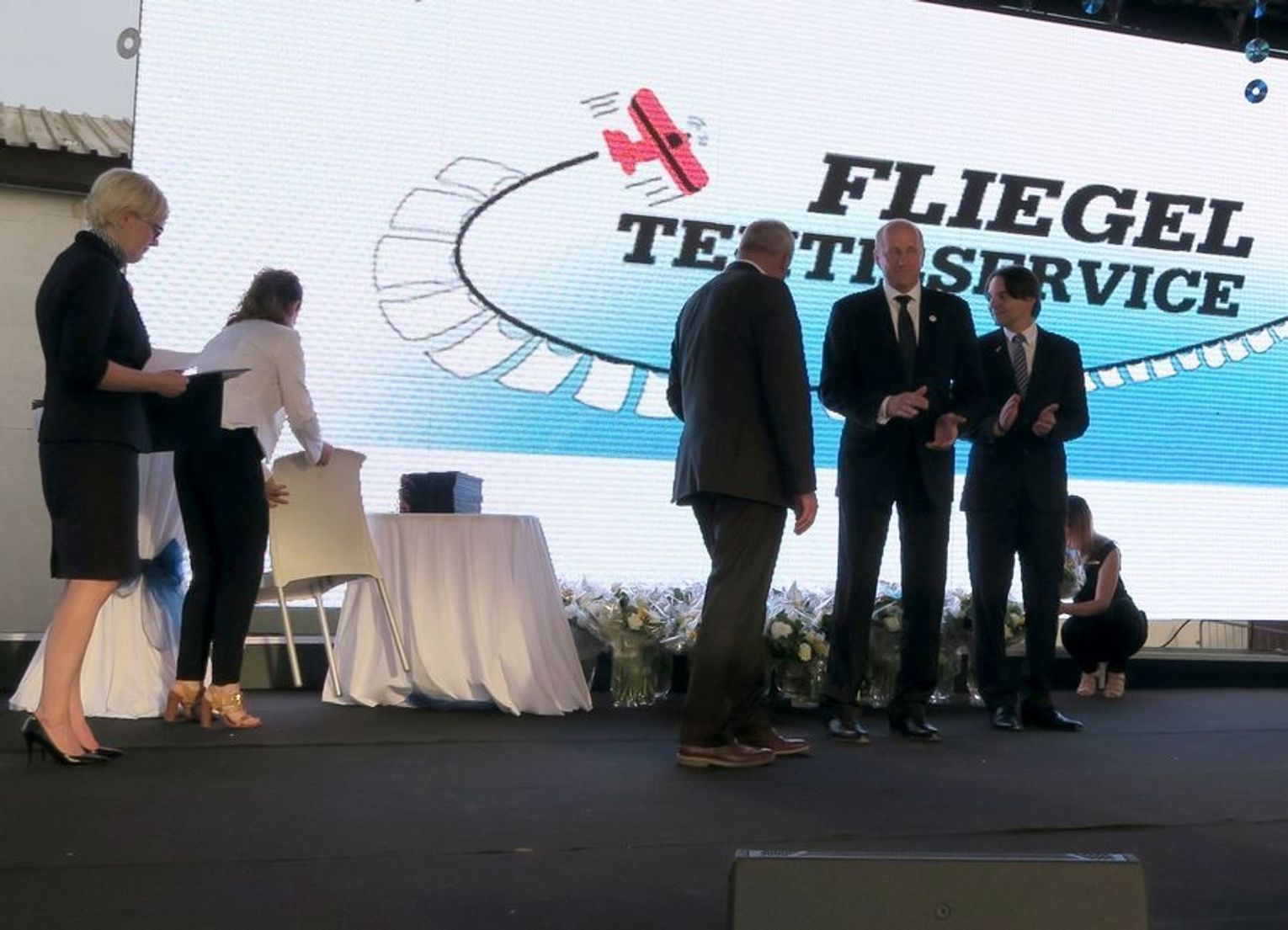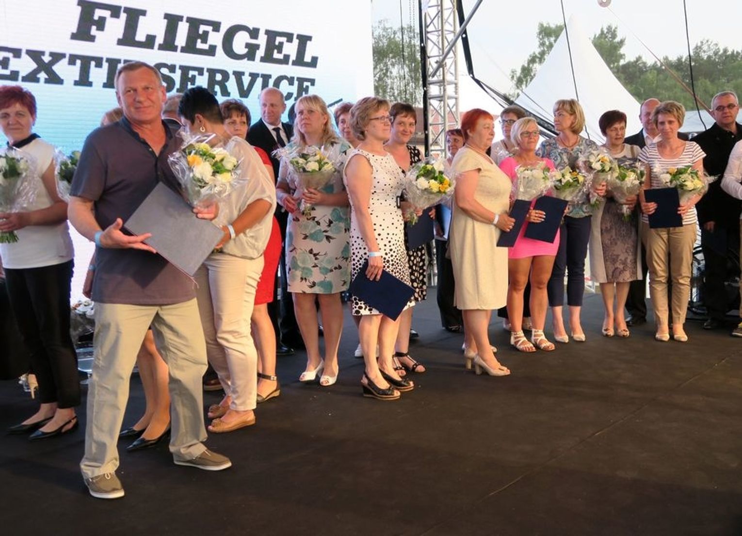 Otwarcie nowej hali było okazją do wielkiej fety, jaką firma Fliegel Textilservice przygotowała dla gości i pracowników w Pniewie. Tutaj historię zakładu od 1992 roku przypomnieli dyrektorzy – Romuald Sikora oraz Daniel Tarczyński. Pracownicy od szefów firmy otrzymali jubileuszowe premie i nagrody.