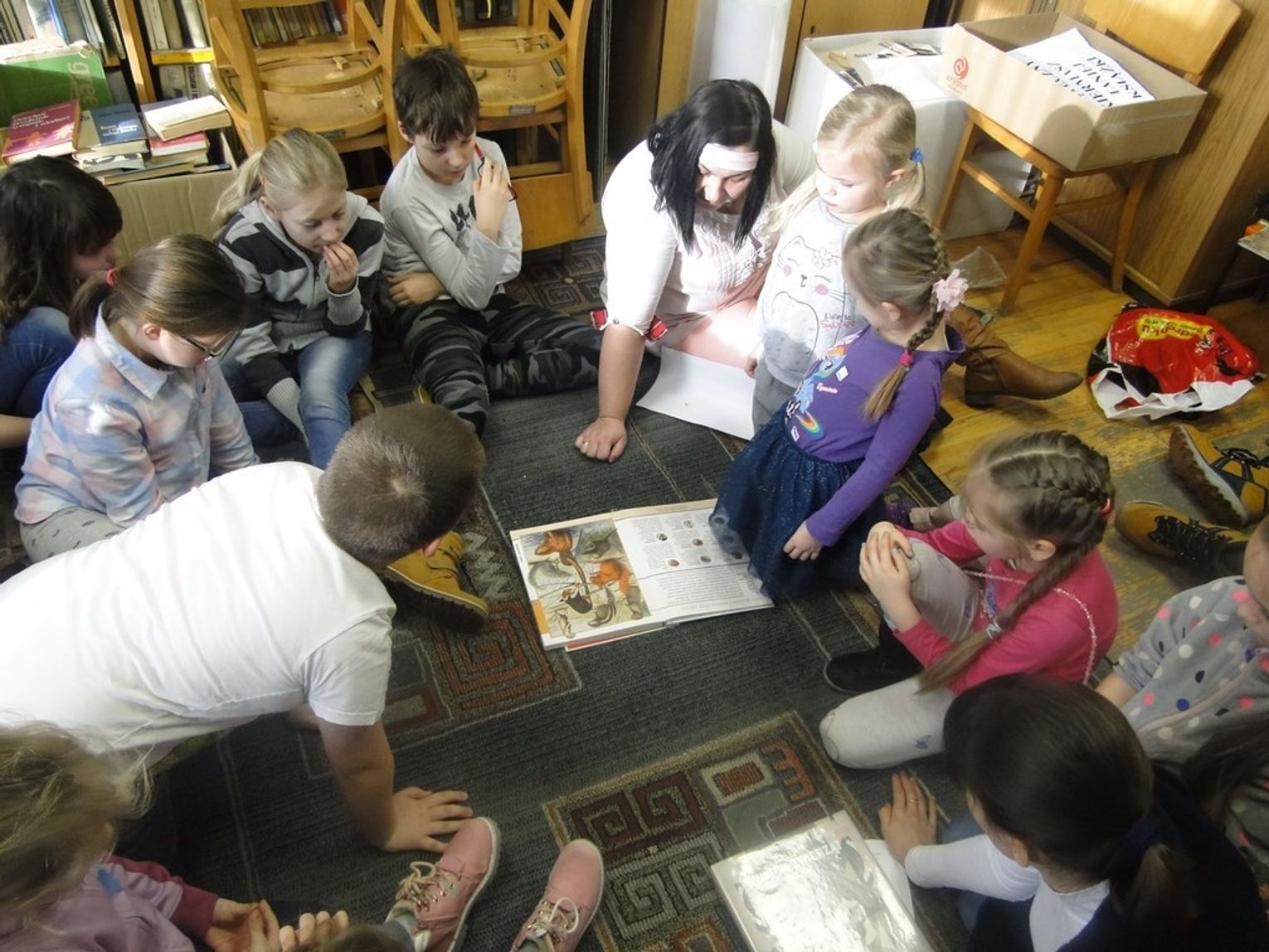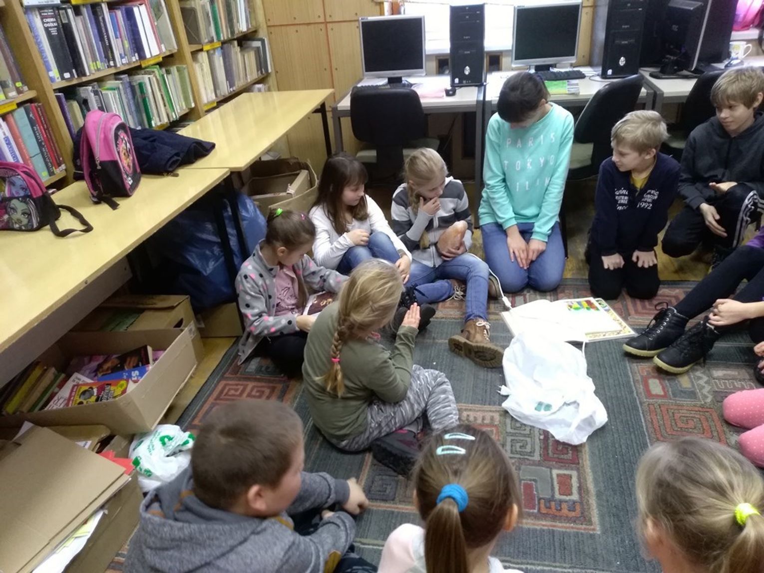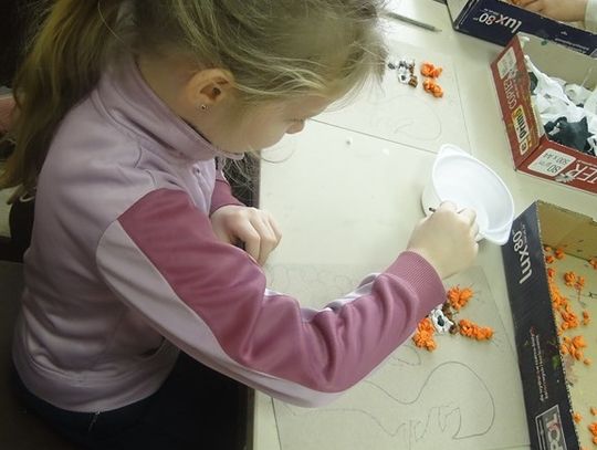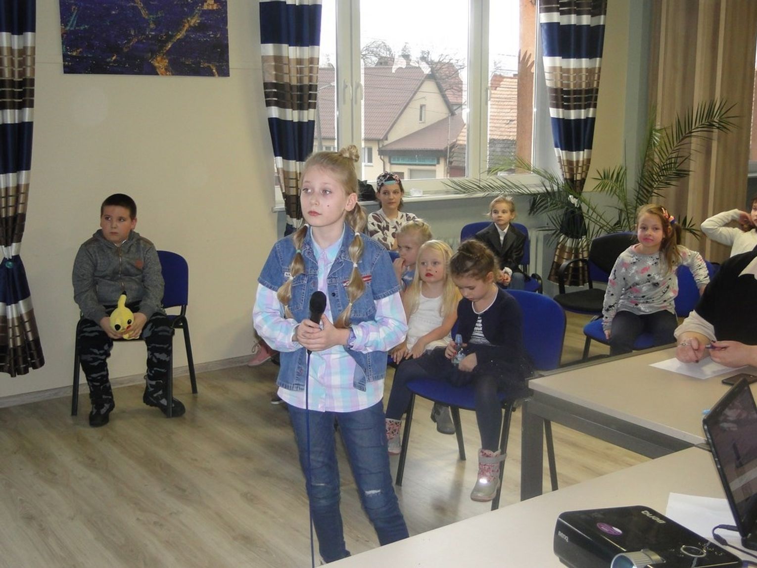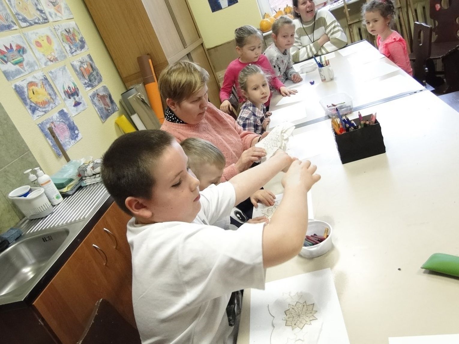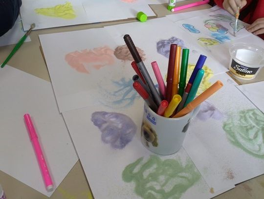 Codzienne literacko – plastyczno – muzyczne spotkania rozpoczynały się w bibliotece, gdzie dzieci zapoznawały się z tematem dnia, m.in.: „Wędrówki, podróże, wycieczki z zimowym misiem”, „Zatrzymujemy zimę na kamykach” - tajemnice prehistorii, „Czarujemy zimowy pejzaż” - spotkanie integracyjne z mieszkańcami Domu Pomocy Społecznej w Moryniu, „Igliczki-śnieżyczki” - rozpoznawanie różnych gatunków drzew iglastych, „Dzielimy się szczęściem” - tematem zajęć był dziadek i babcia, „Zima solą malowana” - legenda o Wieliczce, „Spotkanie z rudą wiewiórką” - portret wiewiórki z szyszką, „Bąbelkowe czary-mary” - wykonanie pracy plastycznej przy pomocy folii bąbelkowej czy wreszcie „Jaskinia lodowa” - spotkanie z p. Urszulą Kaczmarek – pasjonatką skamielin, kamieni i skał oraz zaprojektowanie własnej jaskini przy wykorzystaniu różnych technik.