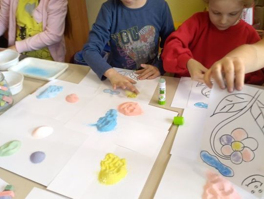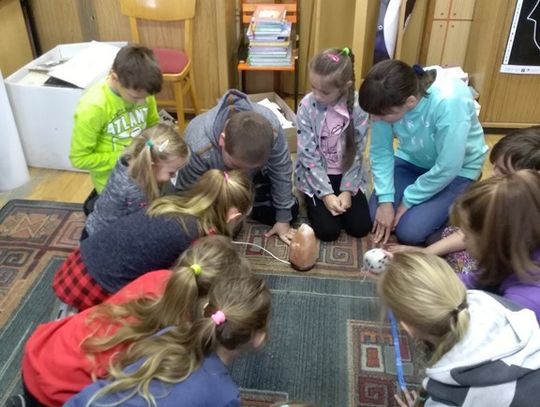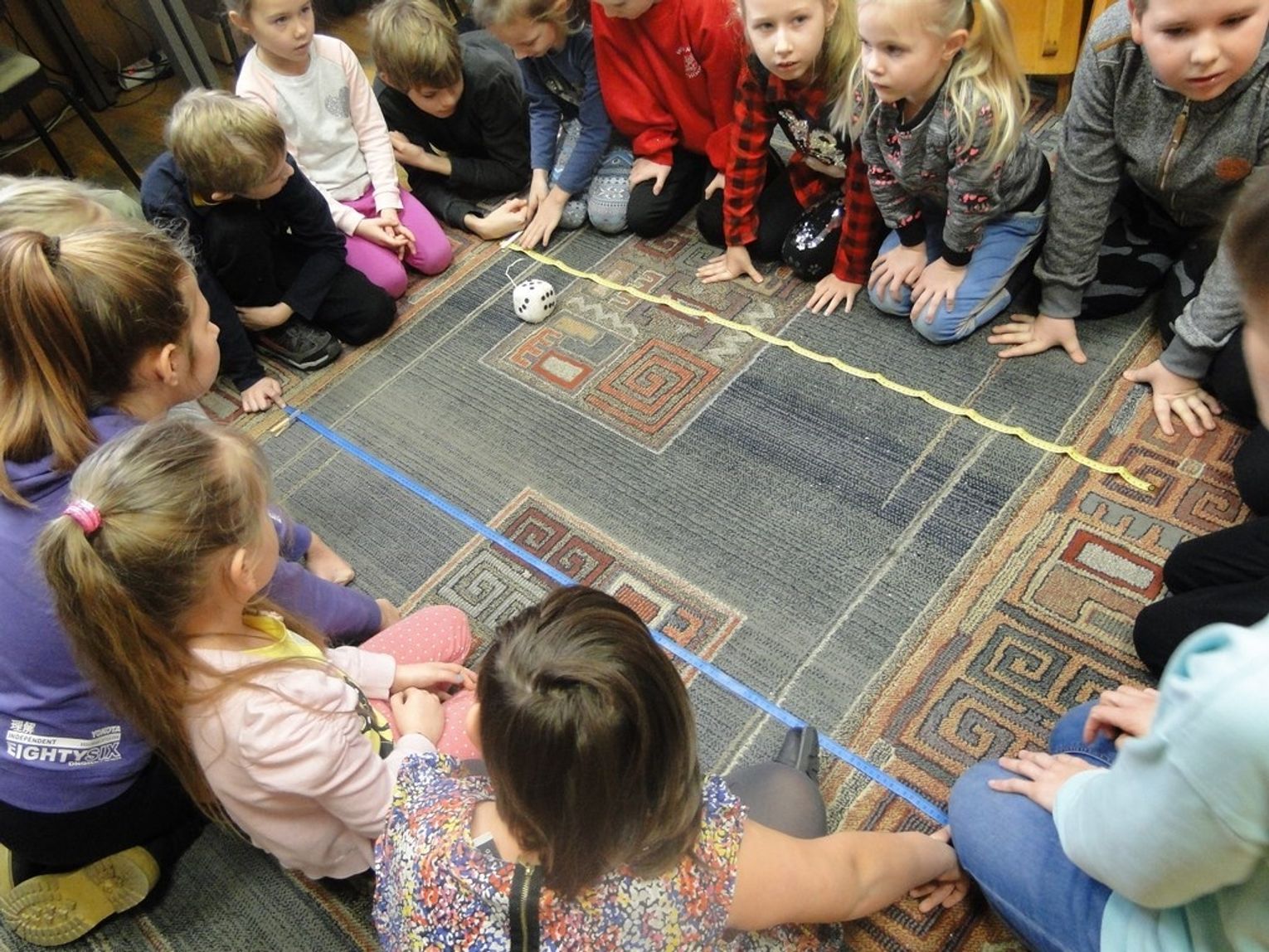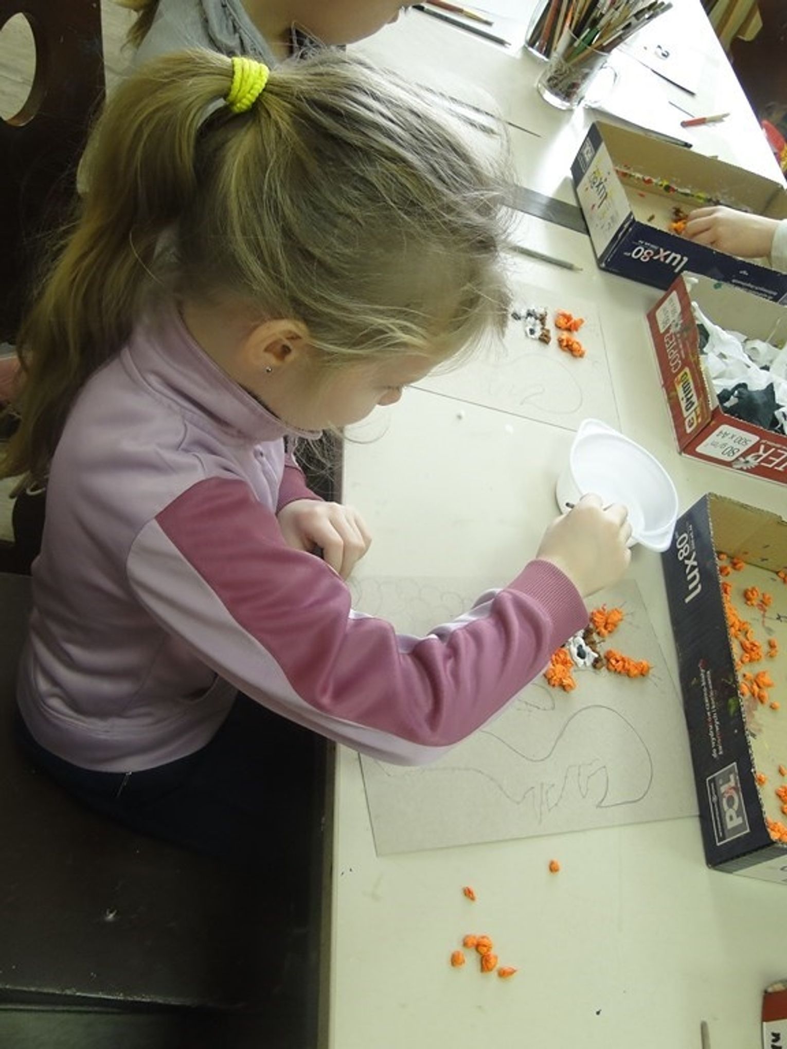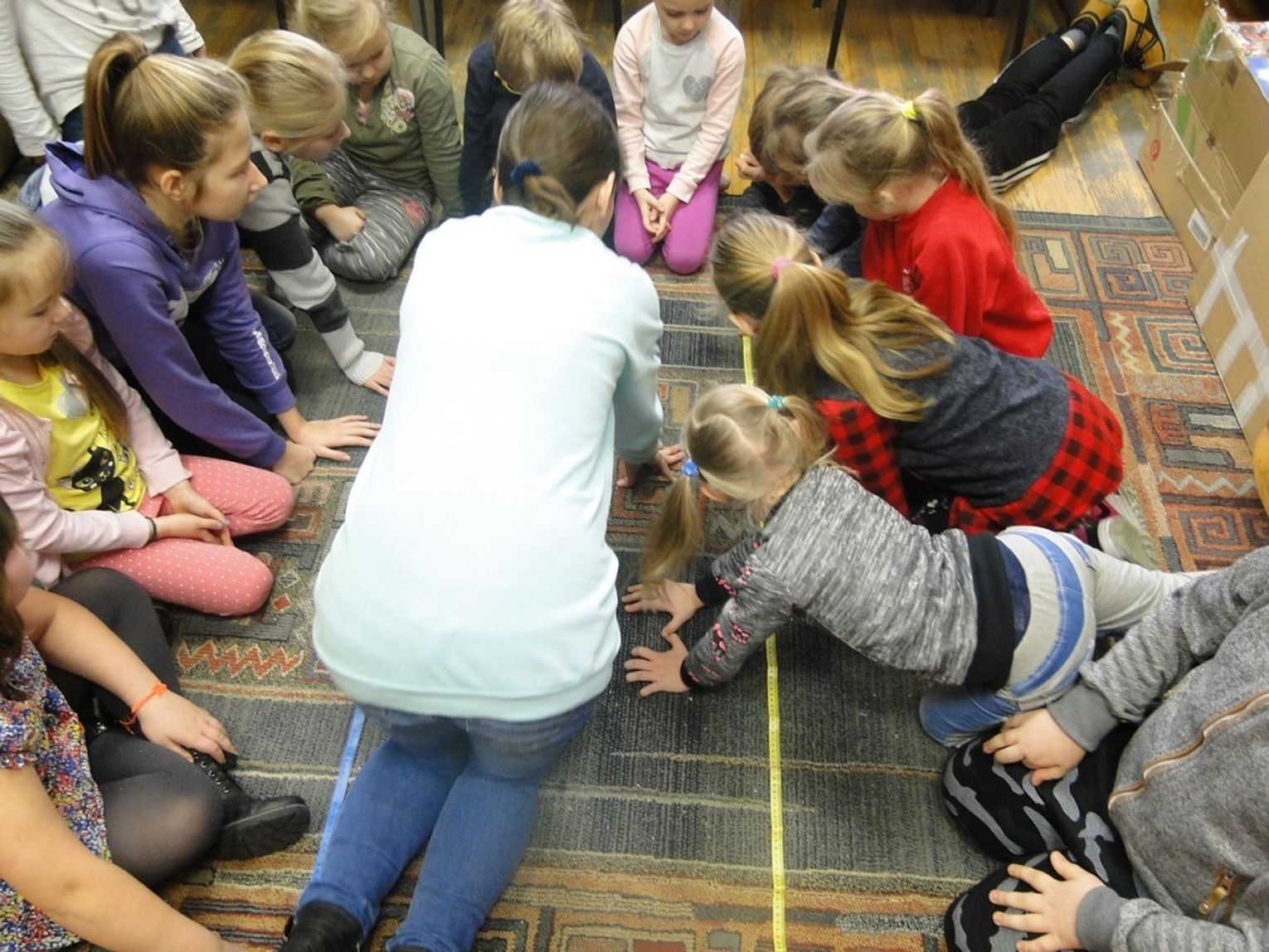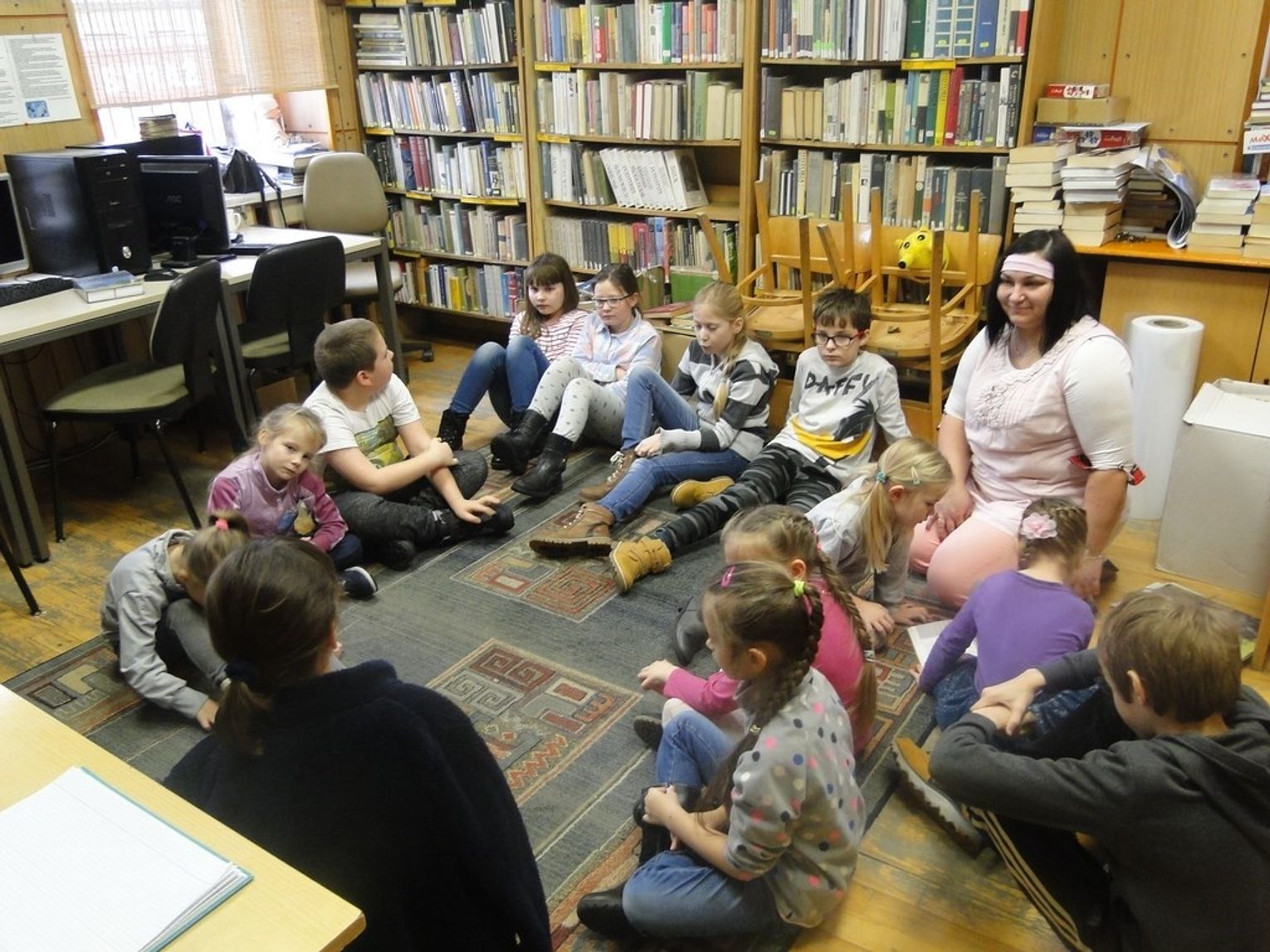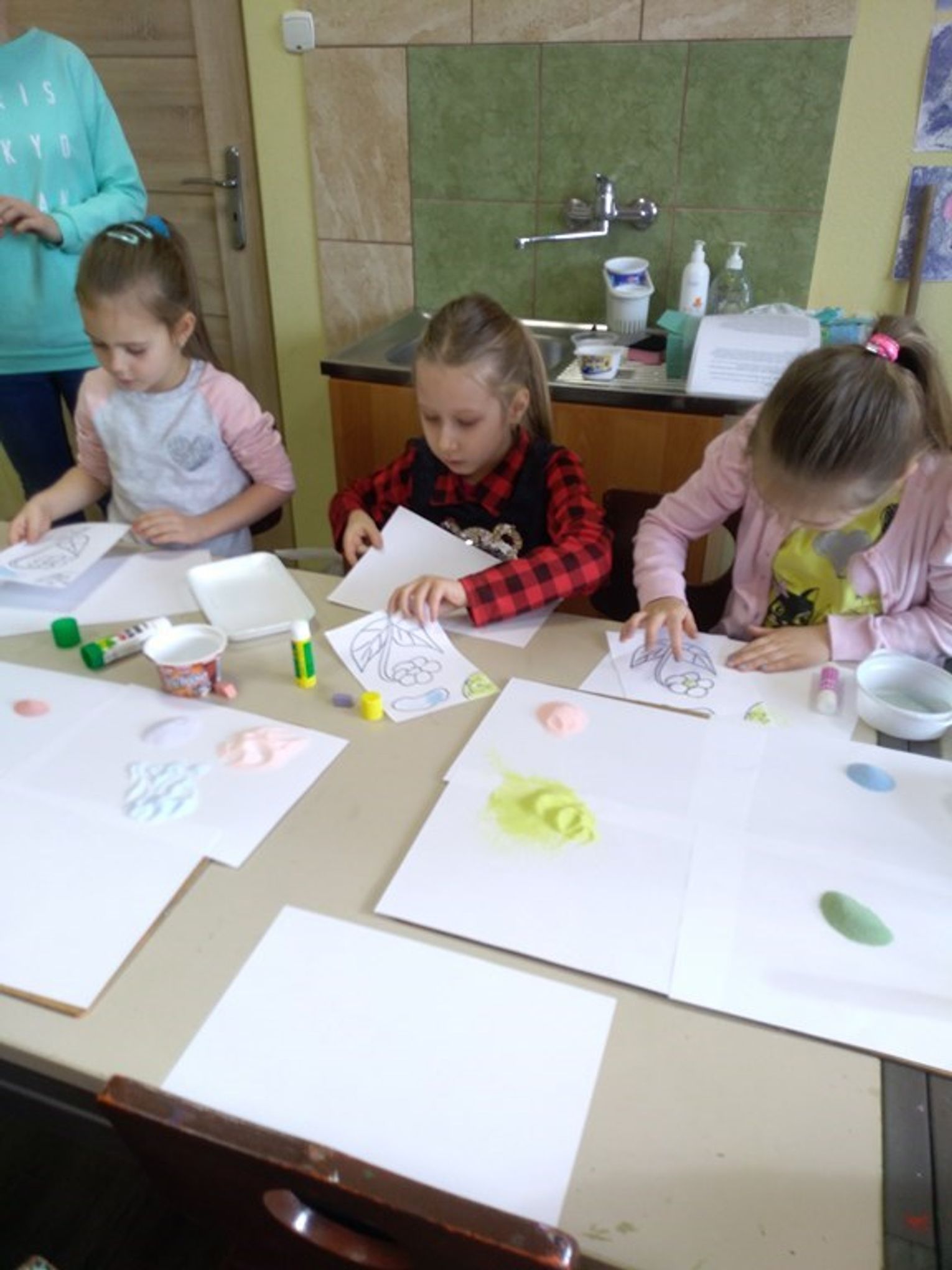 Codzienne literacko – plastyczno – muzyczne spotkania rozpoczynały się w bibliotece, gdzie dzieci zapoznawały się z tematem dnia, m.in.: „Wędrówki, podróże, wycieczki z zimowym misiem”, „Zatrzymujemy zimę na kamykach” - tajemnice prehistorii, „Czarujemy zimowy pejzaż” - spotkanie integracyjne z mieszkańcami Domu Pomocy Społecznej w Moryniu, „Igliczki-śnieżyczki” - rozpoznawanie różnych gatunków drzew iglastych, „Dzielimy się szczęściem” - tematem zajęć był dziadek i babcia, „Zima solą malowana” - legenda o Wieliczce, „Spotkanie z rudą wiewiórką” - portret wiewiórki z szyszką, „Bąbelkowe czary-mary” - wykonanie pracy plastycznej przy pomocy folii bąbelkowej czy wreszcie „Jaskinia lodowa” - spotkanie z p. Urszulą Kaczmarek – pasjonatką skamielin, kamieni i skał oraz zaprojektowanie własnej jaskini przy wykorzystaniu różnych technik.