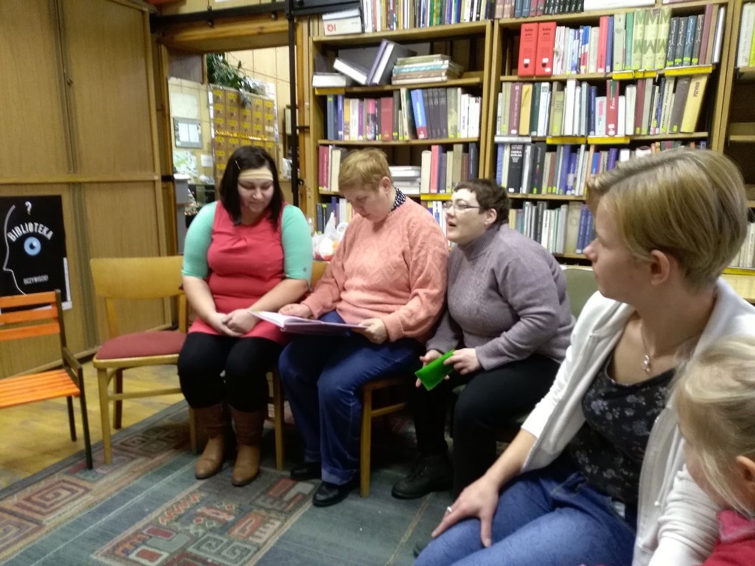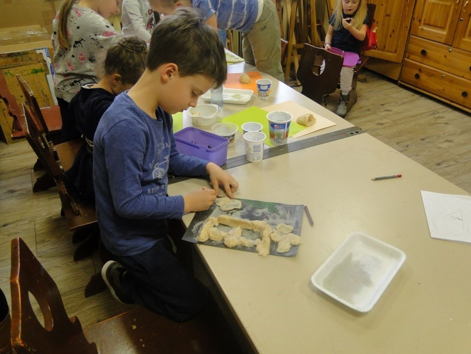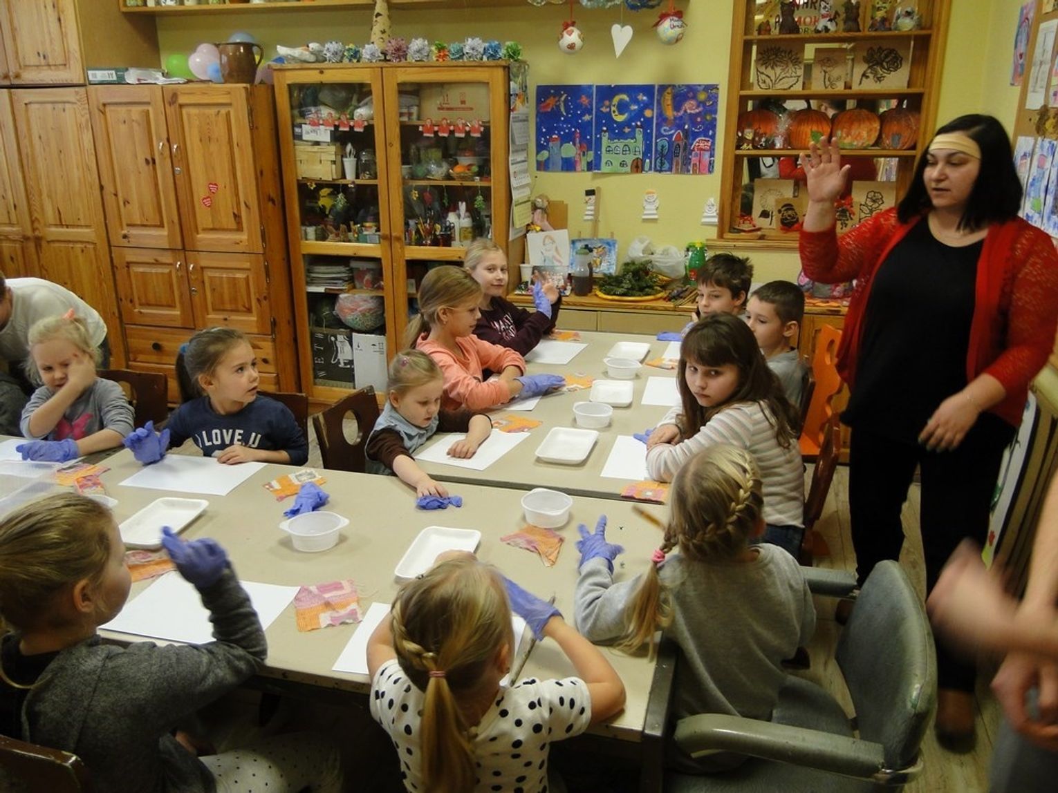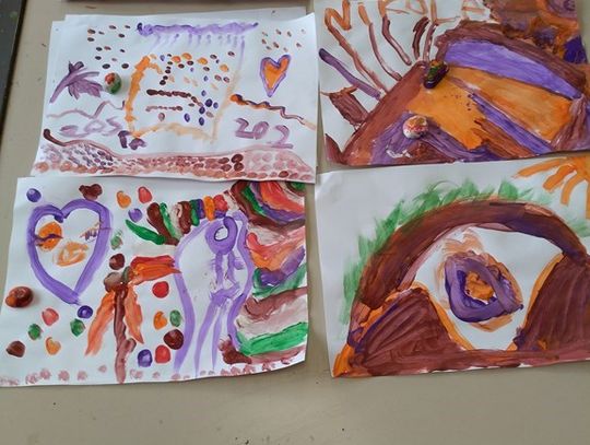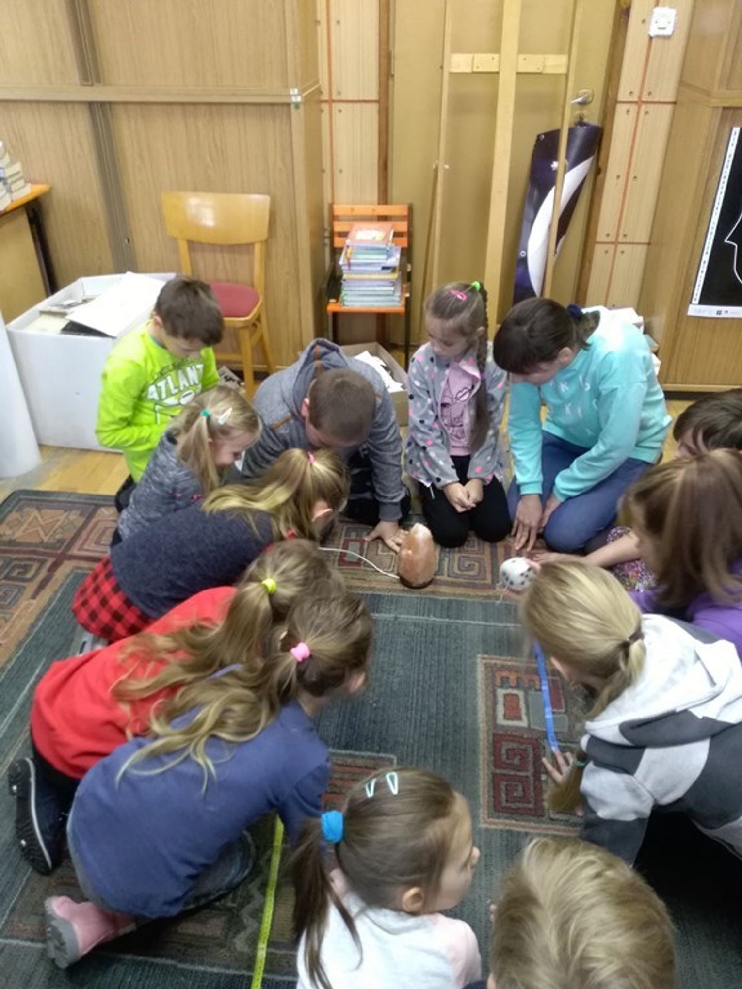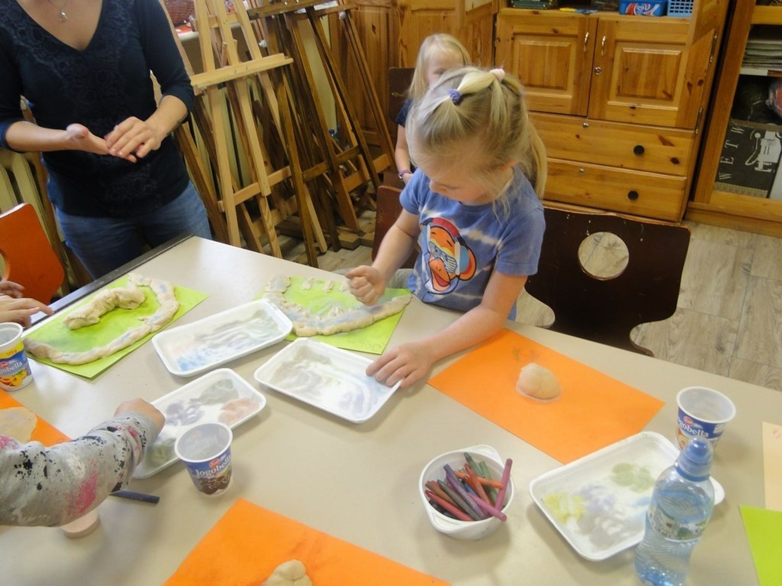 Codzienne literacko – plastyczno – muzyczne spotkania rozpoczynały się w bibliotece, gdzie dzieci zapoznawały się z tematem dnia, m.in.: „Wędrówki, podróże, wycieczki z zimowym misiem”, „Zatrzymujemy zimę na kamykach” - tajemnice prehistorii, „Czarujemy zimowy pejzaż” - spotkanie integracyjne z mieszkańcami Domu Pomocy Społecznej w Moryniu, „Igliczki-śnieżyczki” - rozpoznawanie różnych gatunków drzew iglastych, „Dzielimy się szczęściem” - tematem zajęć był dziadek i babcia, „Zima solą malowana” - legenda o Wieliczce, „Spotkanie z rudą wiewiórką” - portret wiewiórki z szyszką, „Bąbelkowe czary-mary” - wykonanie pracy plastycznej przy pomocy folii bąbelkowej czy wreszcie „Jaskinia lodowa” - spotkanie z p. Urszulą Kaczmarek – pasjonatką skamielin, kamieni i skał oraz zaprojektowanie własnej jaskini przy wykorzystaniu różnych technik.
