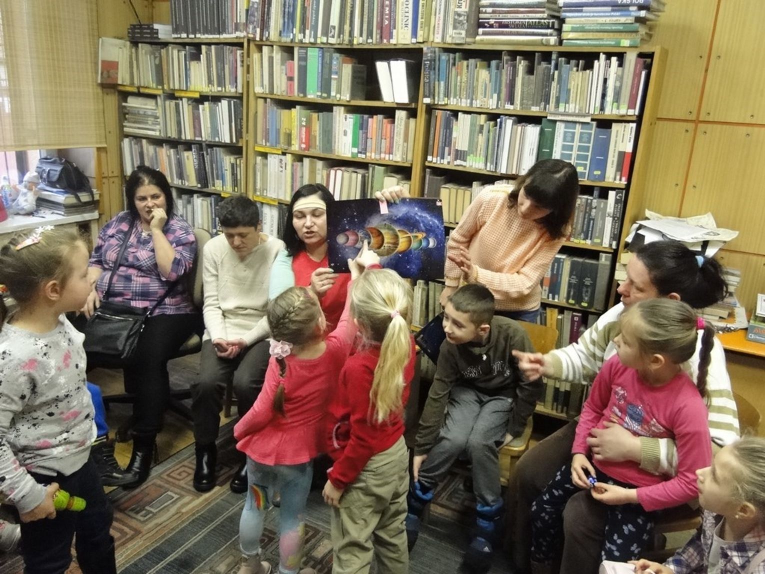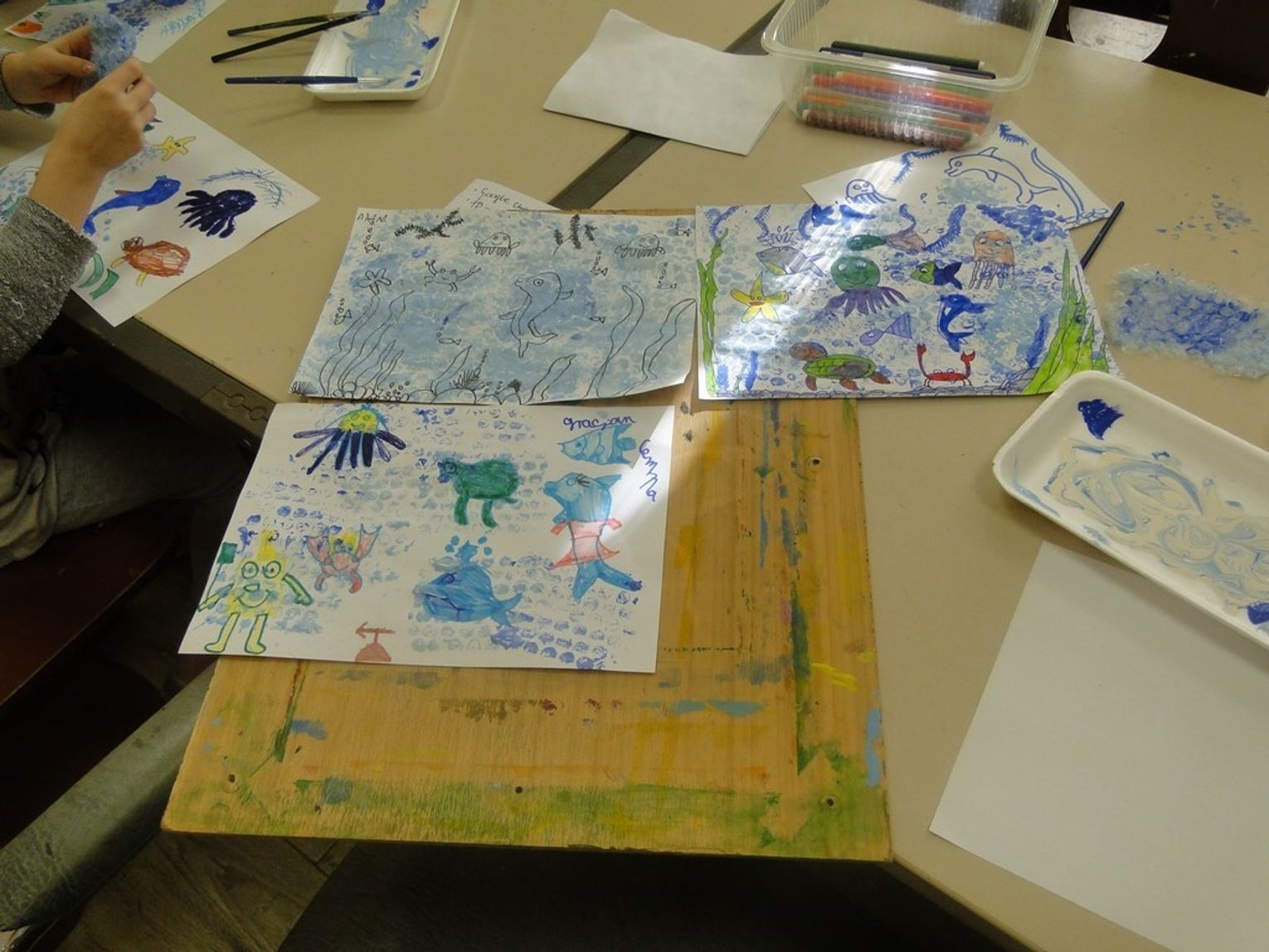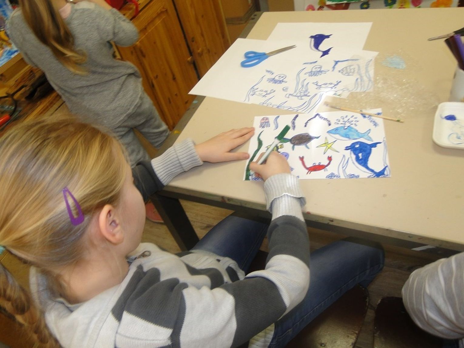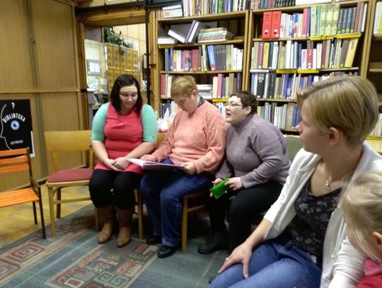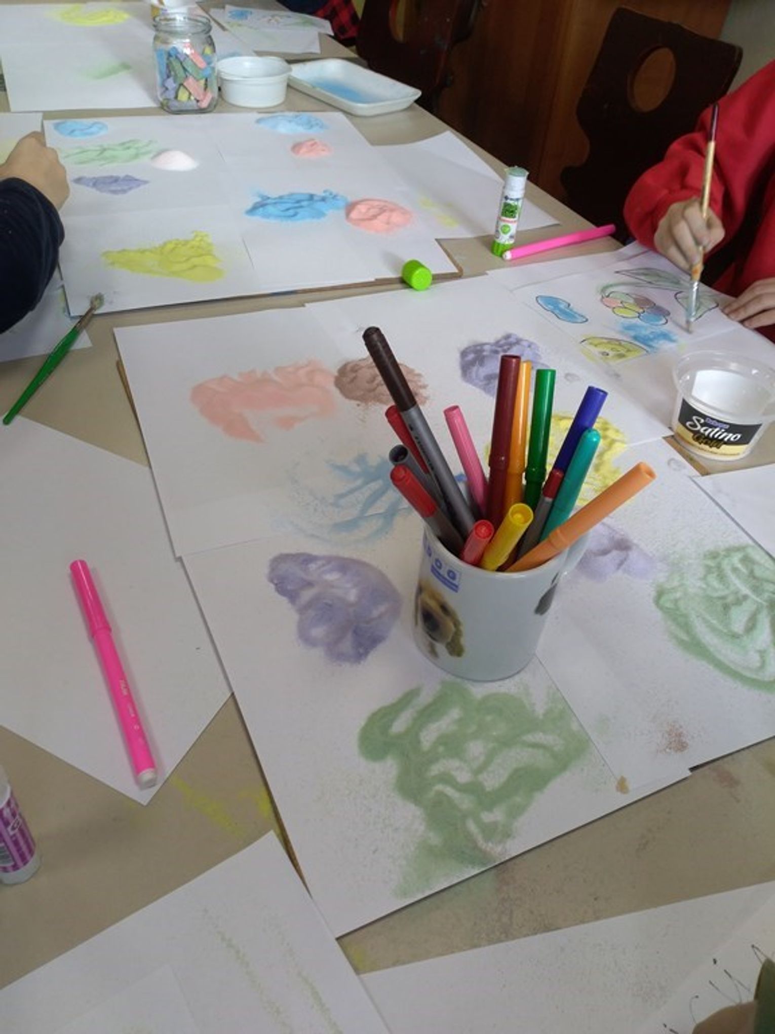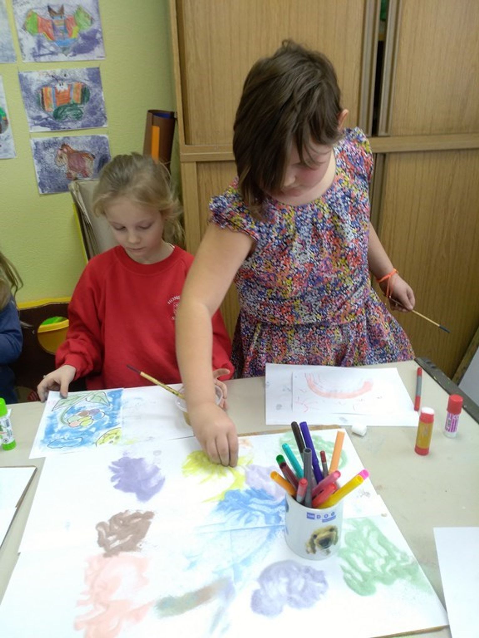 Codzienne literacko – plastyczno – muzyczne spotkania rozpoczynały się w bibliotece, gdzie dzieci zapoznawały się z tematem dnia, m.in.: „Wędrówki, podróże, wycieczki z zimowym misiem”, „Zatrzymujemy zimę na kamykach” - tajemnice prehistorii, „Czarujemy zimowy pejzaż” - spotkanie integracyjne z mieszkańcami Domu Pomocy Społecznej w Moryniu, „Igliczki-śnieżyczki” - rozpoznawanie różnych gatunków drzew iglastych, „Dzielimy się szczęściem” - tematem zajęć był dziadek i babcia, „Zima solą malowana” - legenda o Wieliczce, „Spotkanie z rudą wiewiórką” - portret wiewiórki z szyszką, „Bąbelkowe czary-mary” - wykonanie pracy plastycznej przy pomocy folii bąbelkowej czy wreszcie „Jaskinia lodowa” - spotkanie z p. Urszulą Kaczmarek – pasjonatką skamielin, kamieni i skał oraz zaprojektowanie własnej jaskini przy wykorzystaniu różnych technik.
