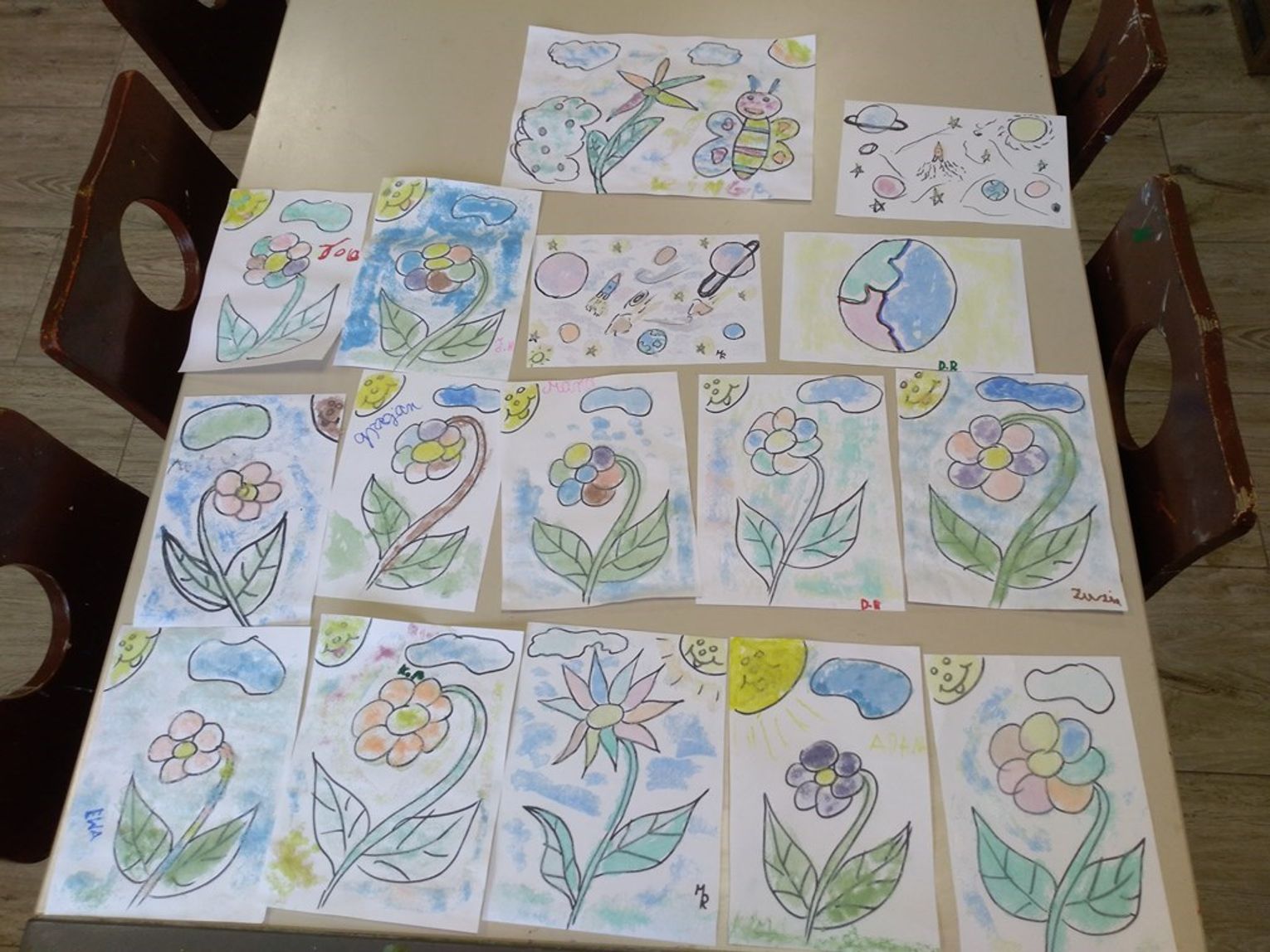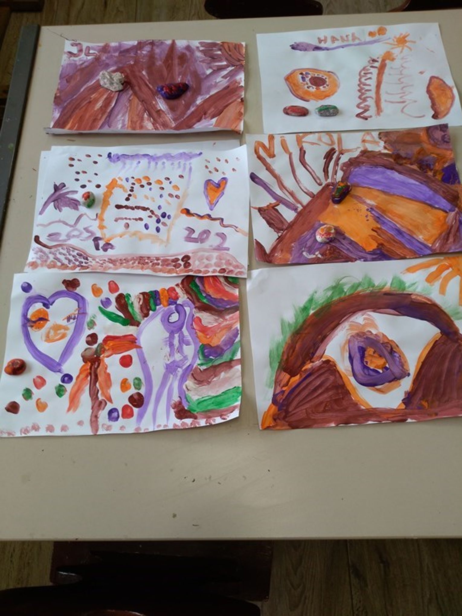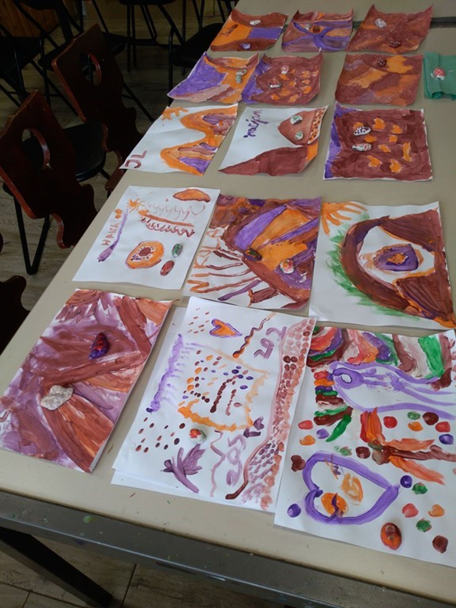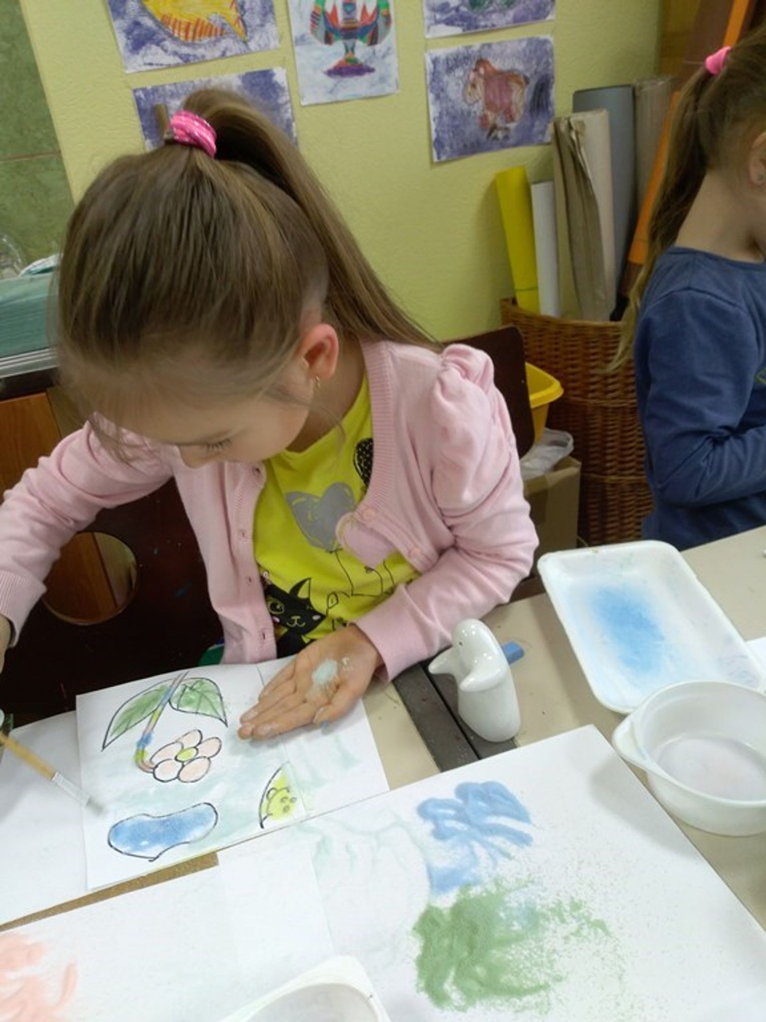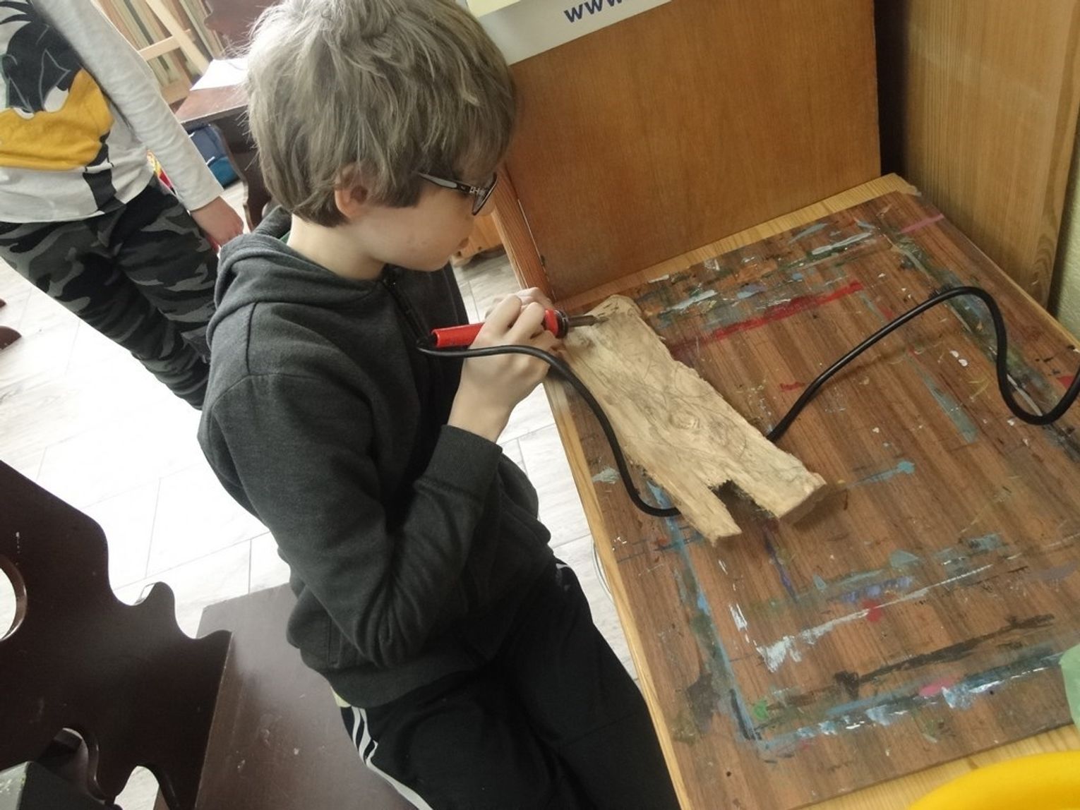 Codzienne literacko – plastyczno – muzyczne spotkania rozpoczynały się w bibliotece, gdzie dzieci zapoznawały się z tematem dnia, m.in.: „Wędrówki, podróże, wycieczki z zimowym misiem”, „Zatrzymujemy zimę na kamykach” - tajemnice prehistorii, „Czarujemy zimowy pejzaż” - spotkanie integracyjne z mieszkańcami Domu Pomocy Społecznej w Moryniu, „Igliczki-śnieżyczki” - rozpoznawanie różnych gatunków drzew iglastych, „Dzielimy się szczęściem” - tematem zajęć był dziadek i babcia, „Zima solą malowana” - legenda o Wieliczce, „Spotkanie z rudą wiewiórką” - portret wiewiórki z szyszką, „Bąbelkowe czary-mary” - wykonanie pracy plastycznej przy pomocy folii bąbelkowej czy wreszcie „Jaskinia lodowa” - spotkanie z p. Urszulą Kaczmarek – pasjonatką skamielin, kamieni i skał oraz zaprojektowanie własnej jaskini przy wykorzystaniu różnych technik.