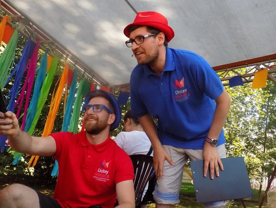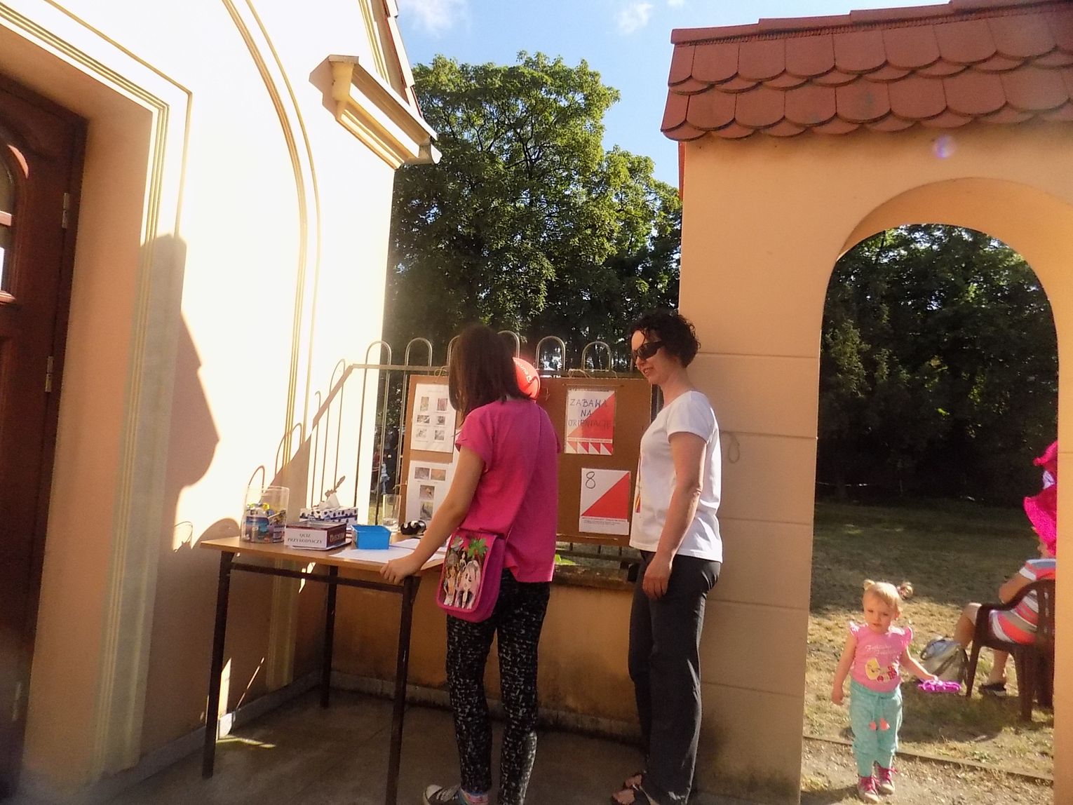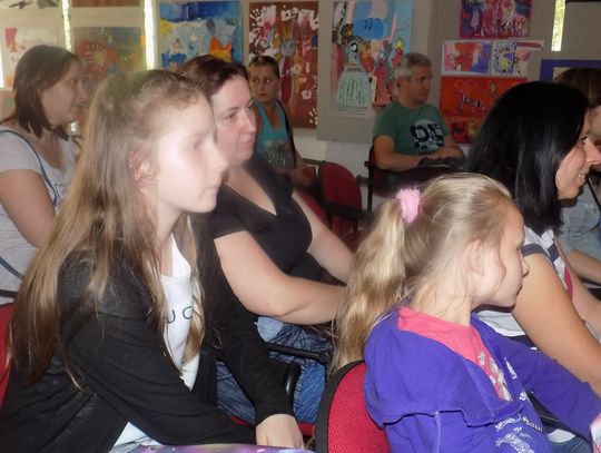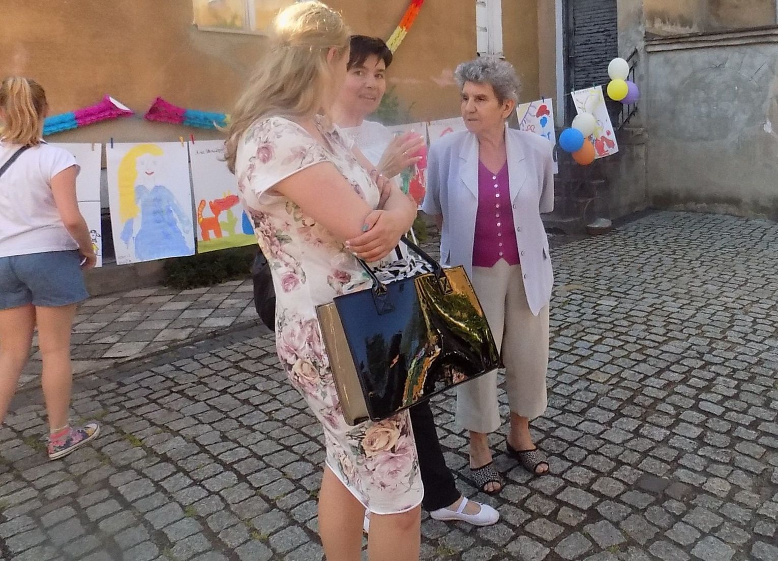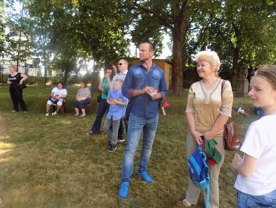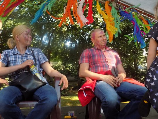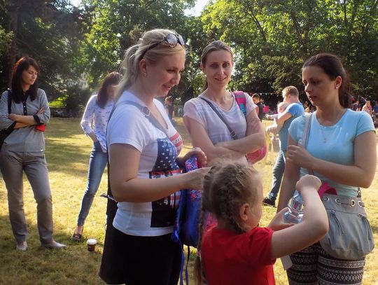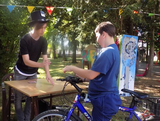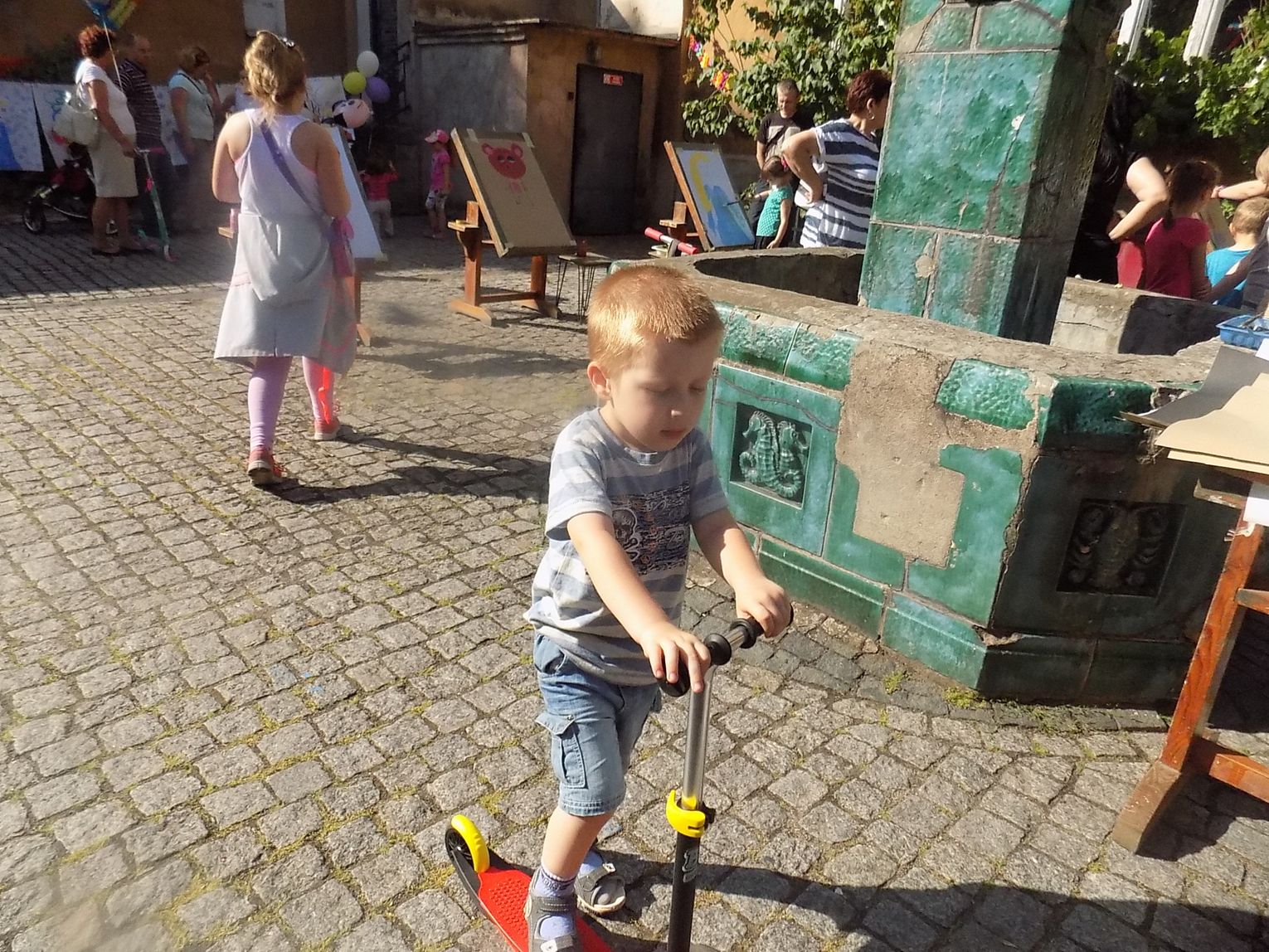 Na dziedzińcu przy fontannie rozstawiono sztalugi aby można było malować farbami. Zainteresowanie bardzo duże i to nie tylko wśród dzieci.