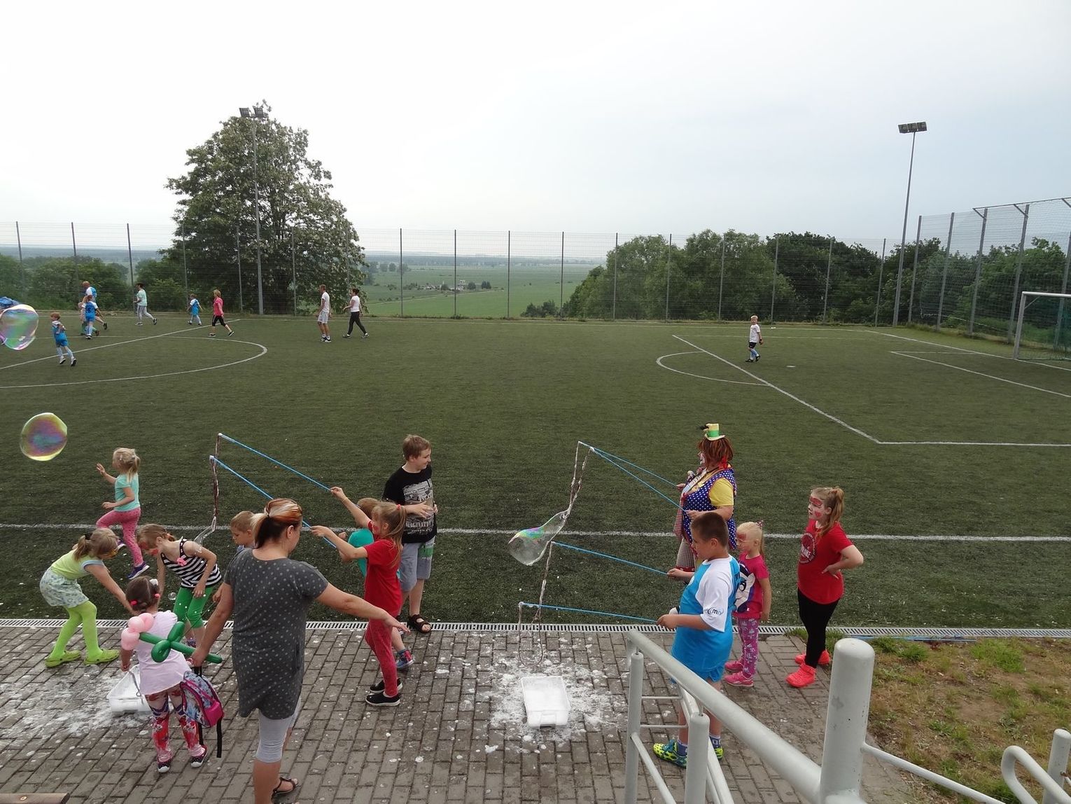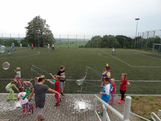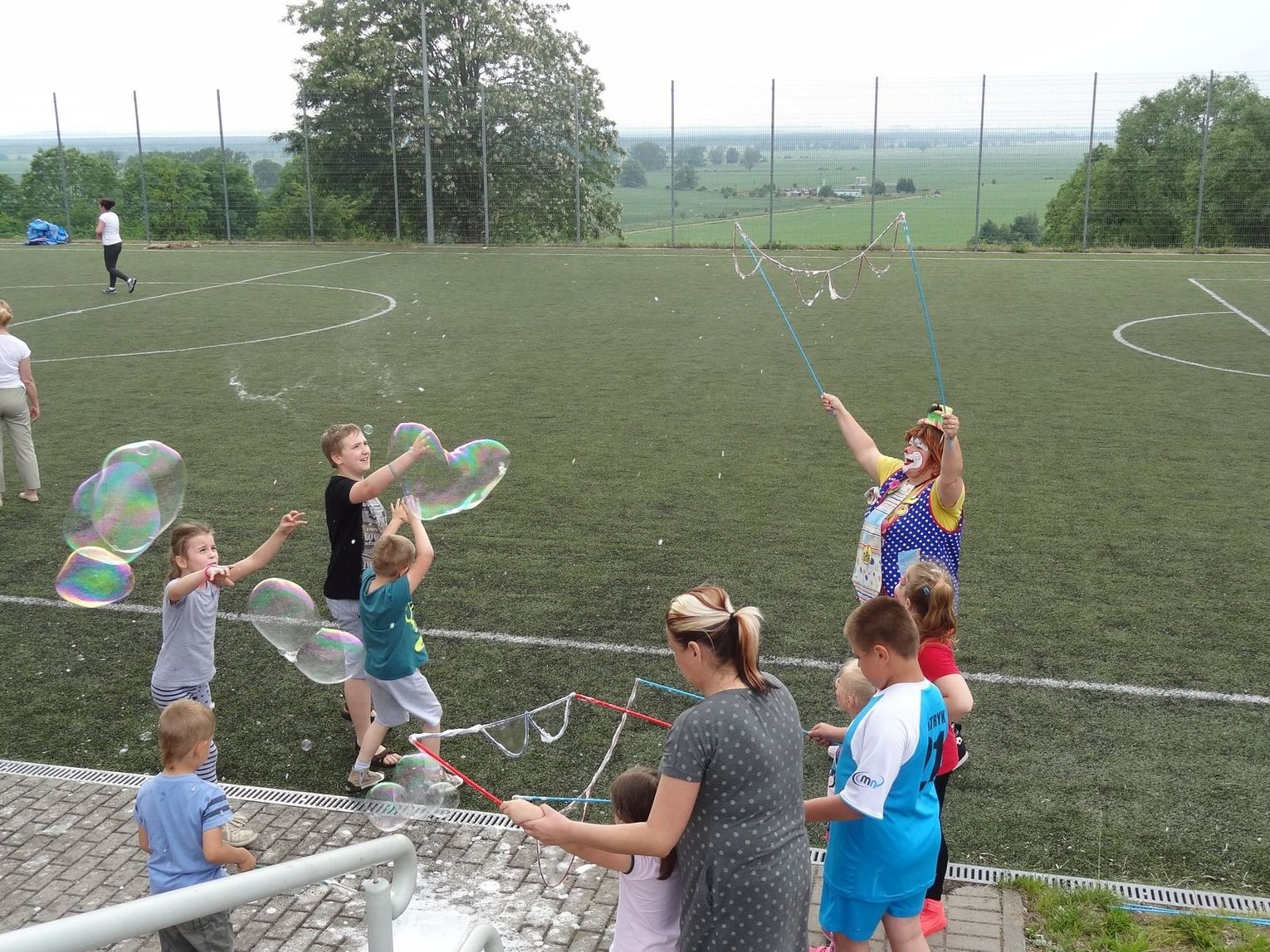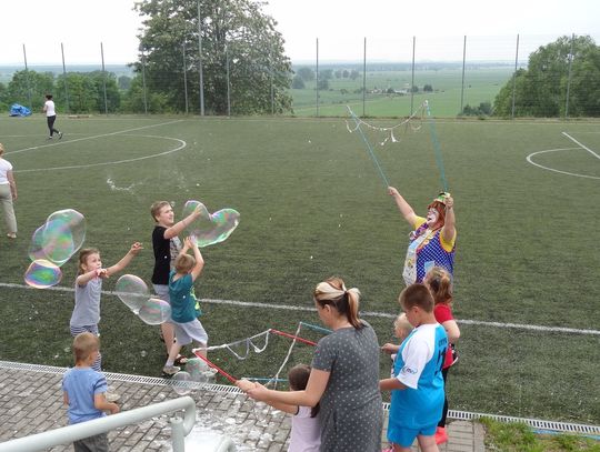 Zapewniono mnóstwo atrakcji m.in. dmuchany zamek, strzelanie do tarczy. Czas umilali klauni Andzia i Dziczek. Andzia puszczała z dziećmi duże i małe bańki mydlane. Natomiast klaun Dziczek kręcił dla najmłodszych balony modelinowe.