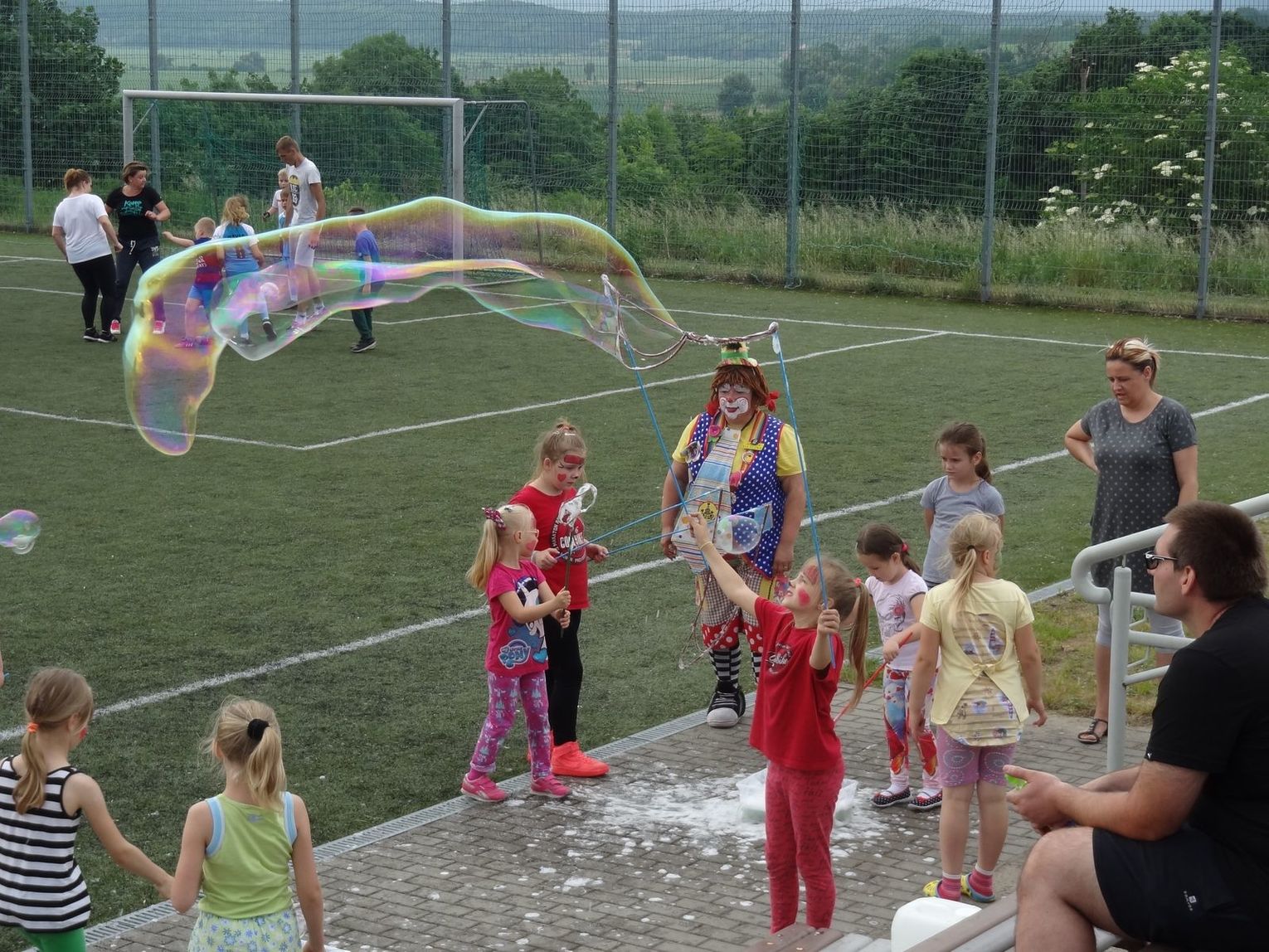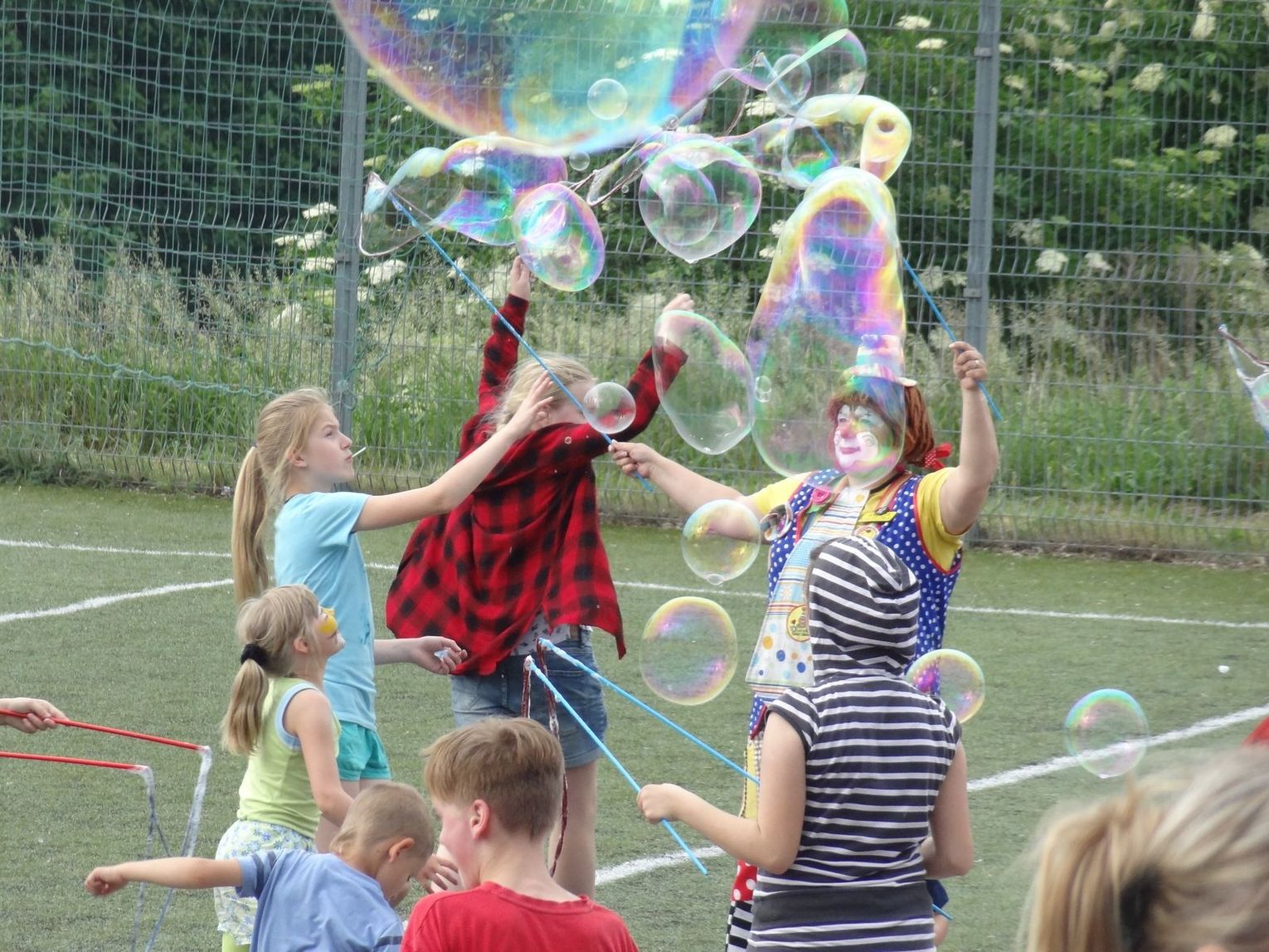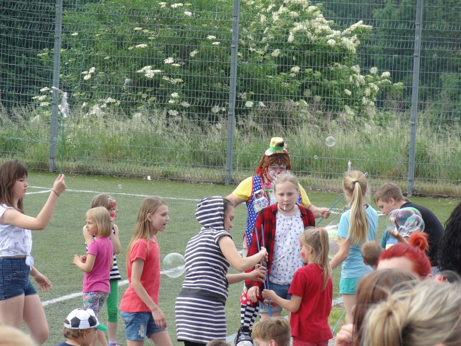 Zapewniono mnóstwo atrakcji m.in. dmuchany zamek, strzelanie do tarczy. Czas umilali klauni Andzia i Dziczek. Andzia puszczała z dziećmi duże i małe bańki mydlane. Natomiast klaun Dziczek kręcił dla najmłodszych balony modelinowe.