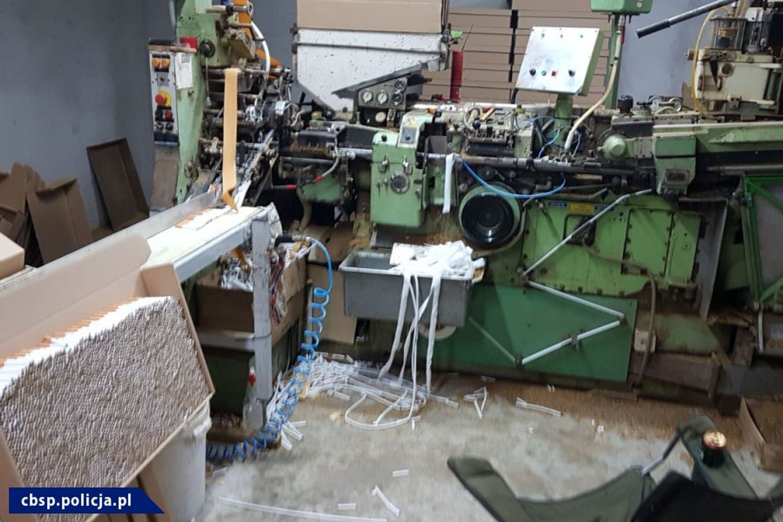 Policjanci zabezpieczyli kompletną i działającą linię technologiczną do produkcji papierosów. Dodatkowo funkcjonariusze przejęli kilkaset tysięcy wyprodukowanych papierosów, ponad 2 tony tytoniu oraz inne wymagane do nielegalnej produkcji komponenty w postaci: bibuły papierosowej, filtrów papierosowych, taśm do produkcji ustnika papierosowego i kleju.