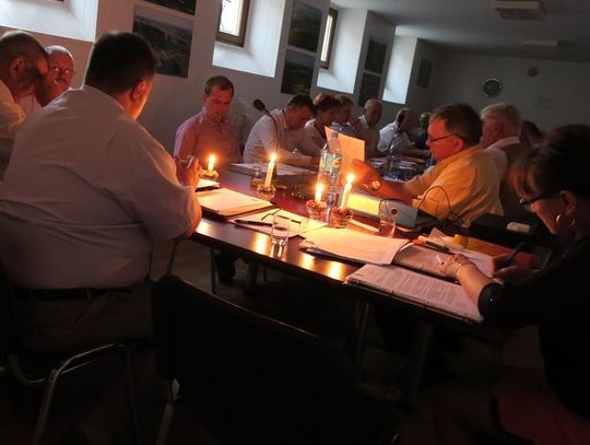 Burza! Nagle zgasło światło. Ciemność! A tu w oknach na dodatek kraty. Okna zamknięte. Duszno. Trudne piwniczne warunki, a ludzi dużo. Grzmoty! Po każdym uderzeniu wielu podskakuje na krześle. Nagle mrok rozjaśniły płomienie świec. Trudno sobie wyobrazić, ale w takich warunkach przebiegała sesja w jednej z najbogatszych gmin w powiecie.