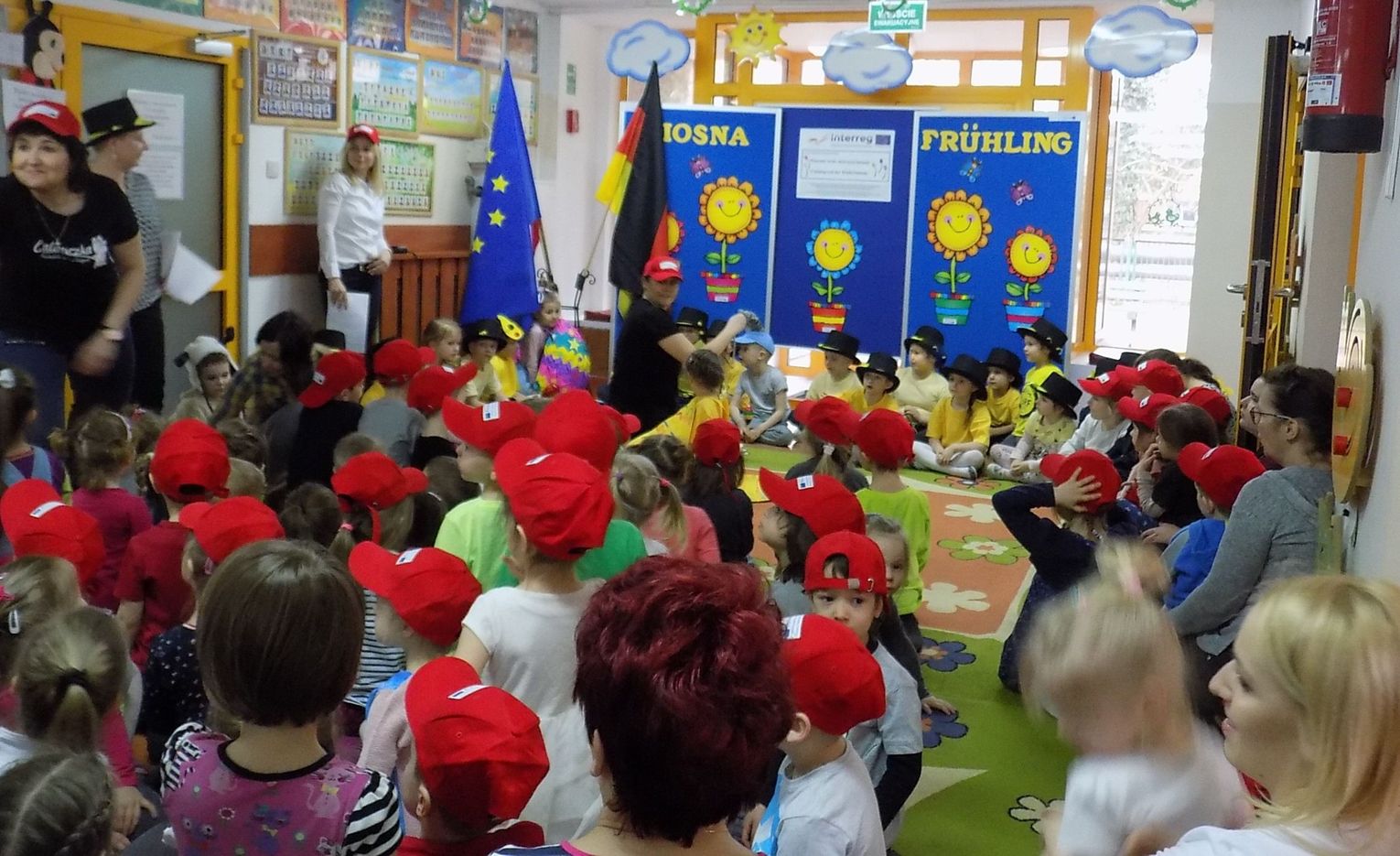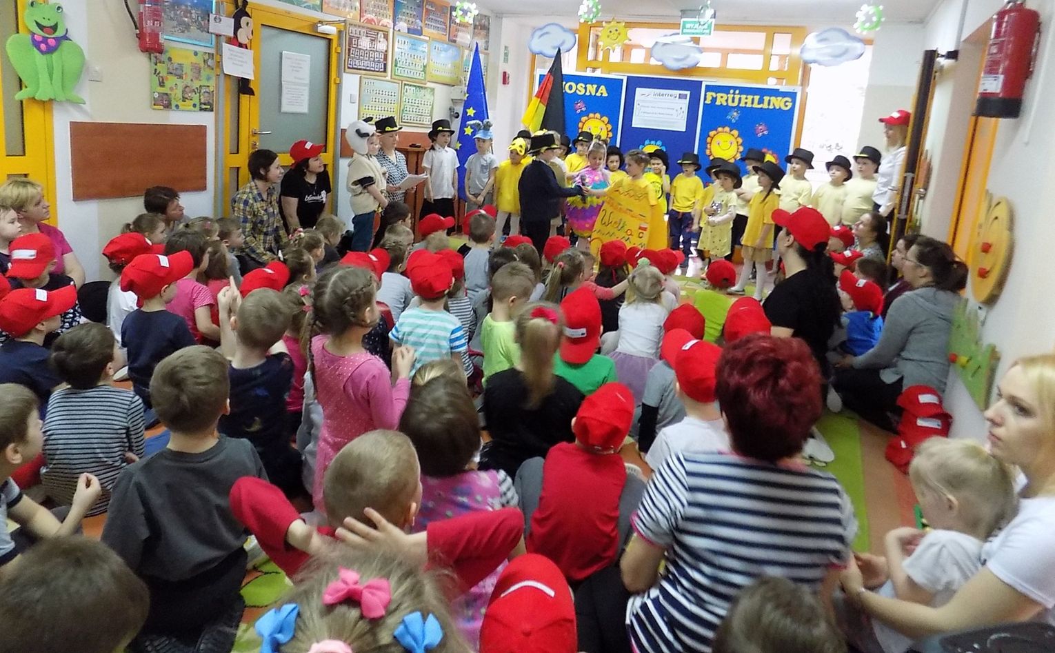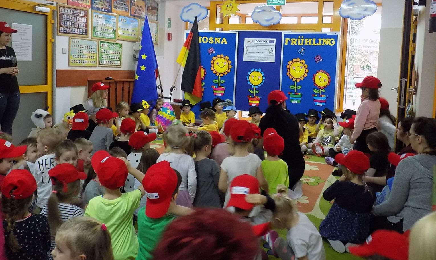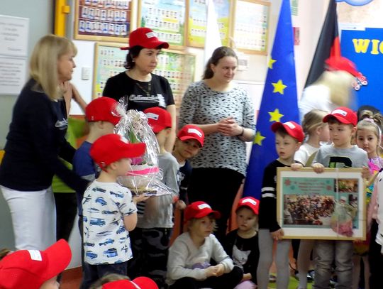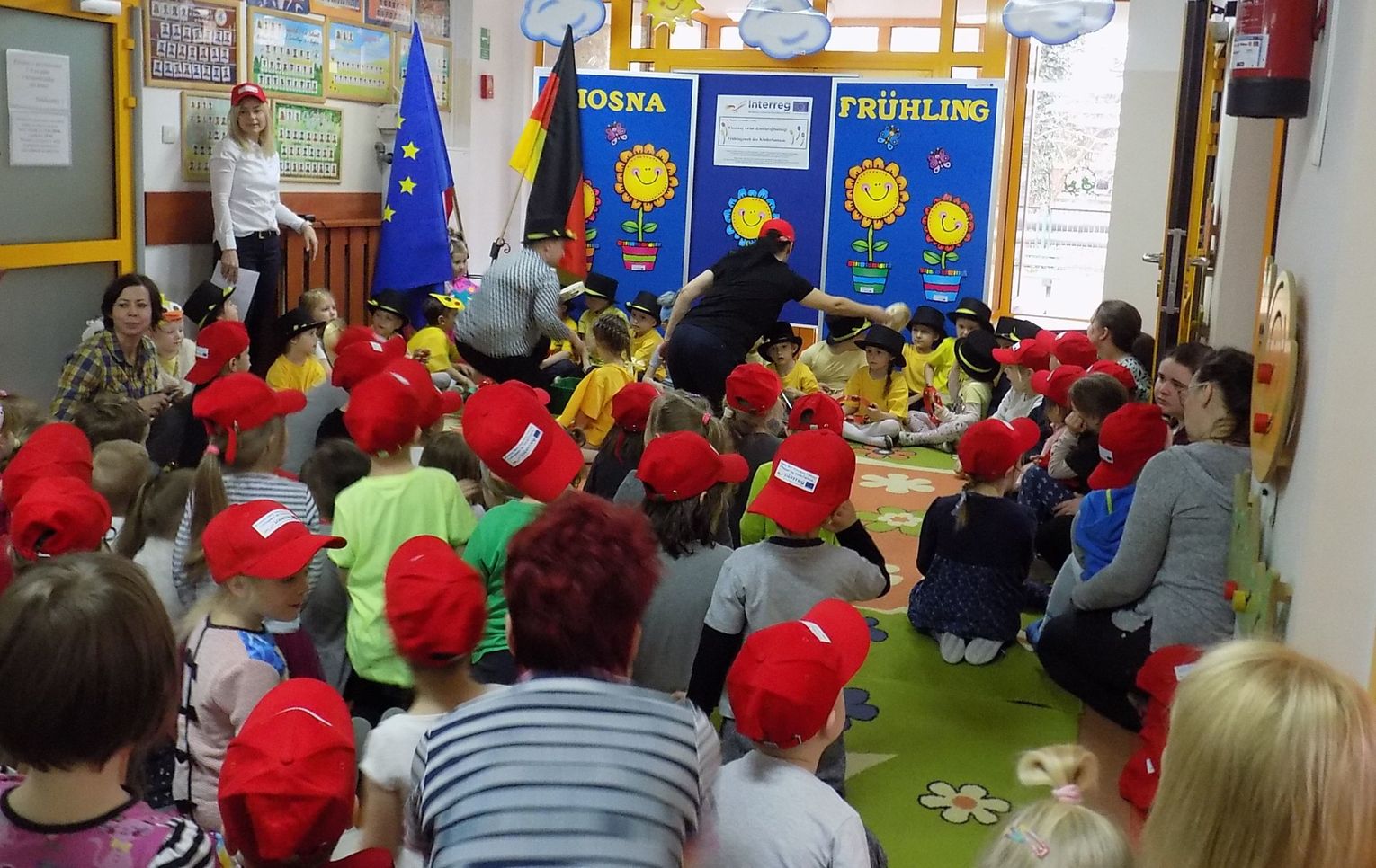 Barbara Wróblewska, dbająca o kontakty i przyjazne pomiędzy dwoma przedszkolami, przywitała gości i gospodarzy. Niemieccy koledzy wręczając przywiezione prezenty podkreślili, że nazwa wiosennego kwiatka „hiacynt” brzmi prawie tak samo po polsku jak po niemiecku.