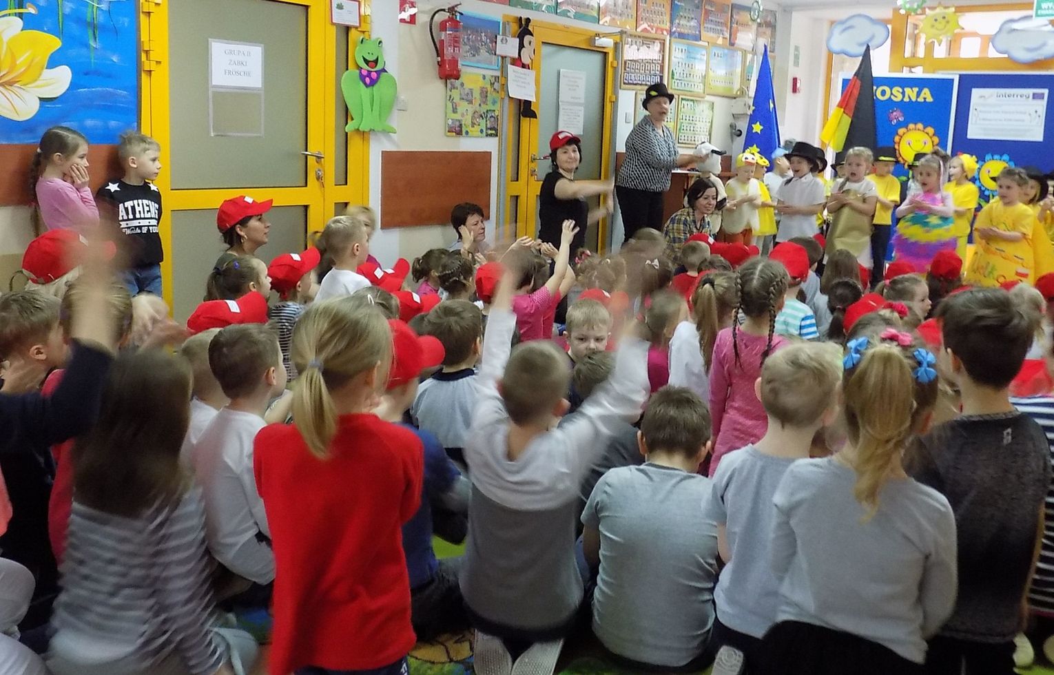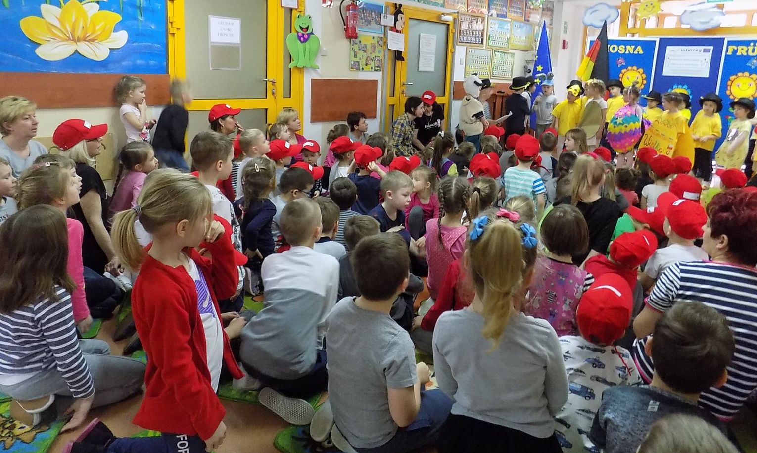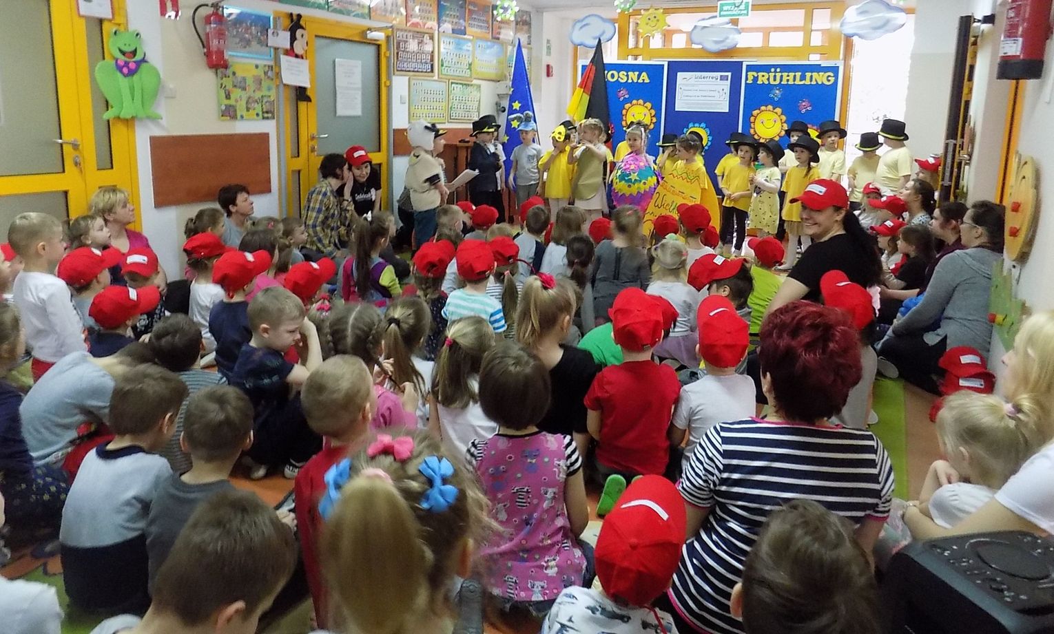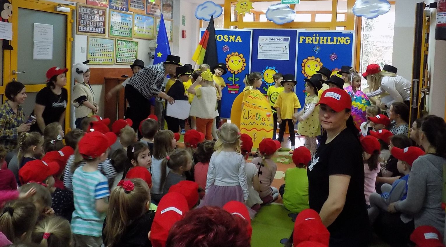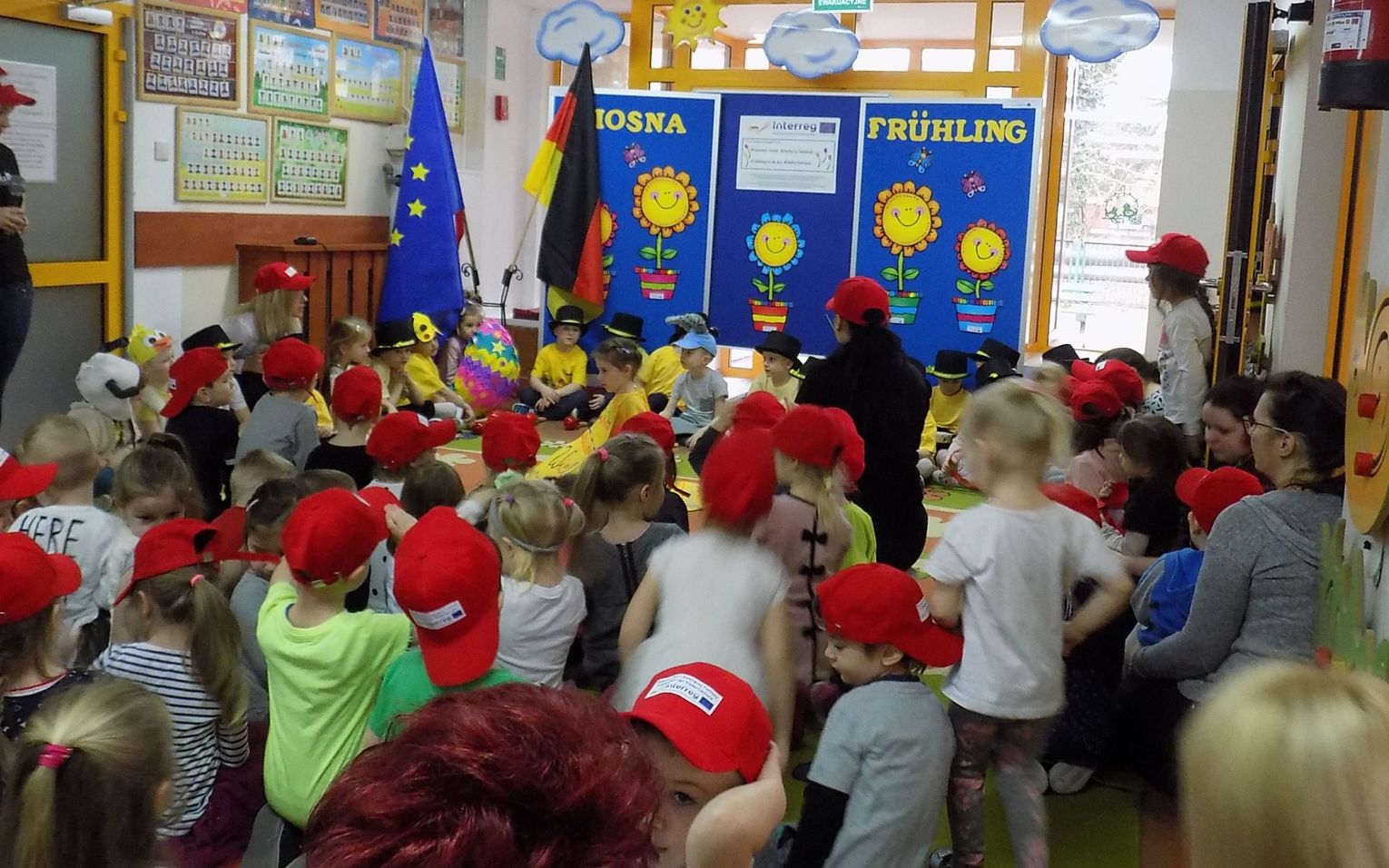 Barbara Wróblewska, dbająca o kontakty i przyjazne pomiędzy dwoma przedszkolami, przywitała gości i gospodarzy. Niemieccy koledzy wręczając przywiezione prezenty podkreślili, że nazwa wiosennego kwiatka „hiacynt” brzmi prawie tak samo po polsku jak po niemiecku.