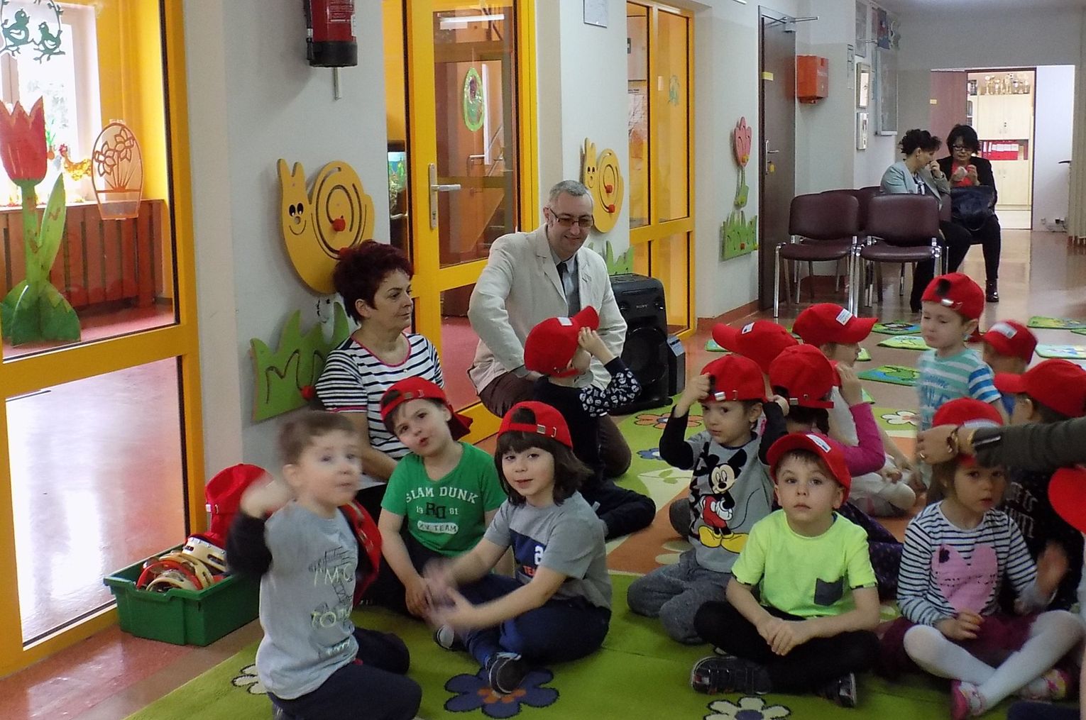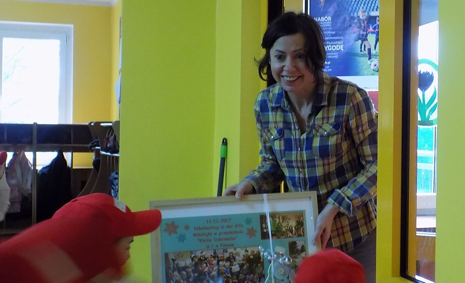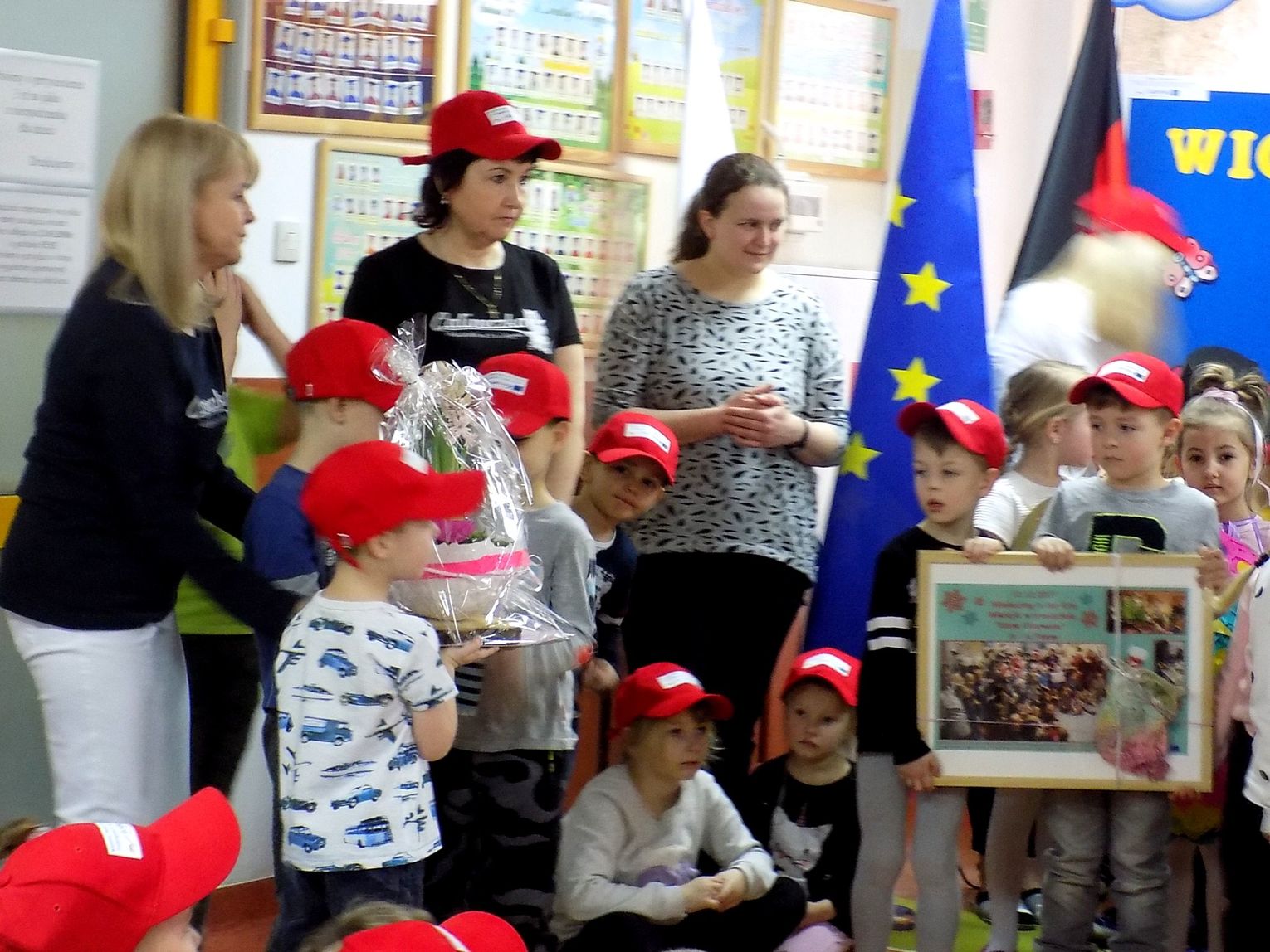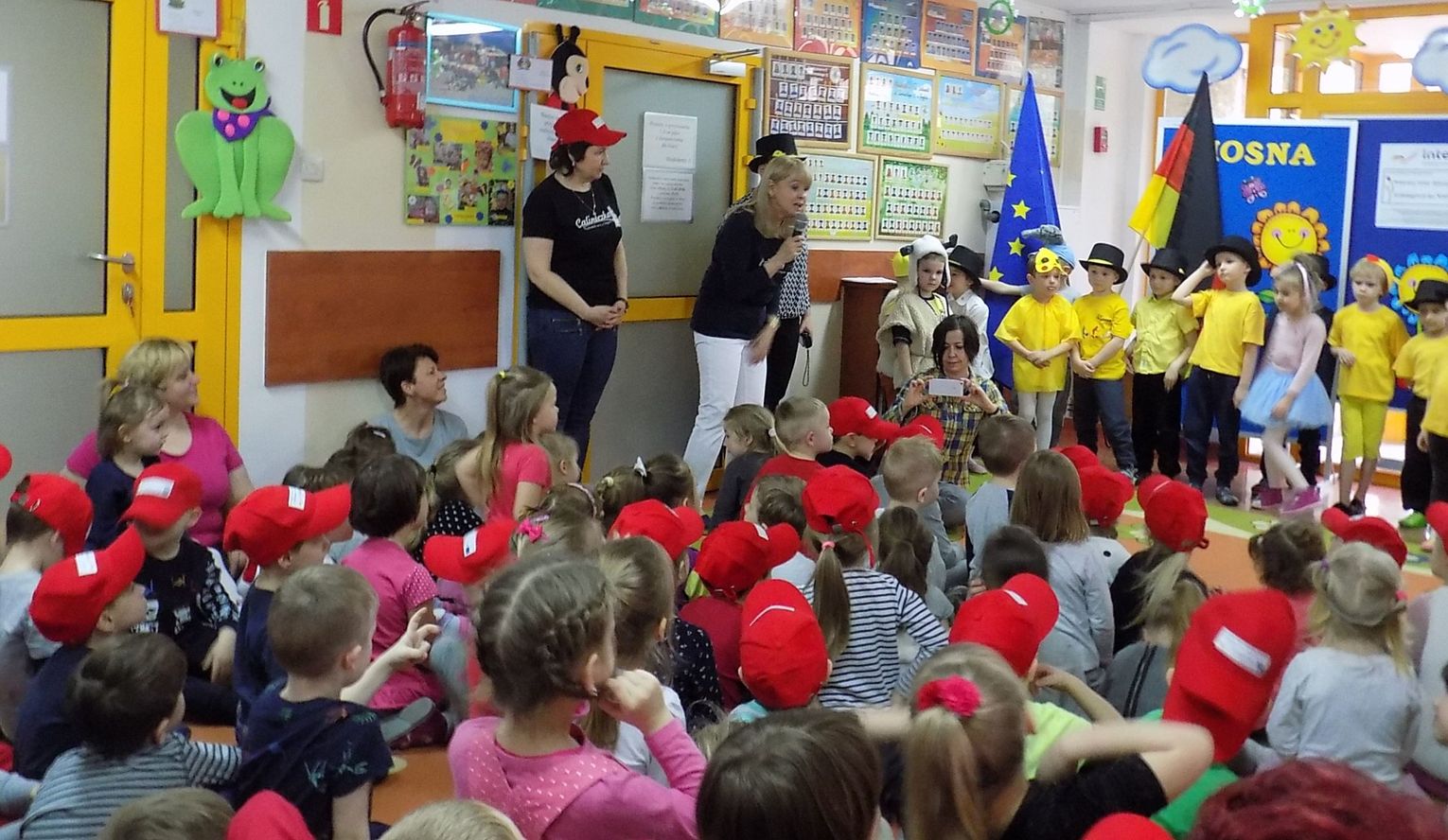 Barbara Wróblewska, dbająca o kontakty i przyjazne pomiędzy dwoma przedszkolami, przywitała gości i gospodarzy. Niemieccy koledzy wręczając przywiezione prezenty podkreślili, że nazwa wiosennego kwiatka „hiacynt” brzmi prawie tak samo po polsku jak po niemiecku.