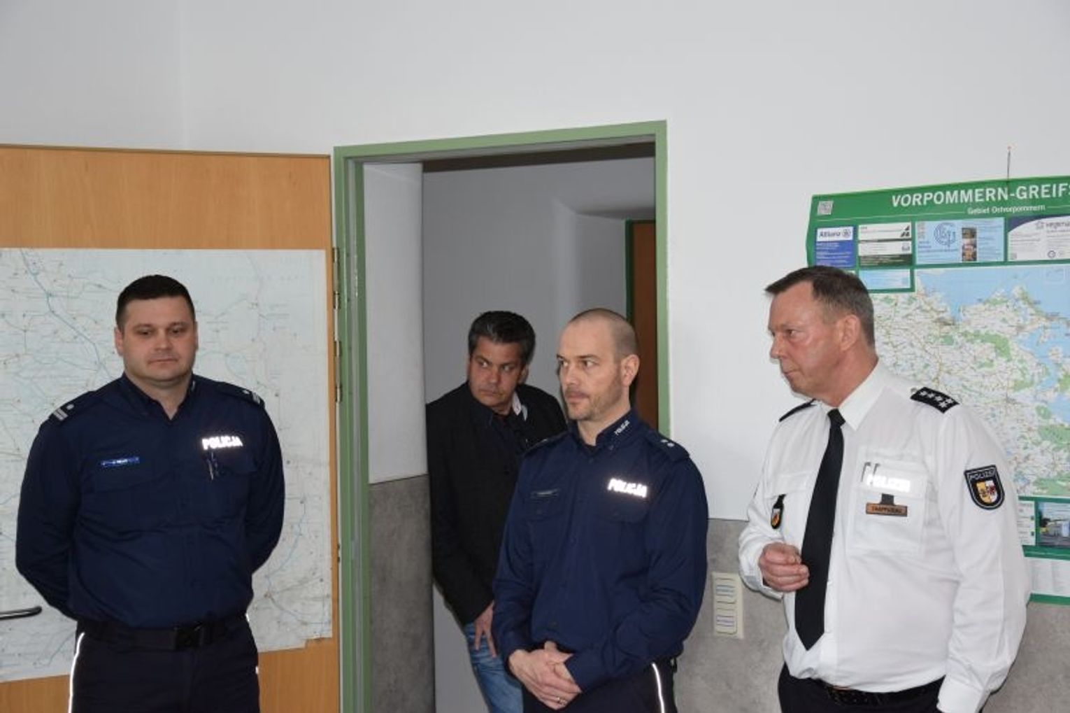Spotkanie odbyło się z funkcjonariuszami policji niemieckiej w ramach współpracy przygranicznej na zaproszenie Pana Andre Chappuzeau Ester Polizeihauptkommissar - Komendanta Posterunku Policji w Pasewalku w Niemczech.