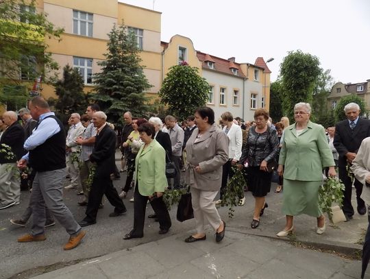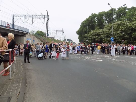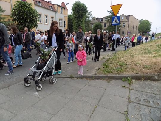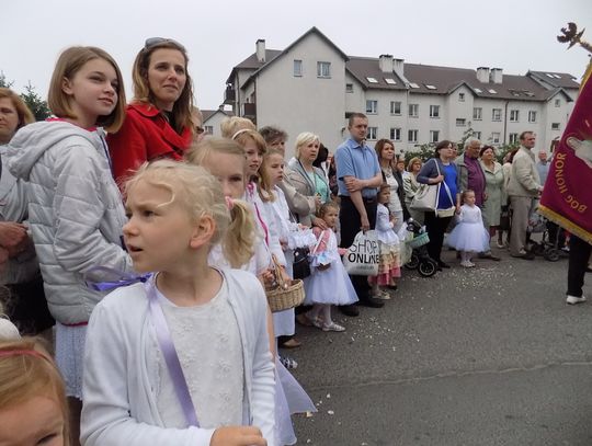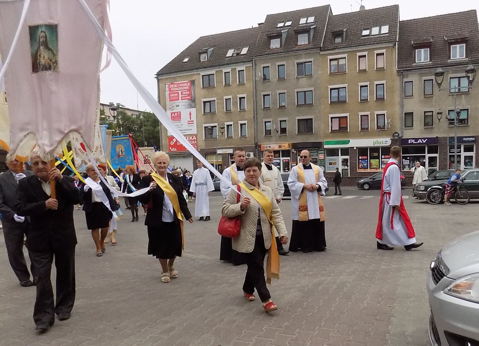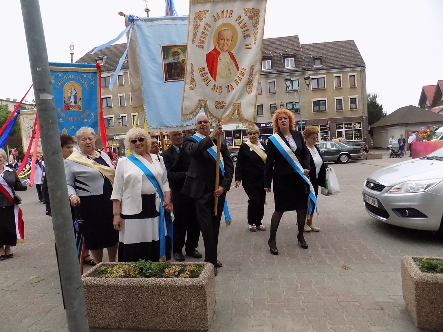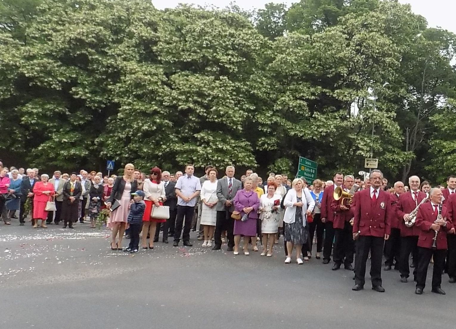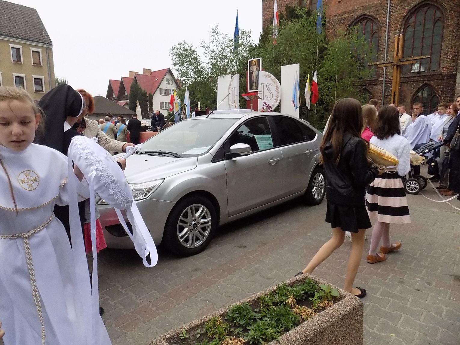 Dziewczynki w białych sukieneczkach sypią kwiaty, bardzo przejęte swoją rolą. Chłopcy niosą ogromny różaniec. Są kobiety adorujące Najświętszą Pannę. Są chorągwie. Gra orkiestra z Dolnej Odry. Wśród księży radujący się gryfinian, dostojny ks. kanonik Bronisław Kozłowski.
