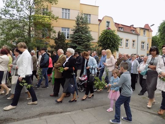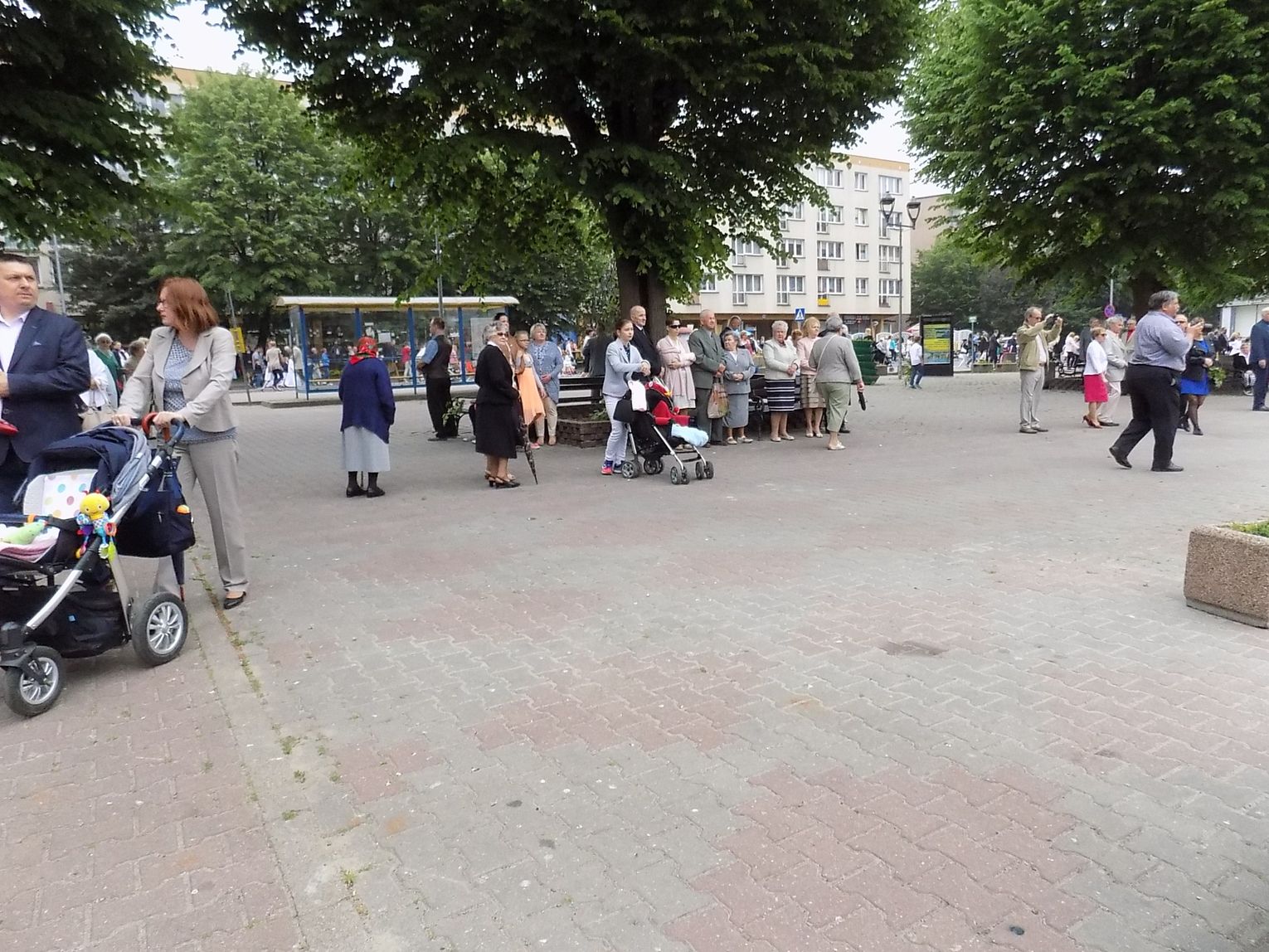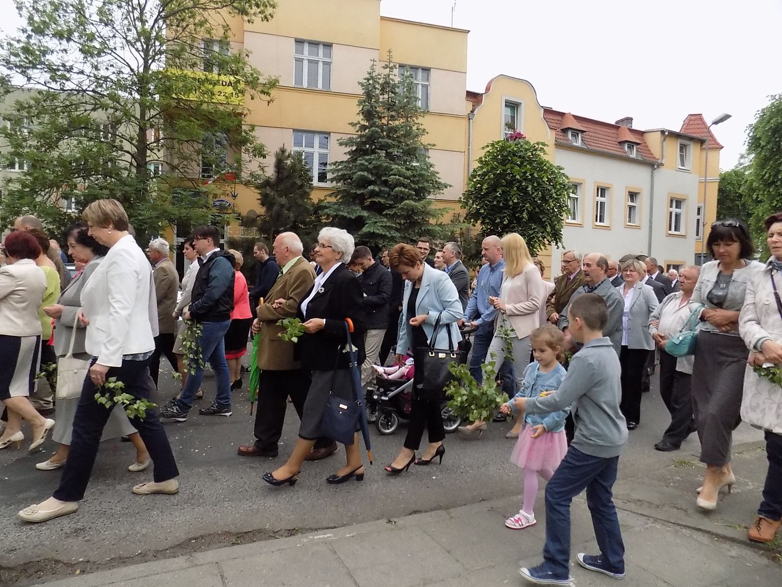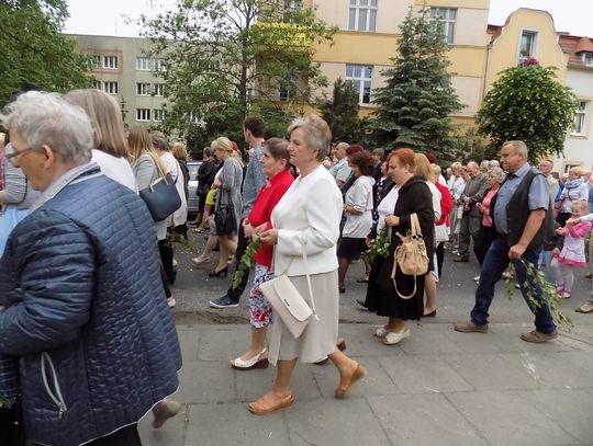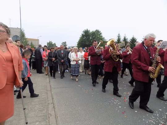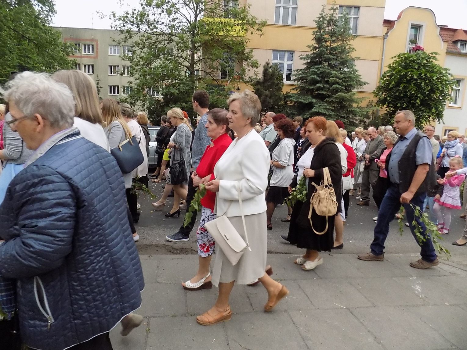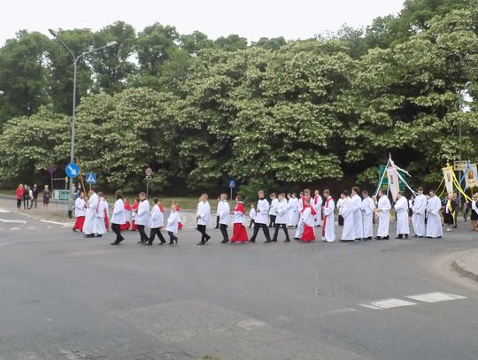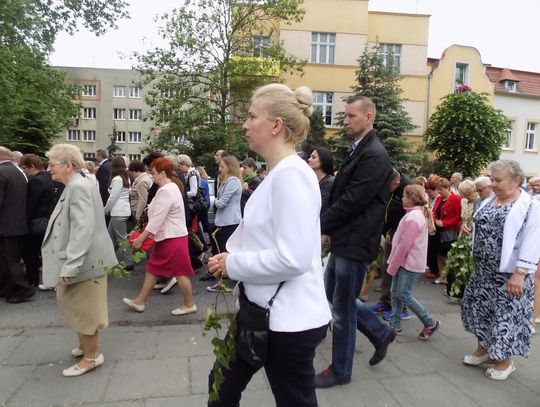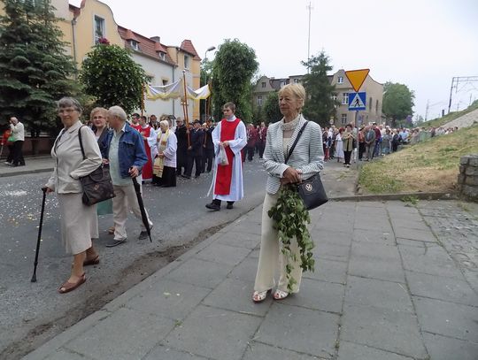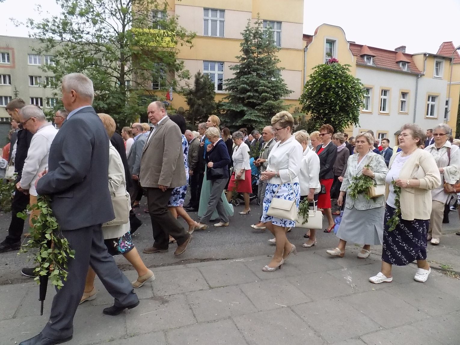 Dziewczynki w białych sukieneczkach sypią kwiaty, bardzo przejęte swoją rolą. Chłopcy niosą ogromny różaniec. Są kobiety adorujące Najświętszą Pannę. Są chorągwie. Gra orkiestra z Dolnej Odry. Wśród księży radujący się gryfinian, dostojny ks. kanonik Bronisław Kozłowski.