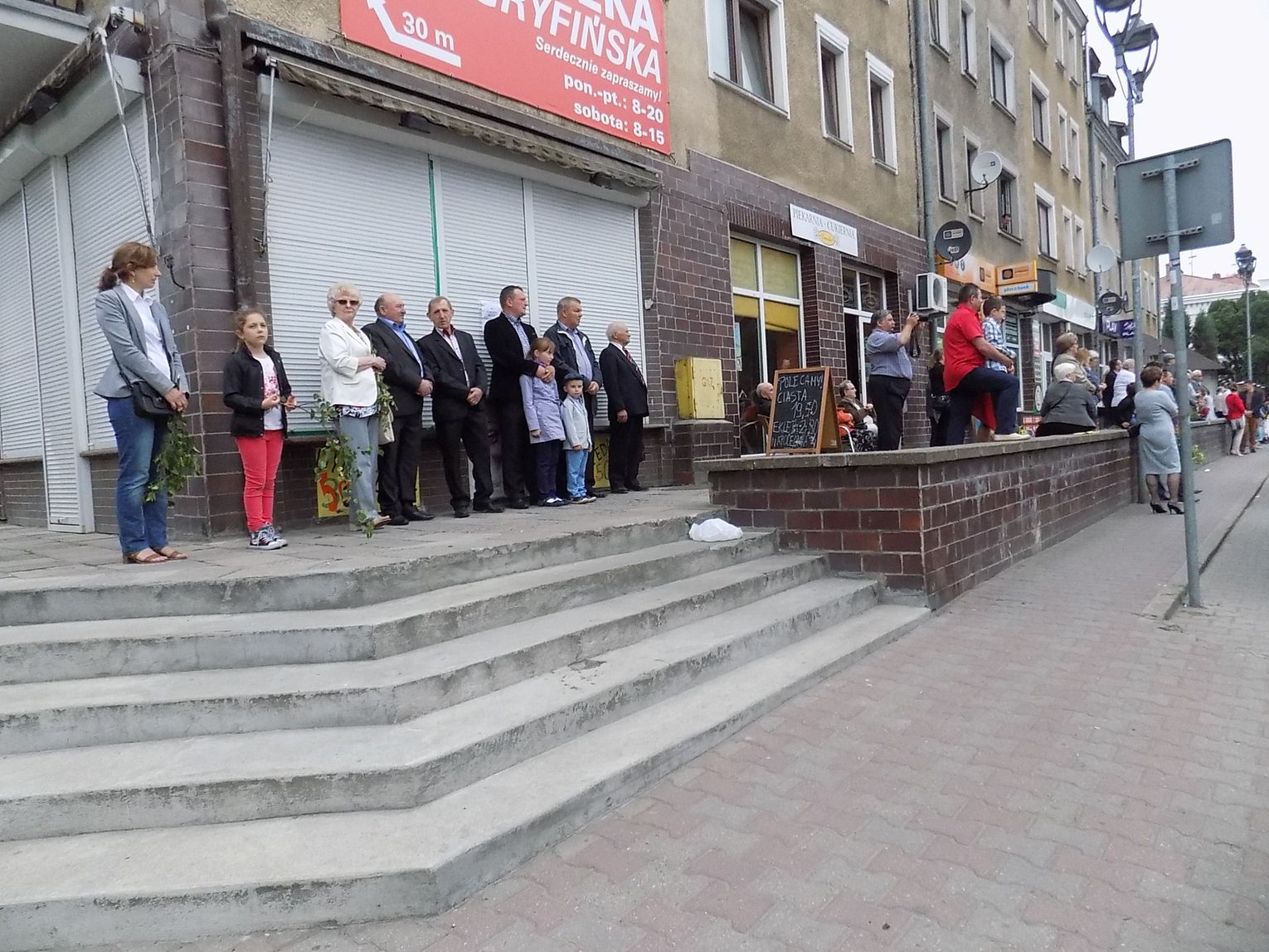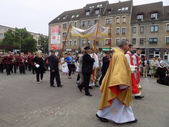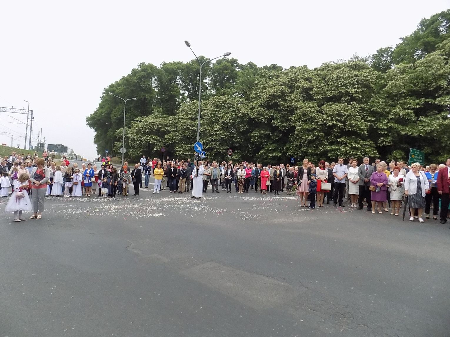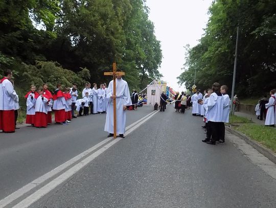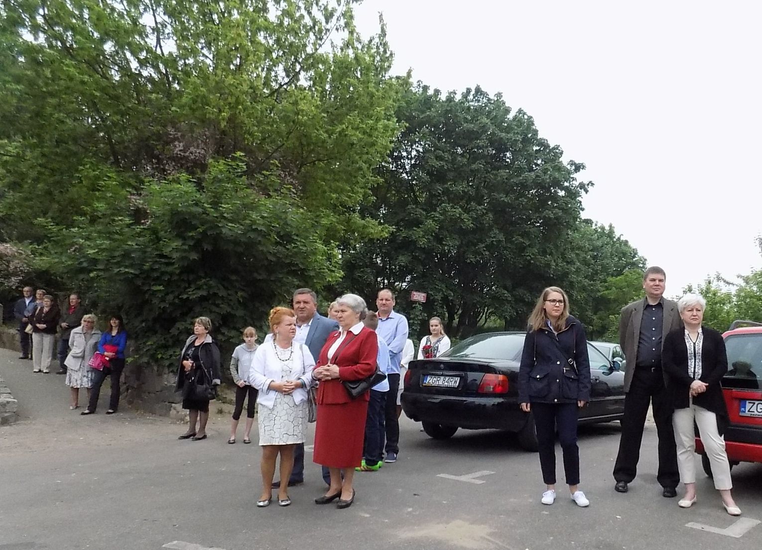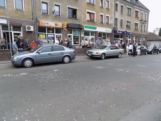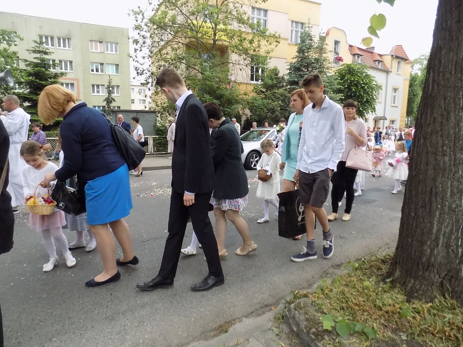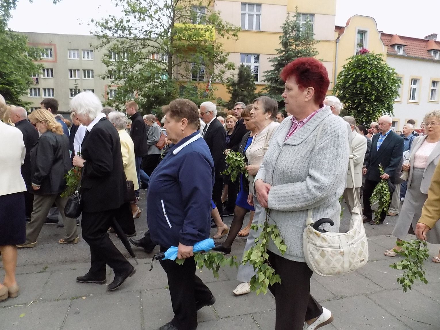 Dziewczynki w białych sukieneczkach sypią kwiaty, bardzo przejęte swoją rolą. Chłopcy niosą ogromny różaniec. Są kobiety adorujące Najświętszą Pannę. Są chorągwie. Gra orkiestra z Dolnej Odry. Wśród księży radujący się gryfinian, dostojny ks. kanonik Bronisław Kozłowski.