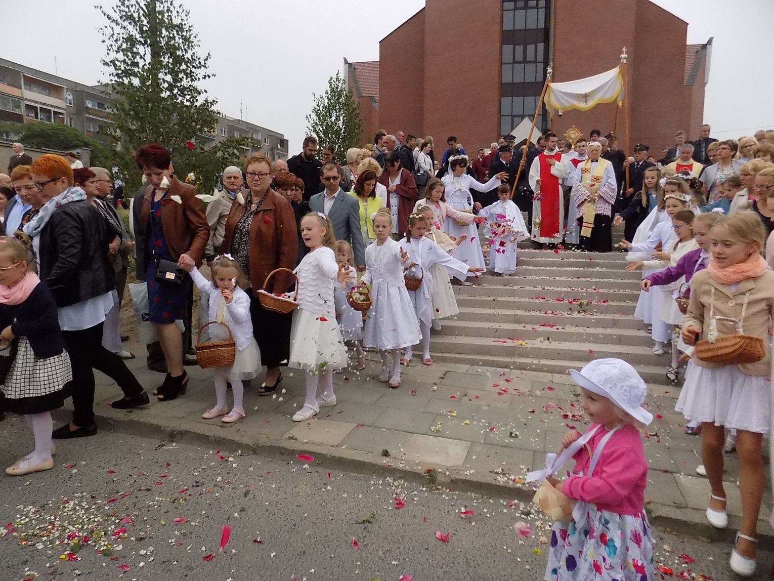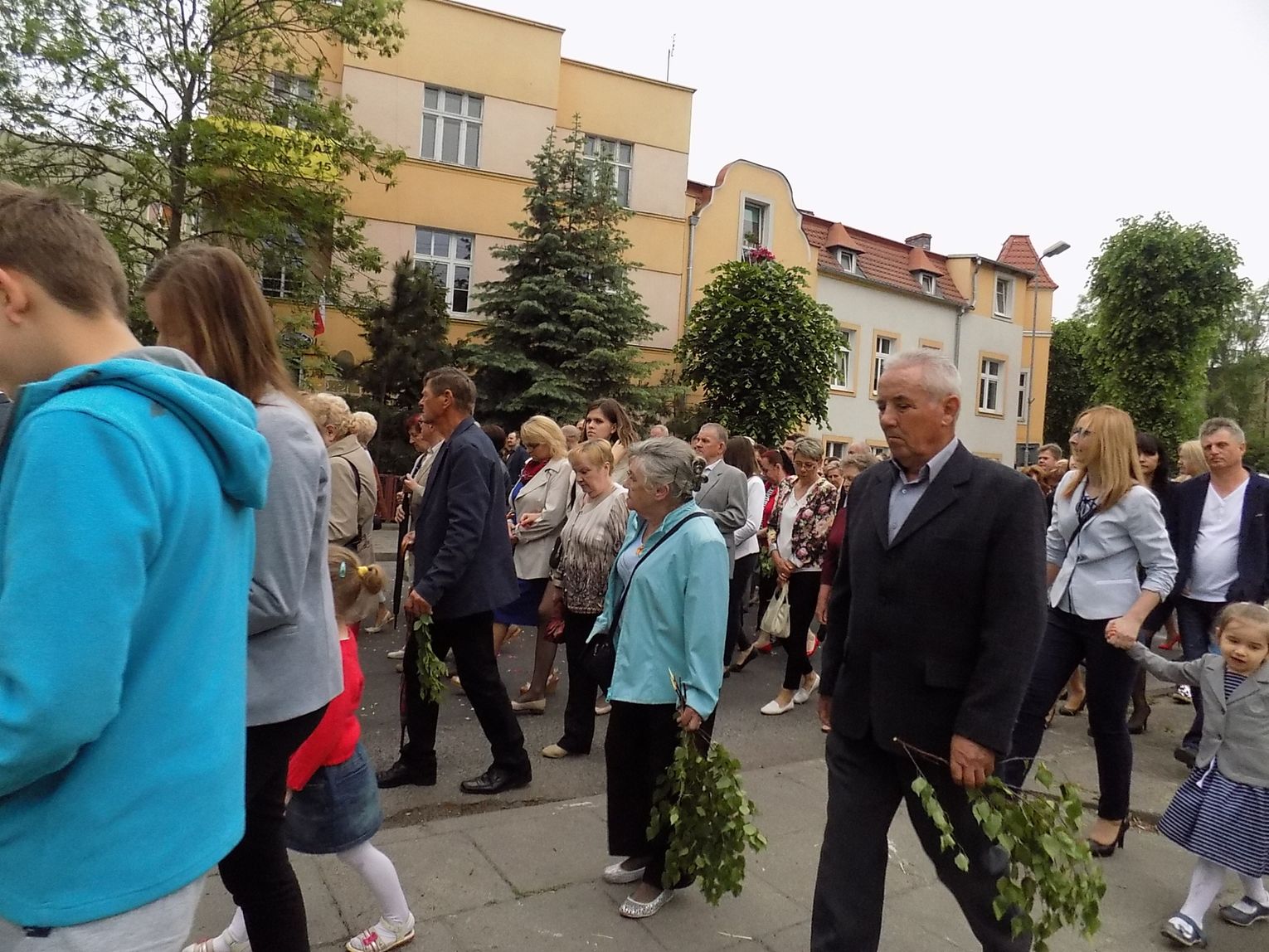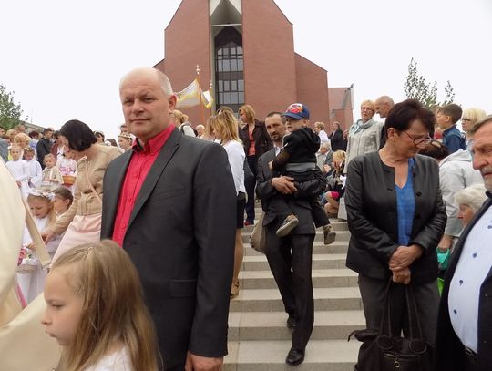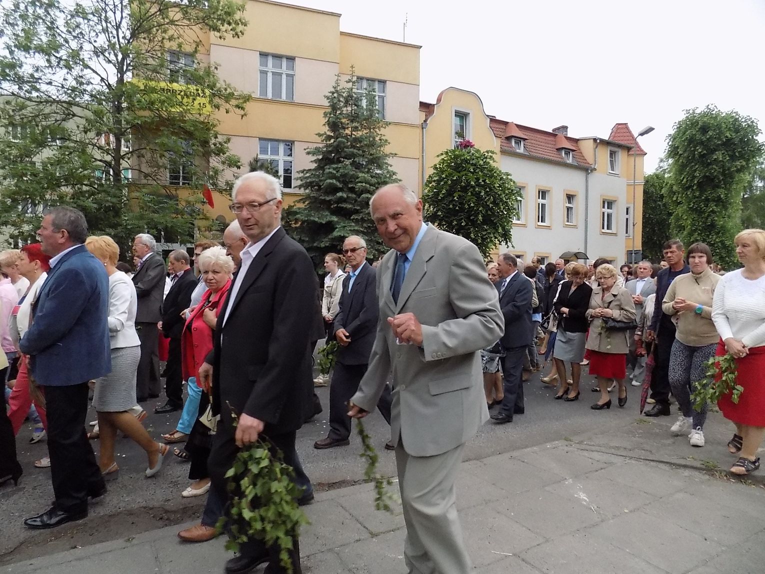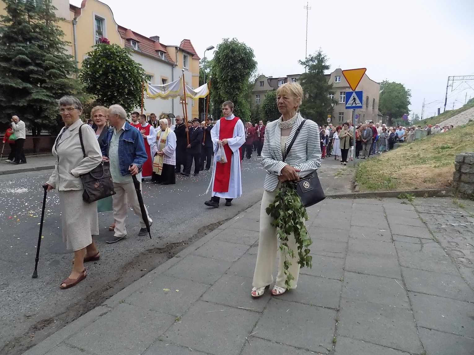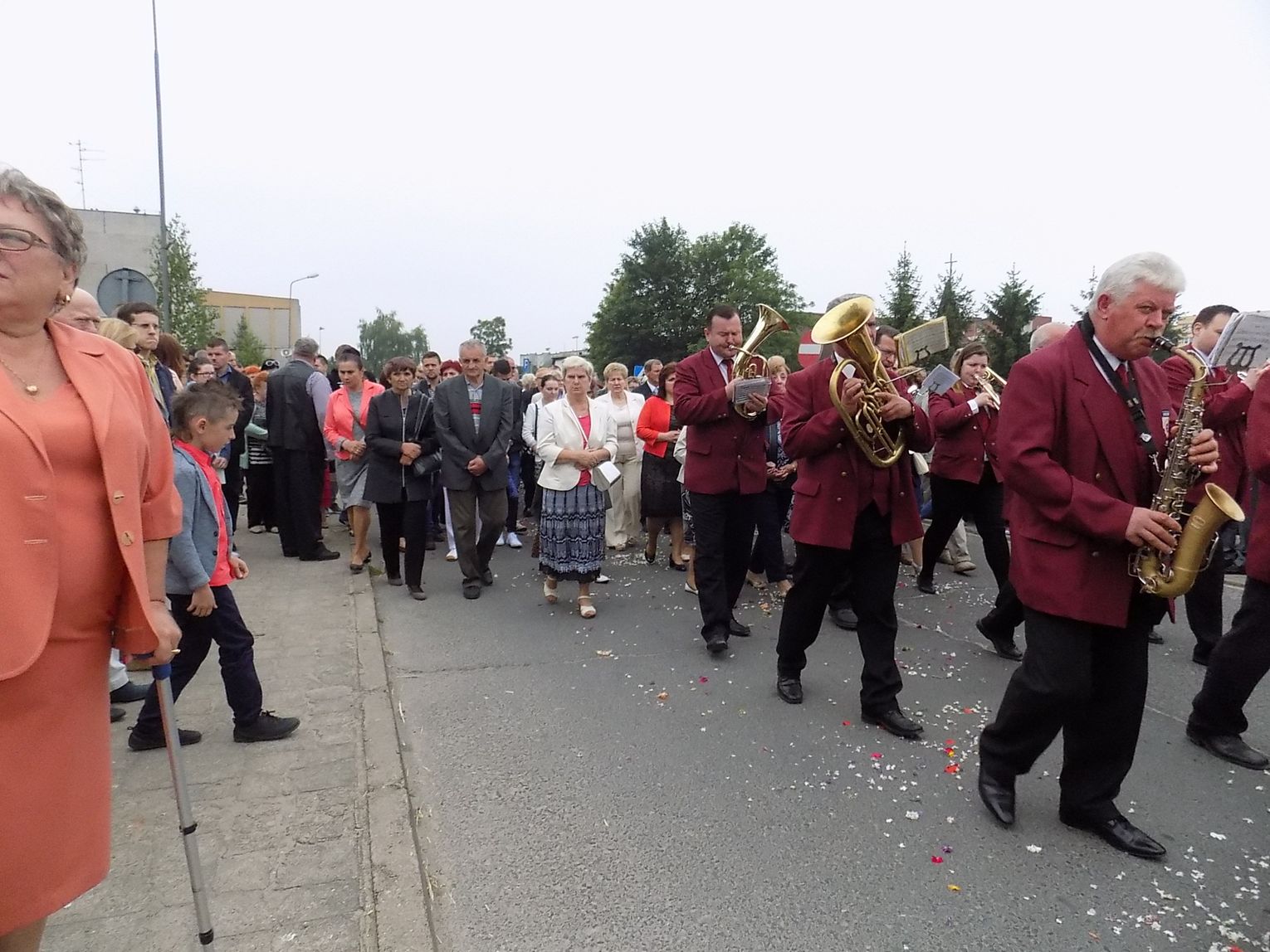 Dziewczynki w białych sukieneczkach sypią kwiaty, bardzo przejęte swoją rolą. Chłopcy niosą ogromny różaniec. Są kobiety adorujące Najświętszą Pannę. Są chorągwie. Gra orkiestra z Dolnej Odry. Wśród księży radujący się gryfinian, dostojny ks. kanonik Bronisław Kozłowski.