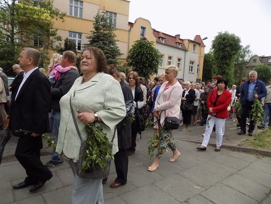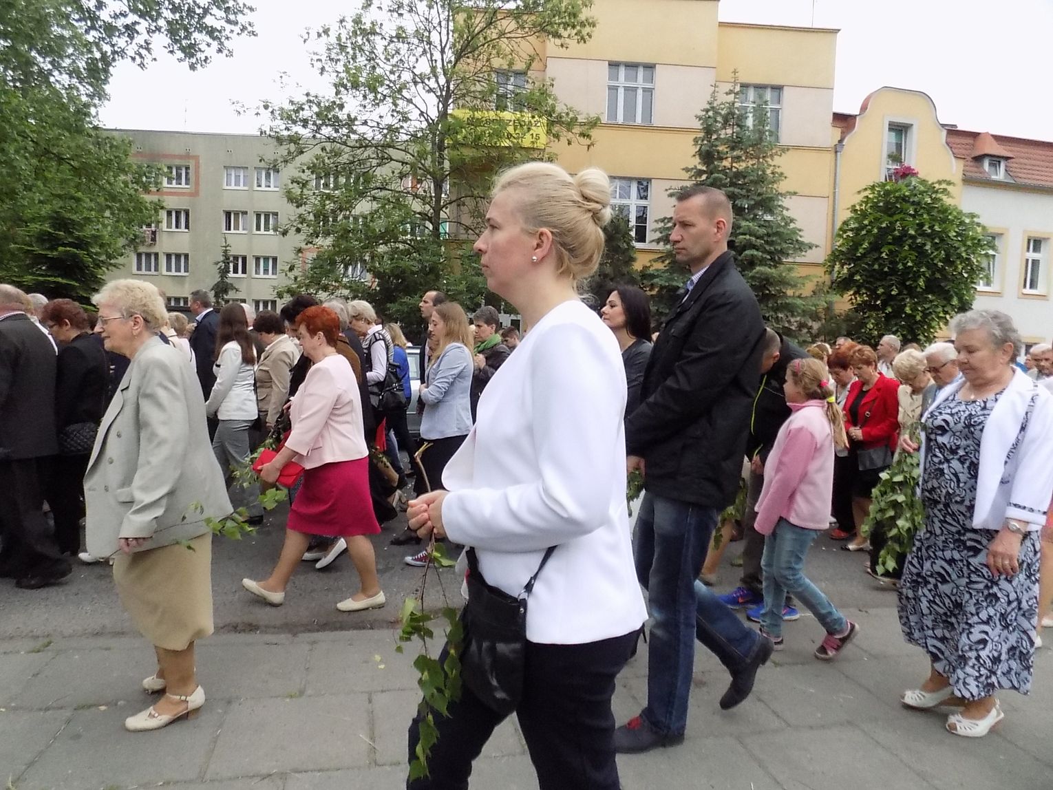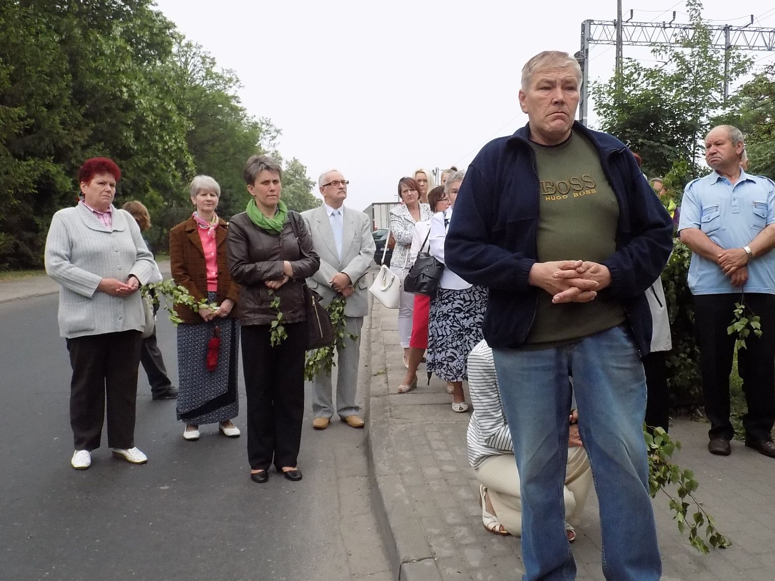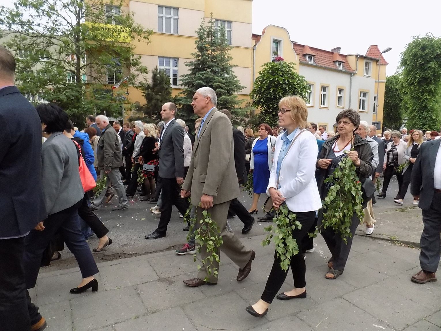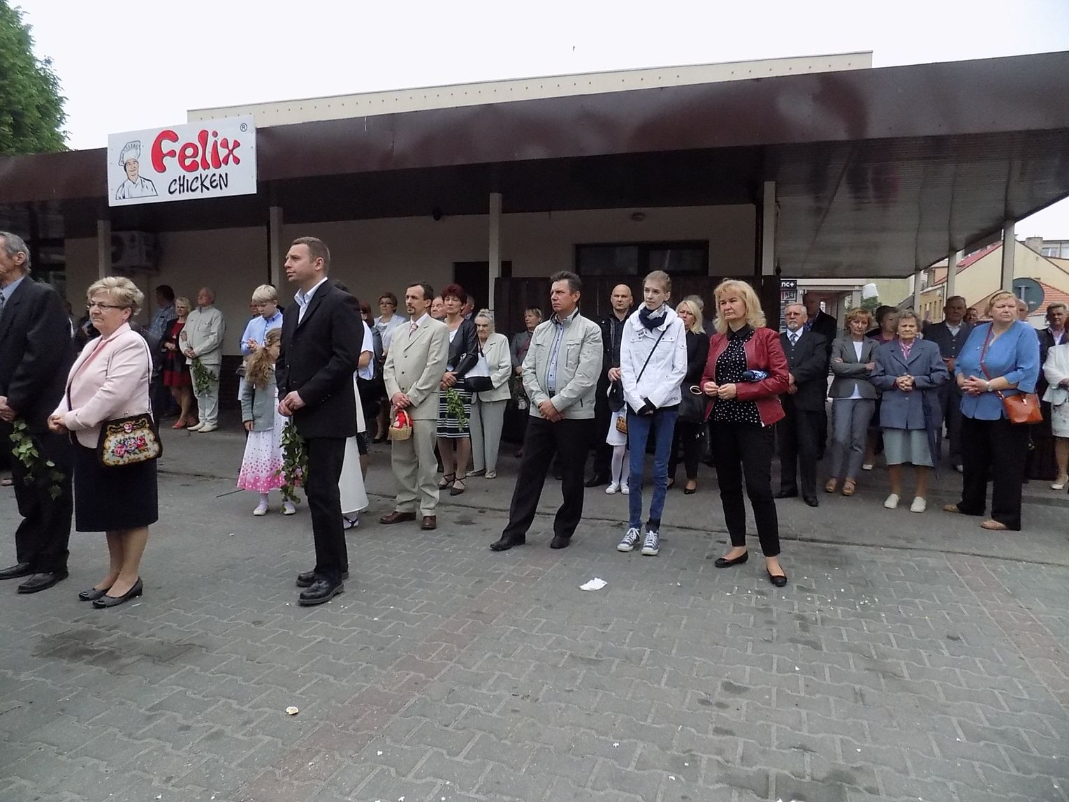 Dziewczynki w białych sukieneczkach sypią kwiaty, bardzo przejęte swoją rolą. Chłopcy niosą ogromny różaniec. Są kobiety adorujące Najświętszą Pannę. Są chorągwie. Gra orkiestra z Dolnej Odry. Wśród księży radujący się gryfinian, dostojny ks. kanonik Bronisław Kozłowski.