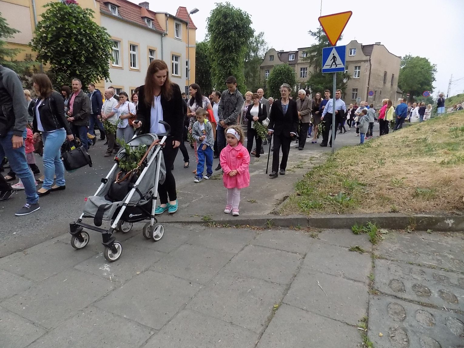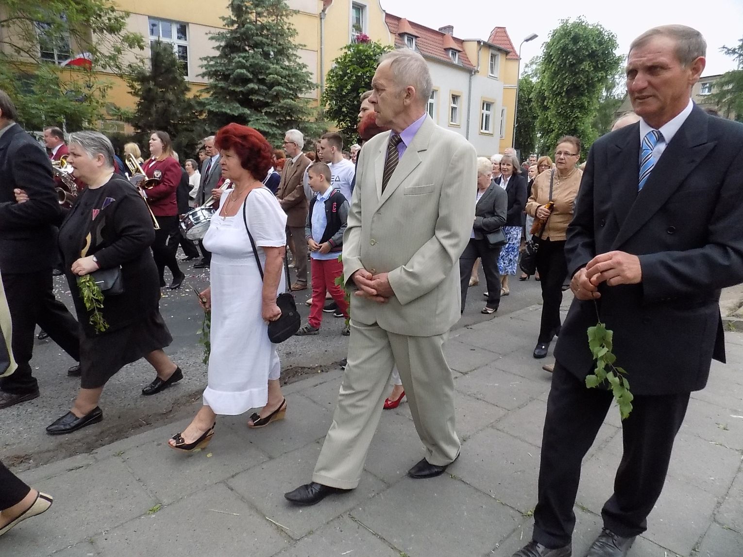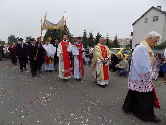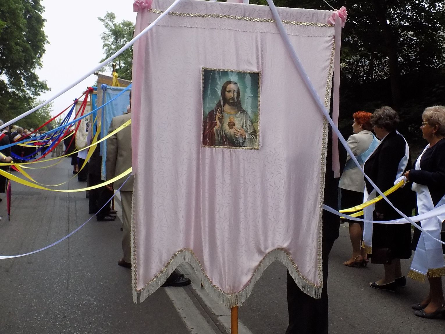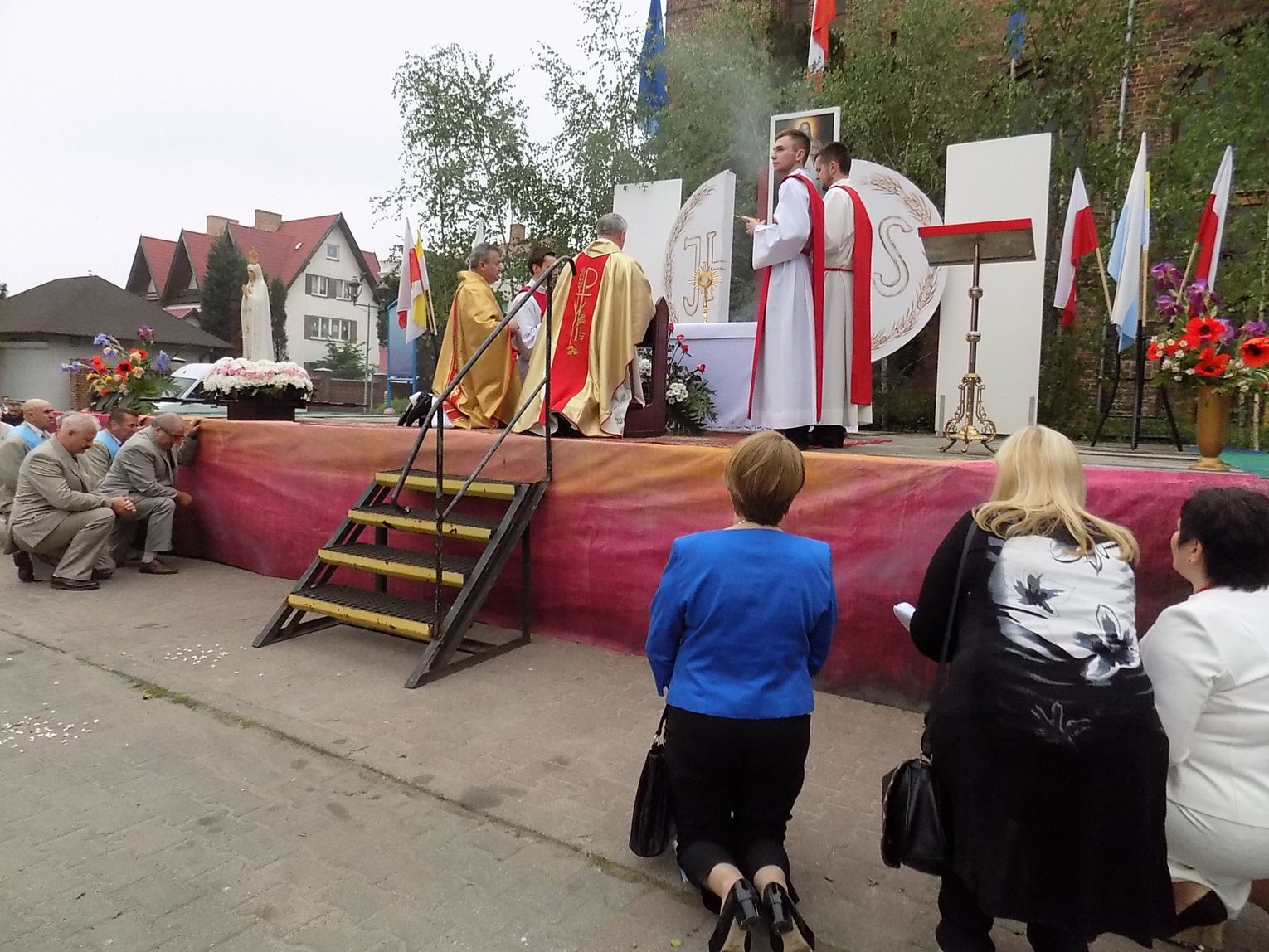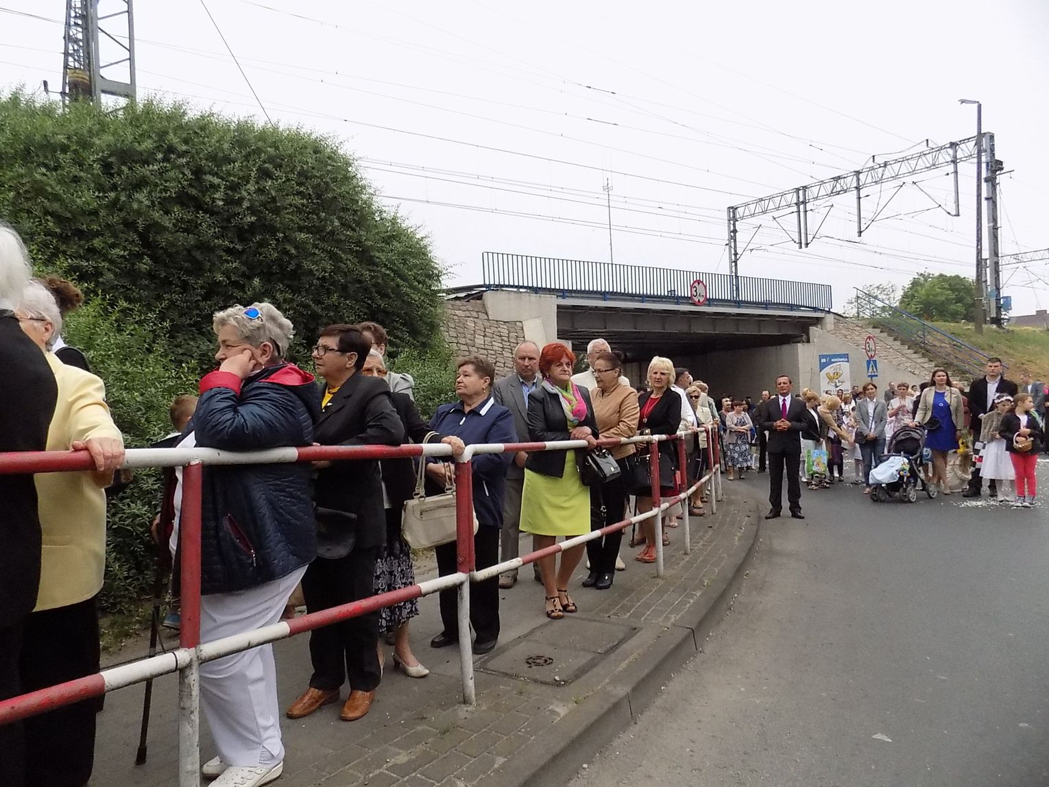 Dziewczynki w białych sukieneczkach sypią kwiaty, bardzo przejęte swoją rolą. Chłopcy niosą ogromny różaniec. Są kobiety adorujące Najświętszą Pannę. Są chorągwie. Gra orkiestra z Dolnej Odry. Wśród księży radujący się gryfinian, dostojny ks. kanonik Bronisław Kozłowski.