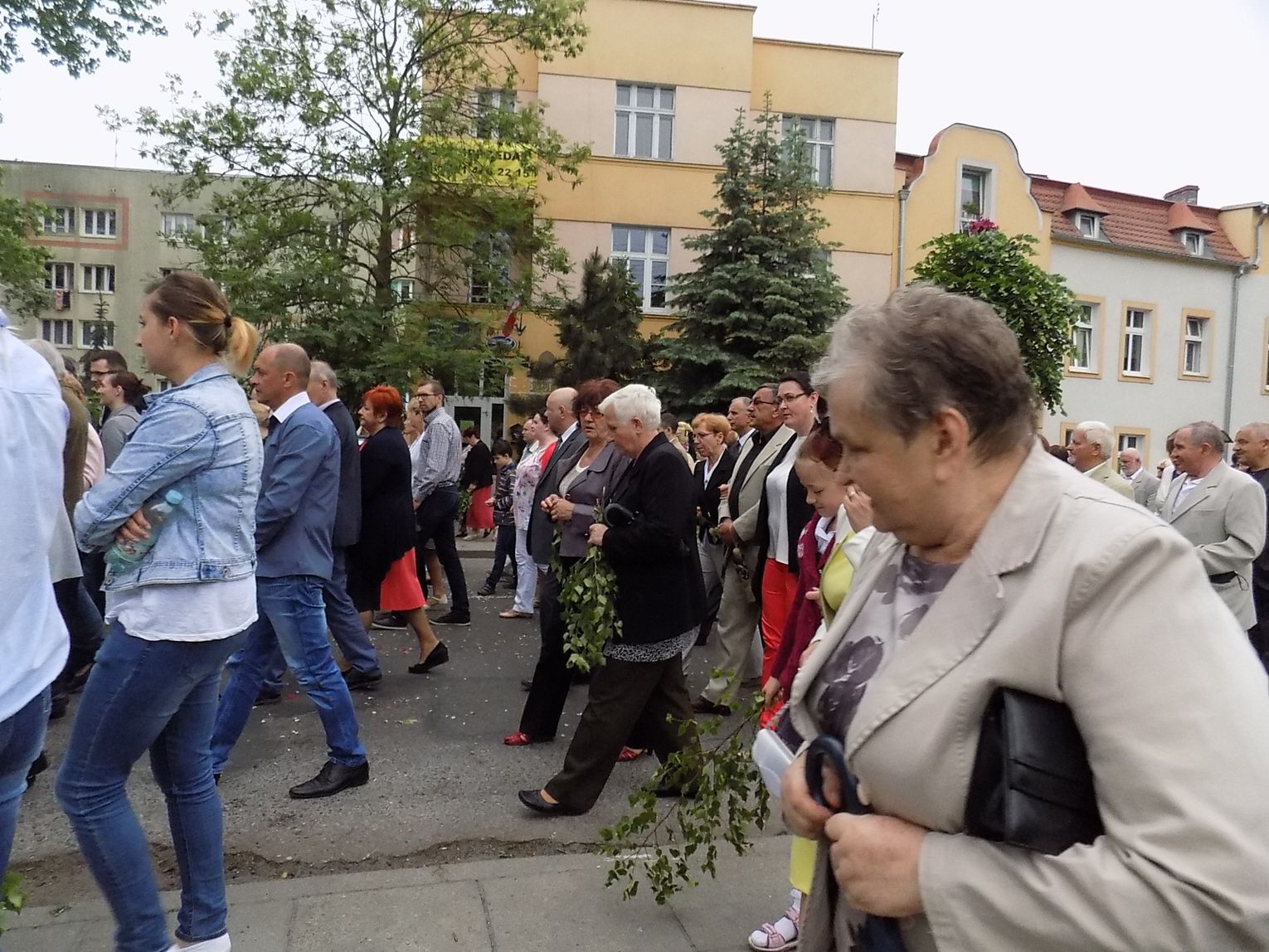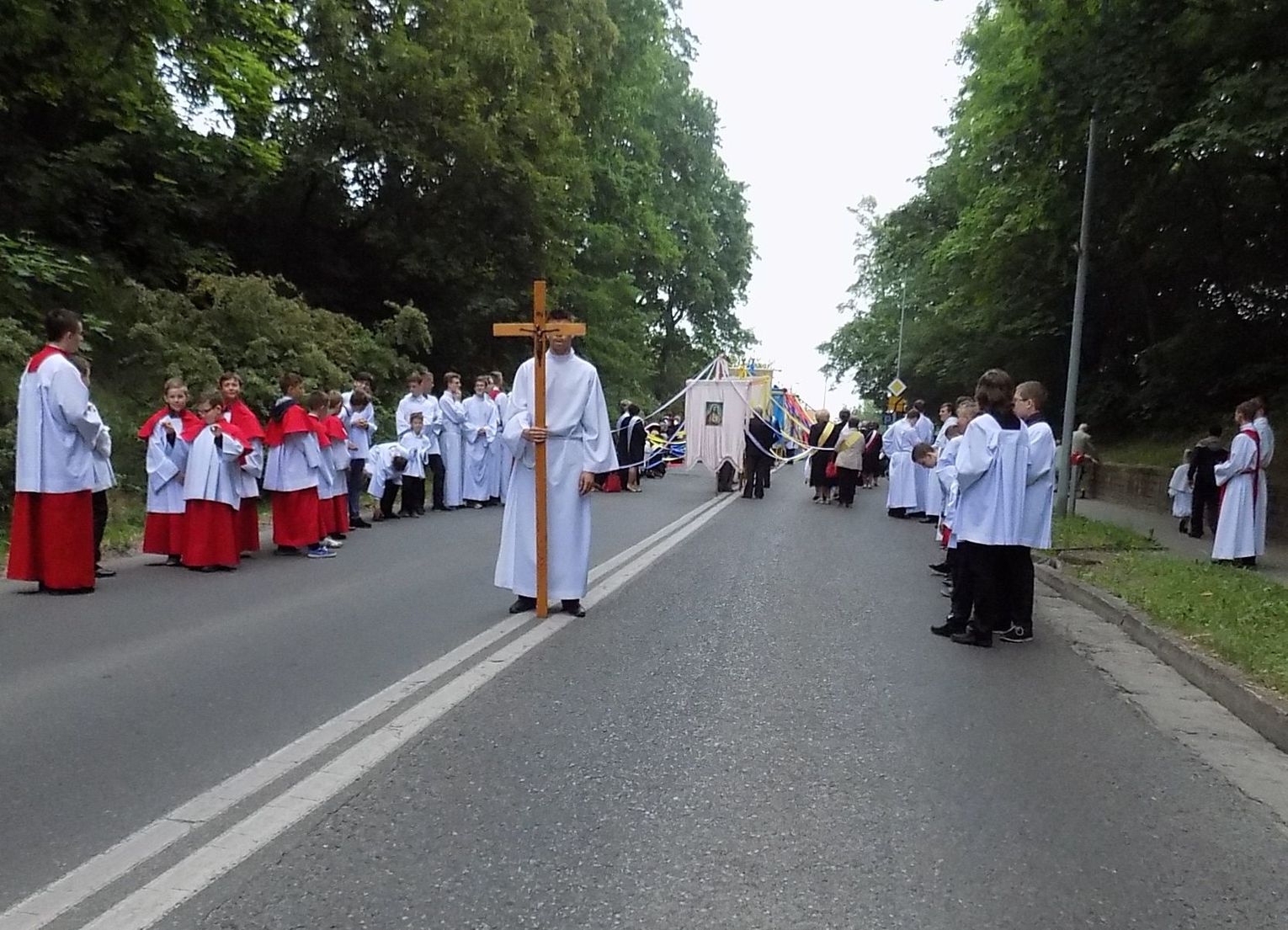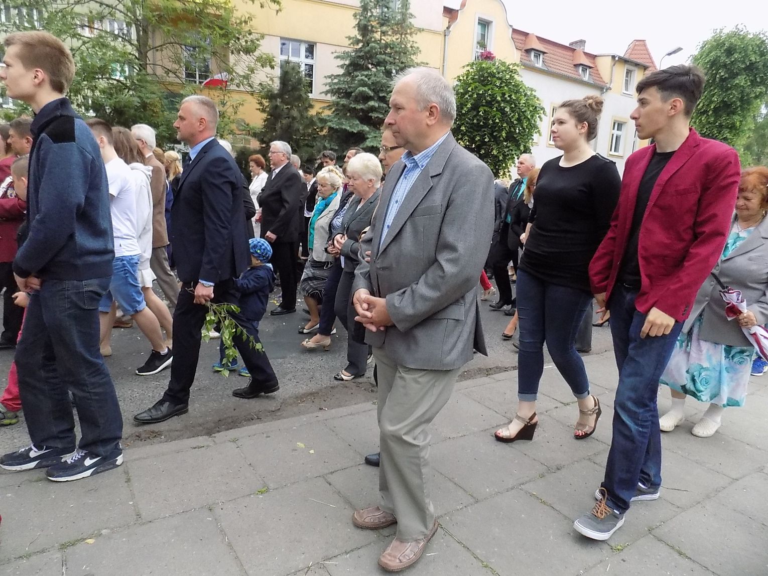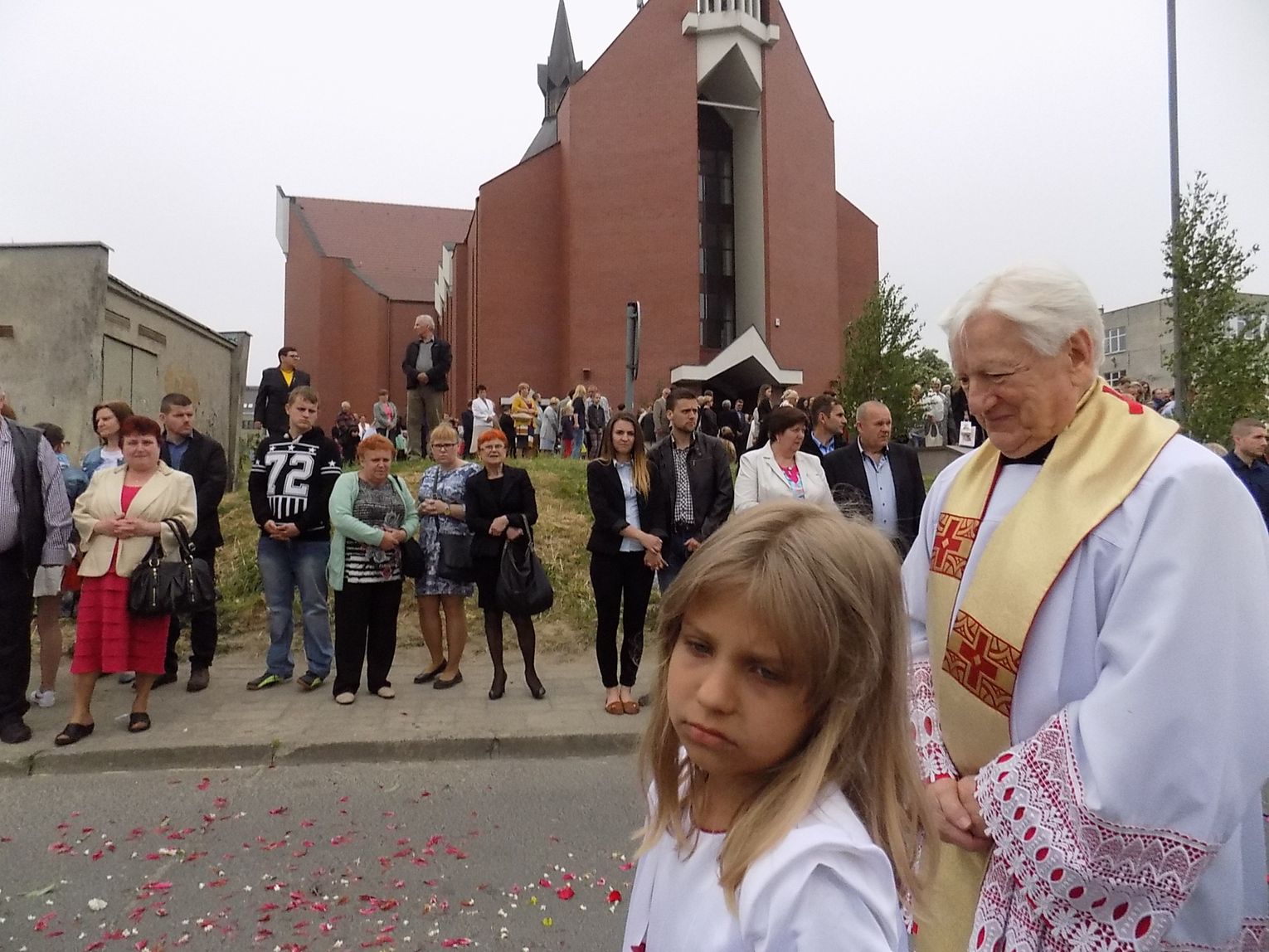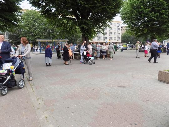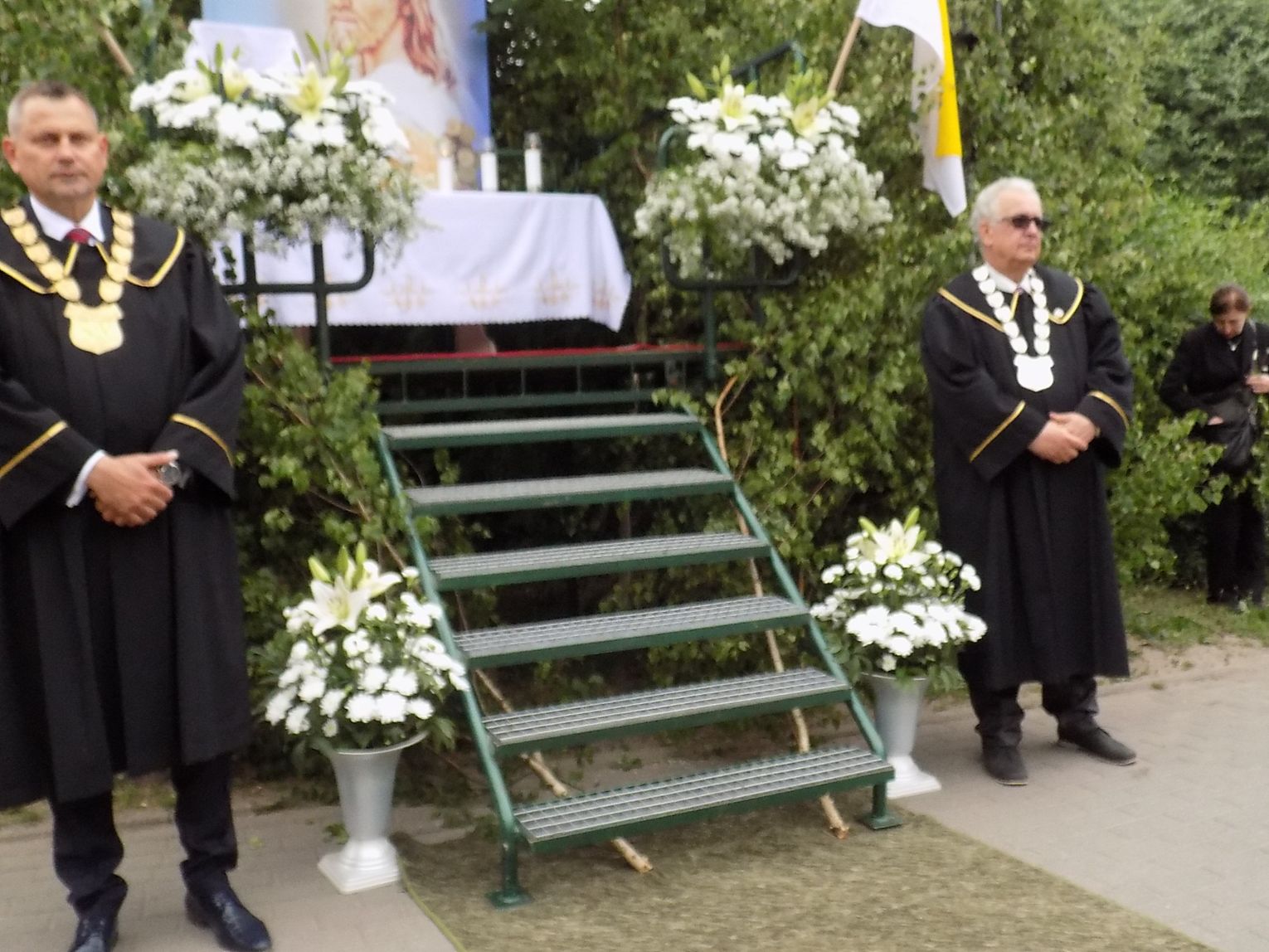 Dziewczynki w białych sukieneczkach sypią kwiaty, bardzo przejęte swoją rolą. Chłopcy niosą ogromny różaniec. Są kobiety adorujące Najświętszą Pannę. Są chorągwie. Gra orkiestra z Dolnej Odry. Wśród księży radujący się gryfinian, dostojny ks. kanonik Bronisław Kozłowski.