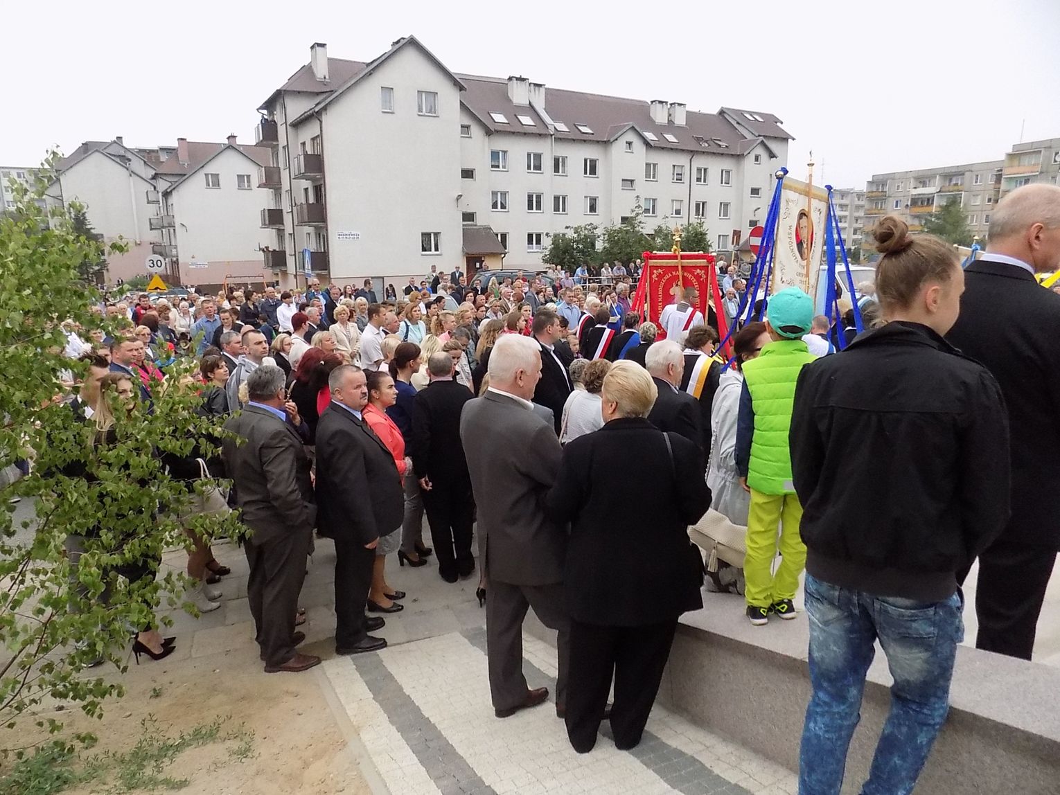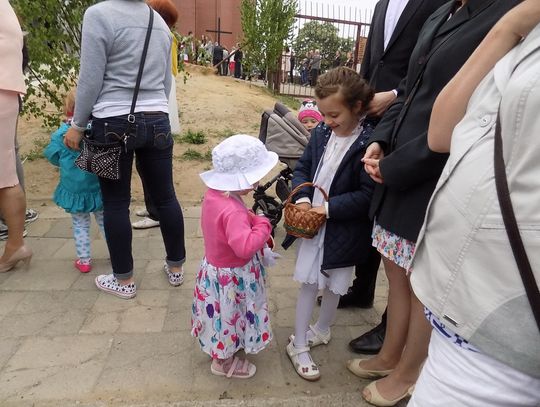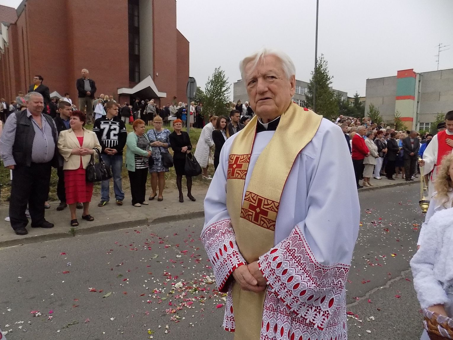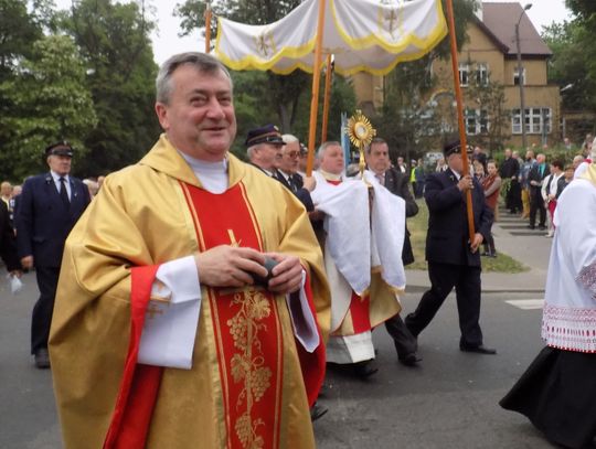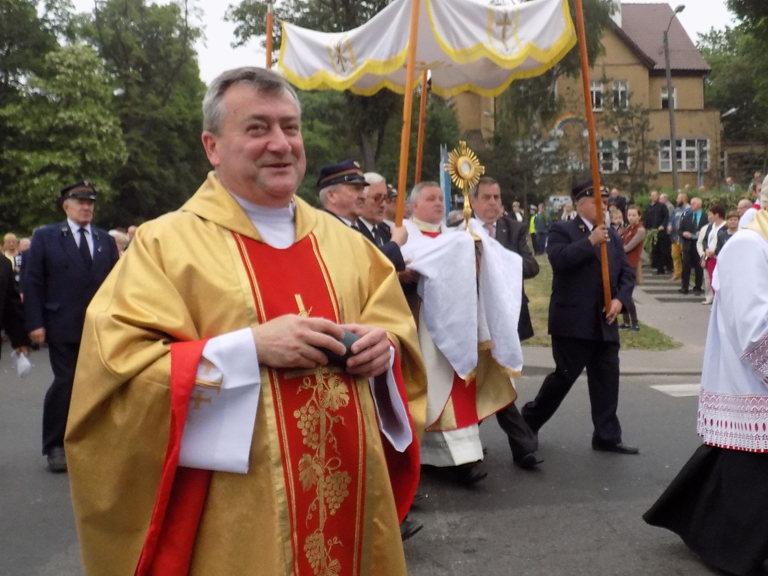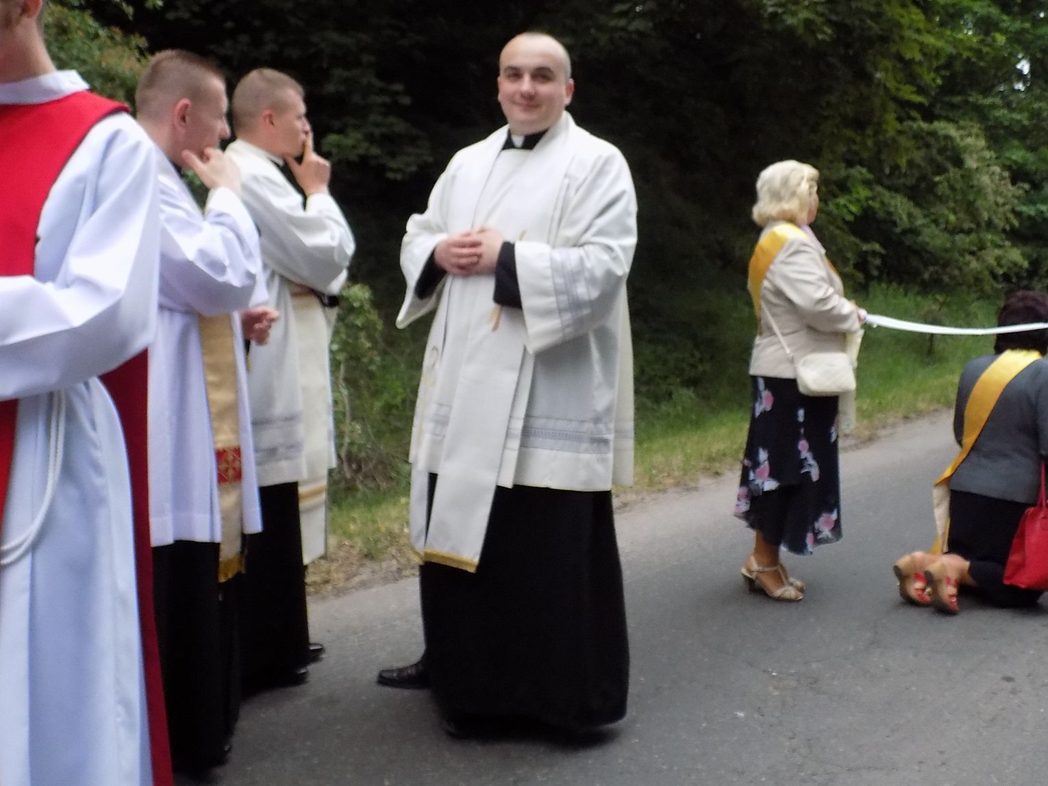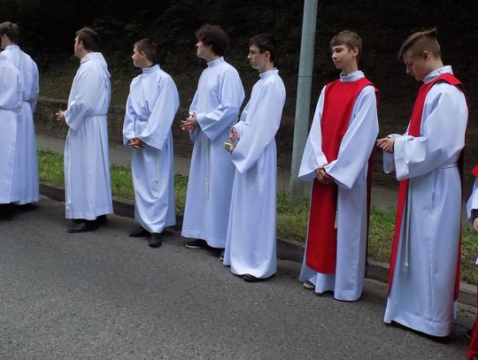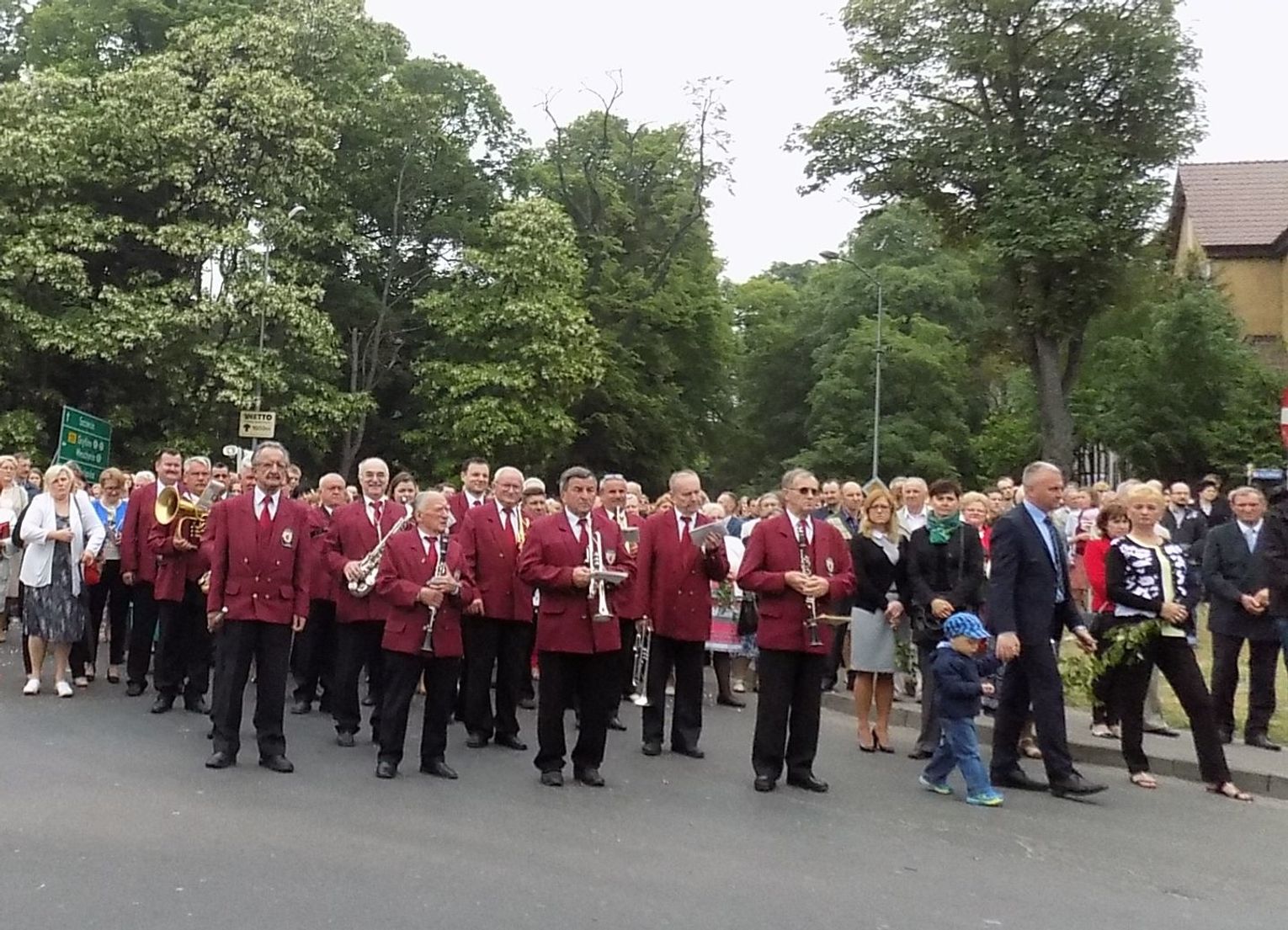Dziewczynki w białych sukieneczkach sypią kwiaty, bardzo przejęte swoją rolą. Chłopcy niosą ogromny różaniec. Są kobiety adorujące Najświętszą Pannę. Są chorągwie. Gra orkiestra z Dolnej Odry. Wśród księży radujący się gryfinian, dostojny ks. kanonik Bronisław Kozłowski.