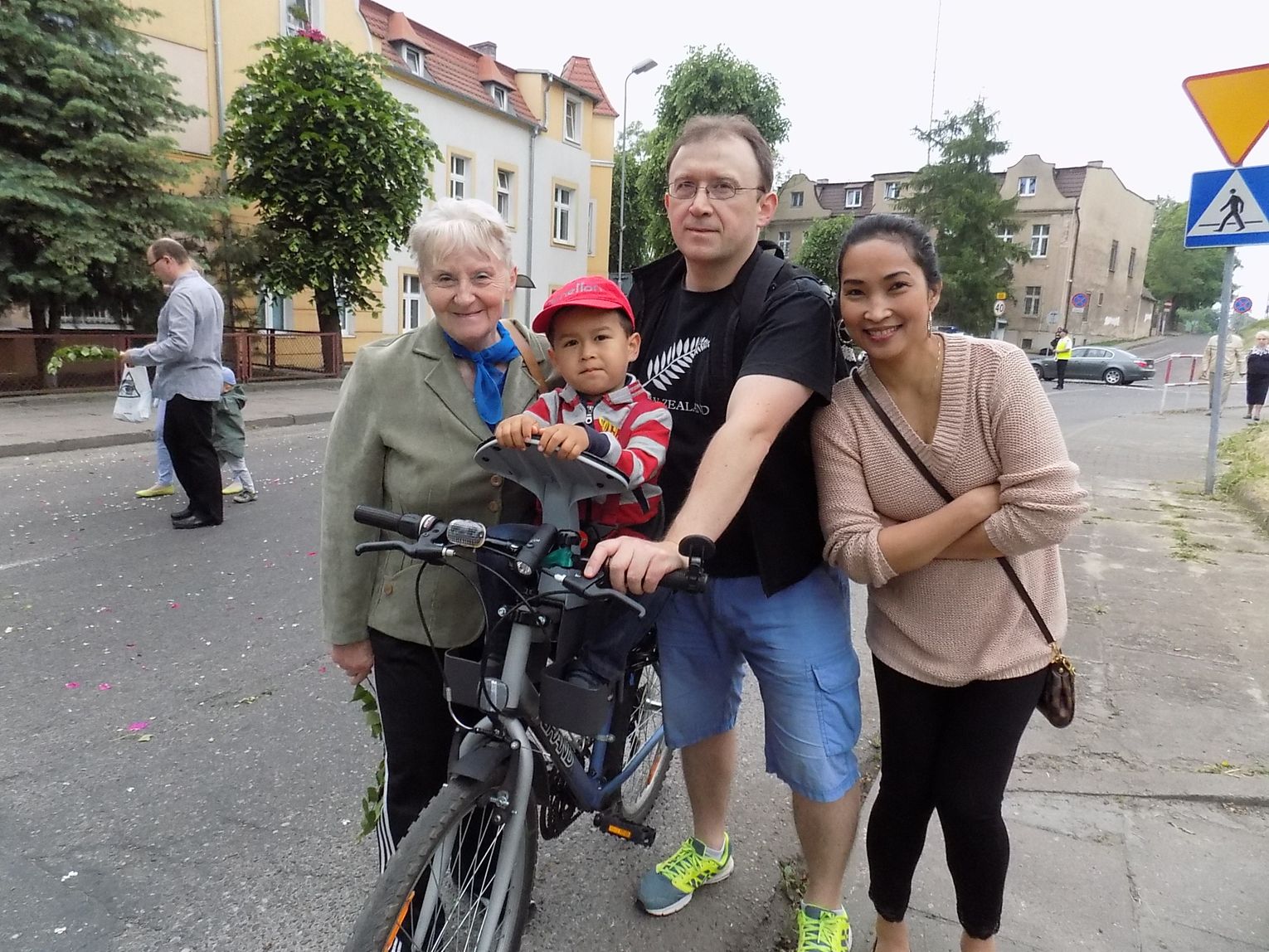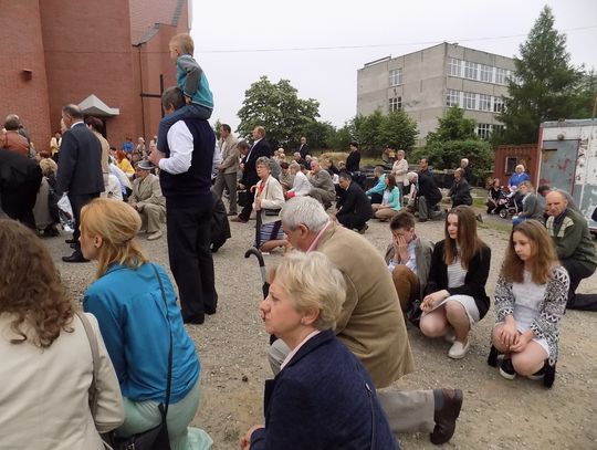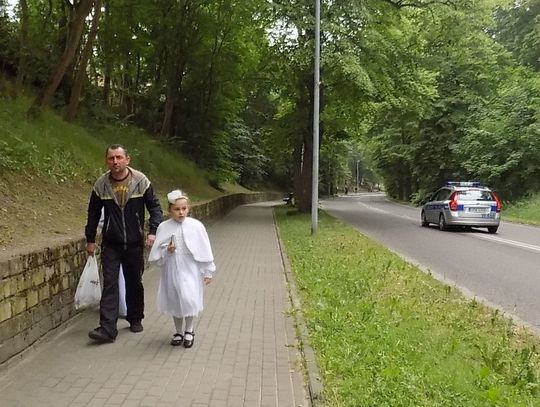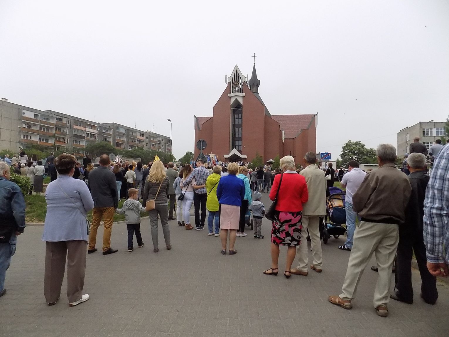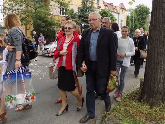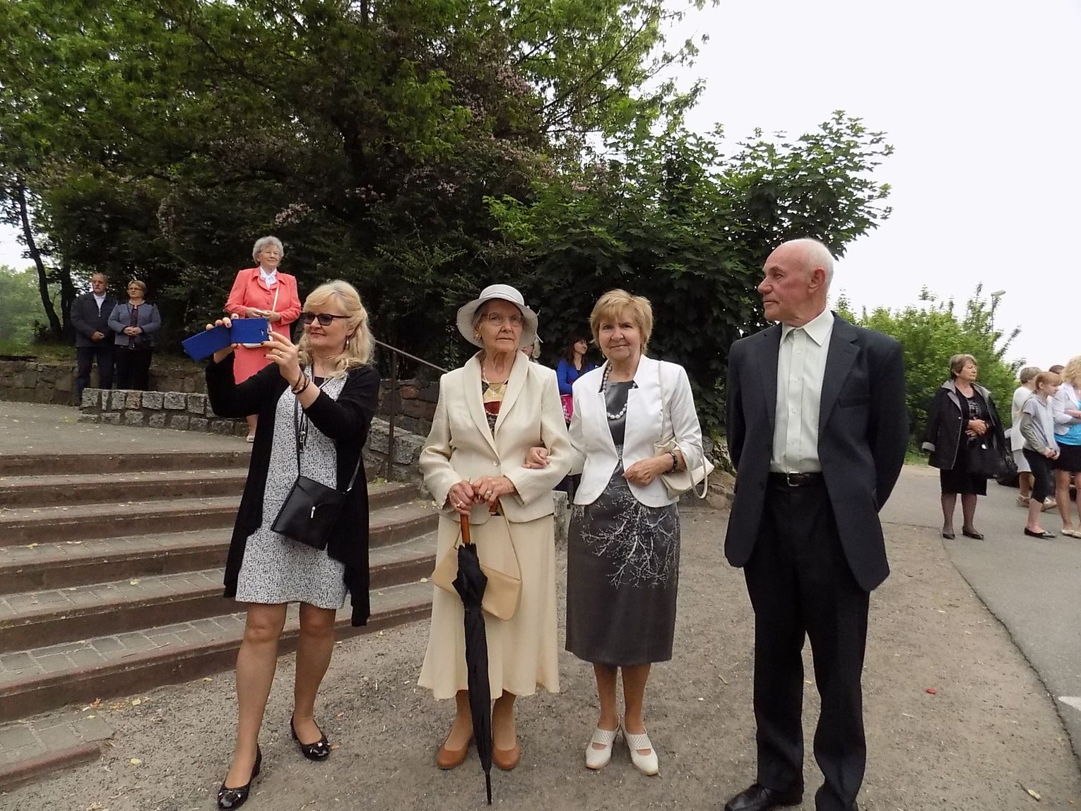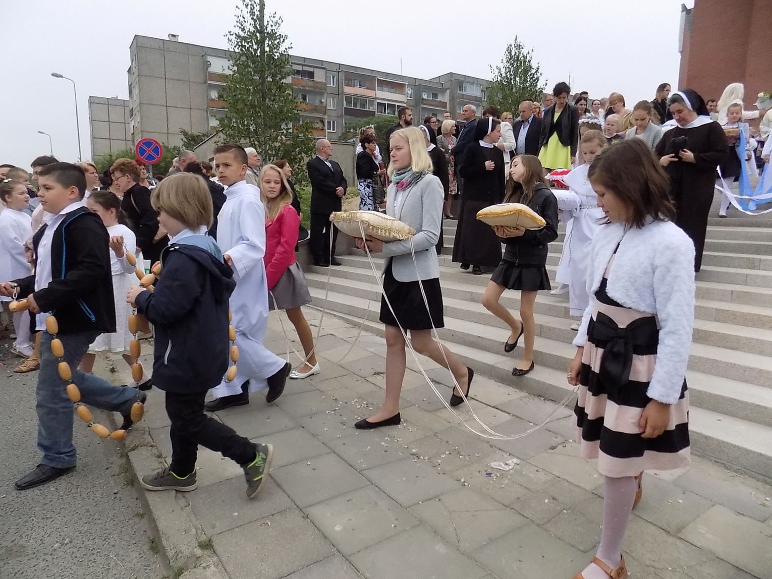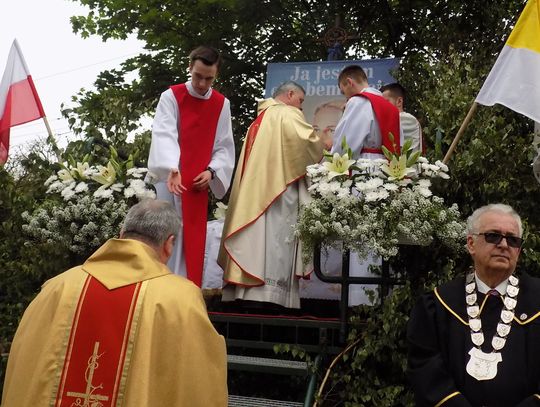 Dziewczynki w białych sukieneczkach sypią kwiaty, bardzo przejęte swoją rolą. Chłopcy niosą ogromny różaniec. Są kobiety adorujące Najświętszą Pannę. Są chorągwie. Gra orkiestra z Dolnej Odry. Wśród księży radujący się gryfinian, dostojny ks. kanonik Bronisław Kozłowski.