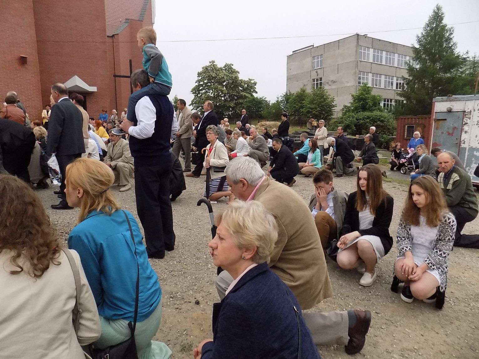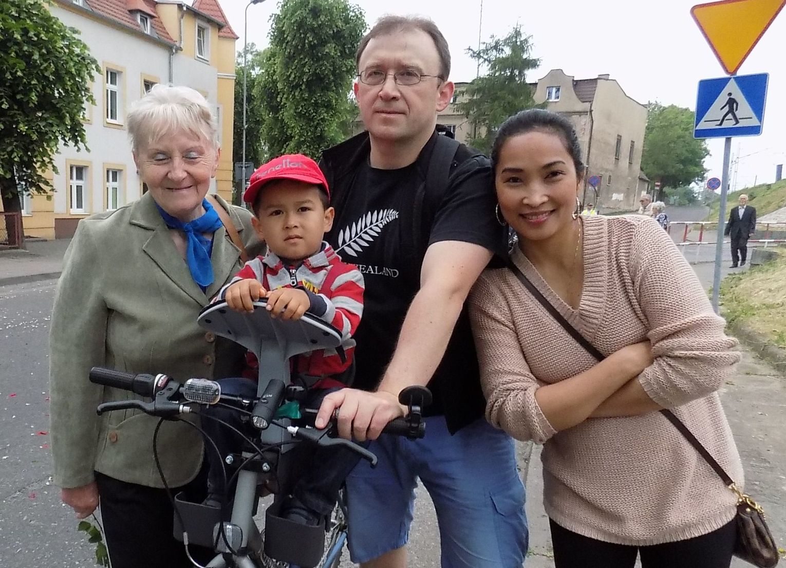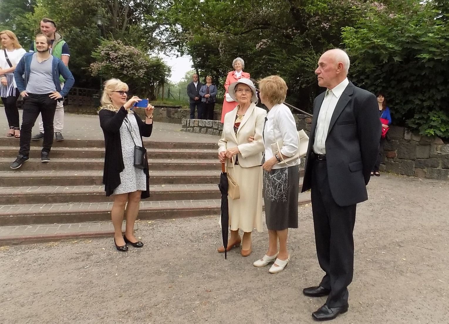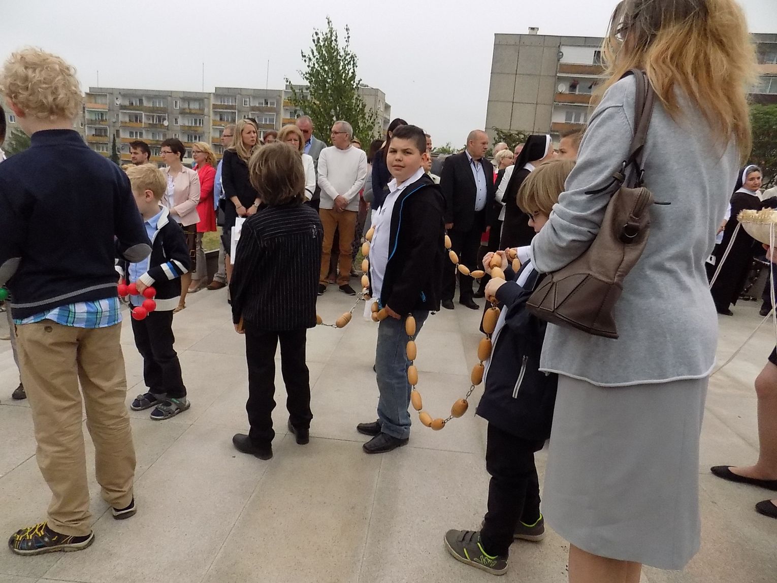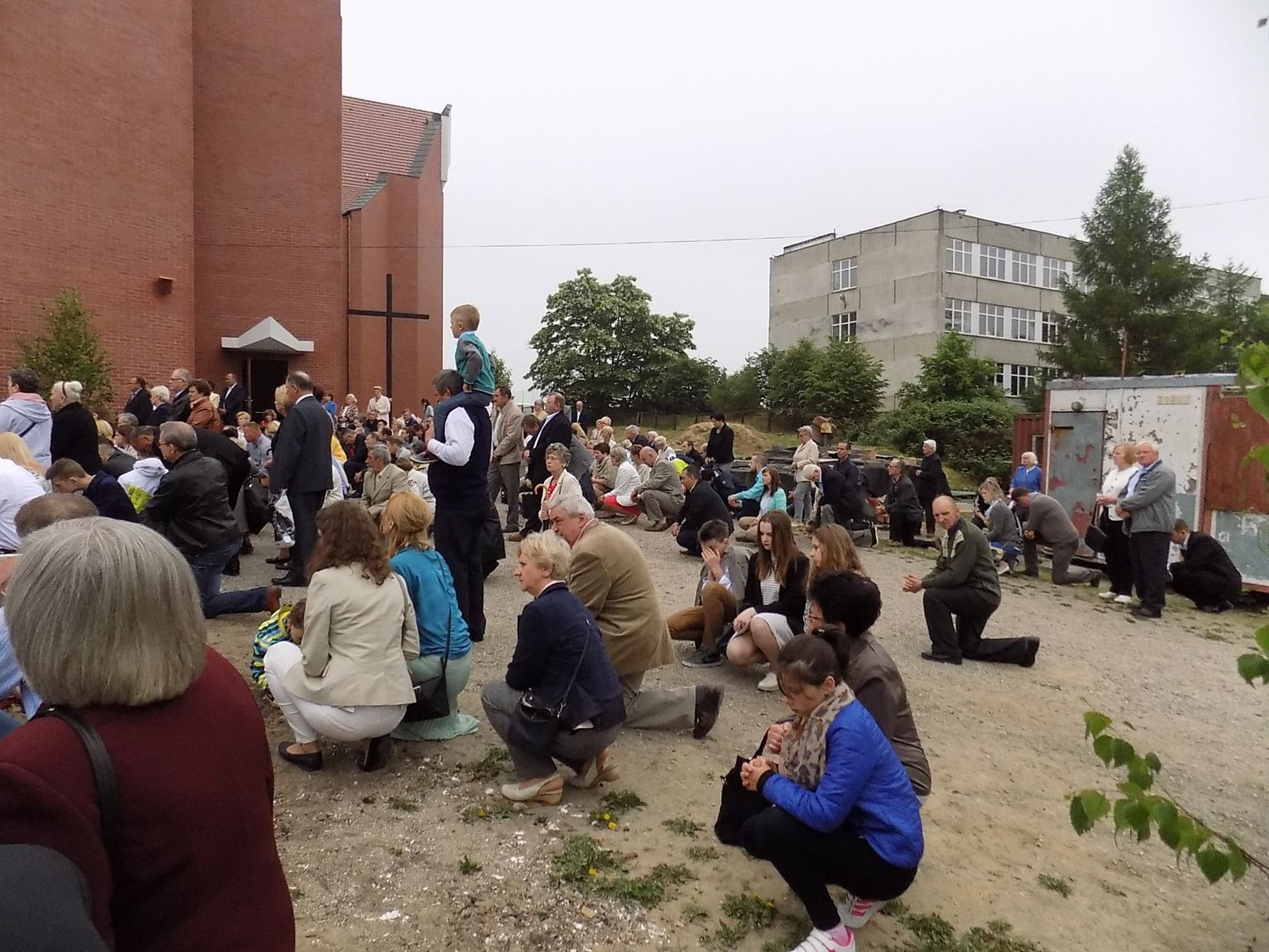 Dziewczynki w białych sukieneczkach sypią kwiaty, bardzo przejęte swoją rolą. Chłopcy niosą ogromny różaniec. Są kobiety adorujące Najświętszą Pannę. Są chorągwie. Gra orkiestra z Dolnej Odry. Wśród księży radujący się gryfinian, dostojny ks. kanonik Bronisław Kozłowski.