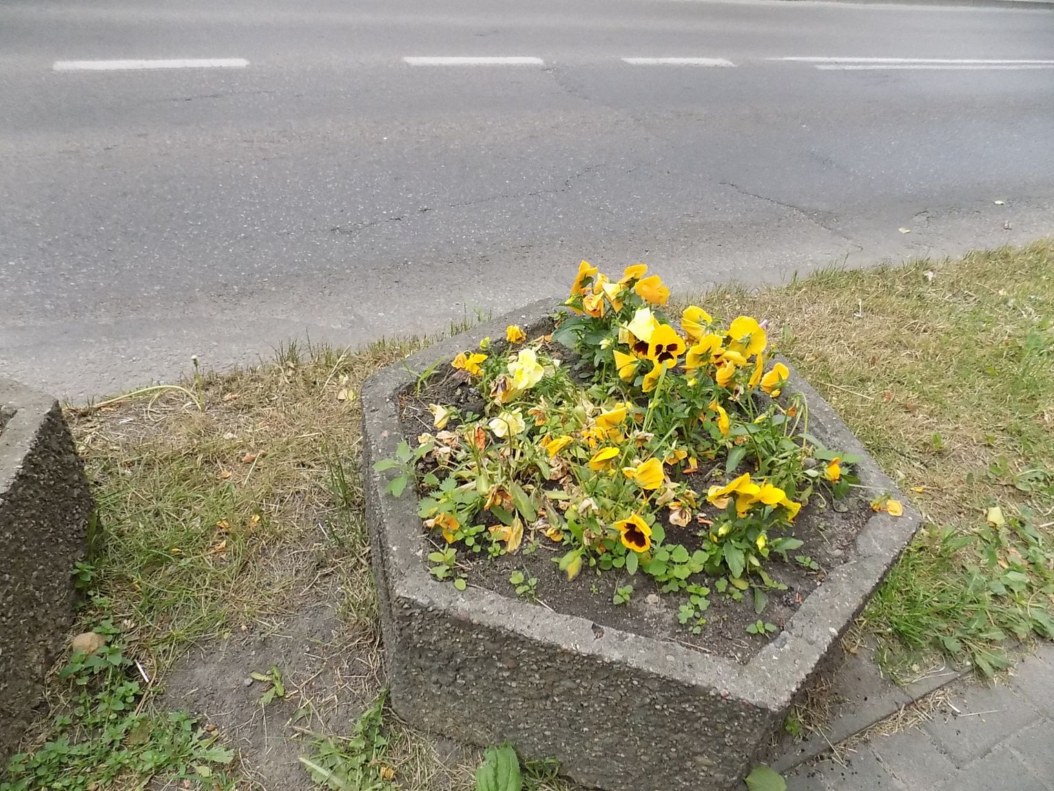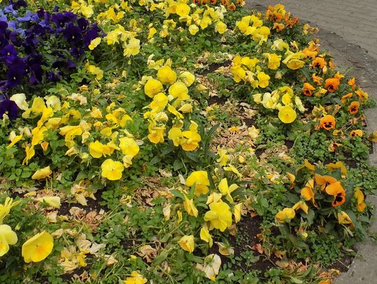 Nie tylko na kwietniku przy ul. Piastów w Gryfinie rośliny czekają na deszcz. Bardziej odporne kwiaty jakoś sobie radzą, natomiast bratki padają. Widać za rzadko i za mało były podlewane. Szkoda. Mam wrażenie, że w zeszłym roku bardziej dbano o kwiaty w mieście.