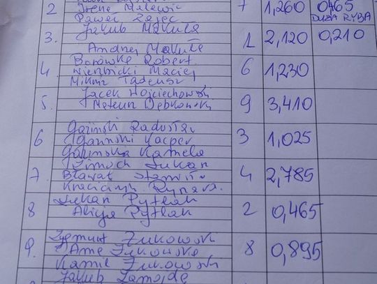 Wyłoniono też zwycięzcę w kategorii – „Największa ryba” . Został nim Ryszard Huk łowiąc lina o wadze 0.465 kg.