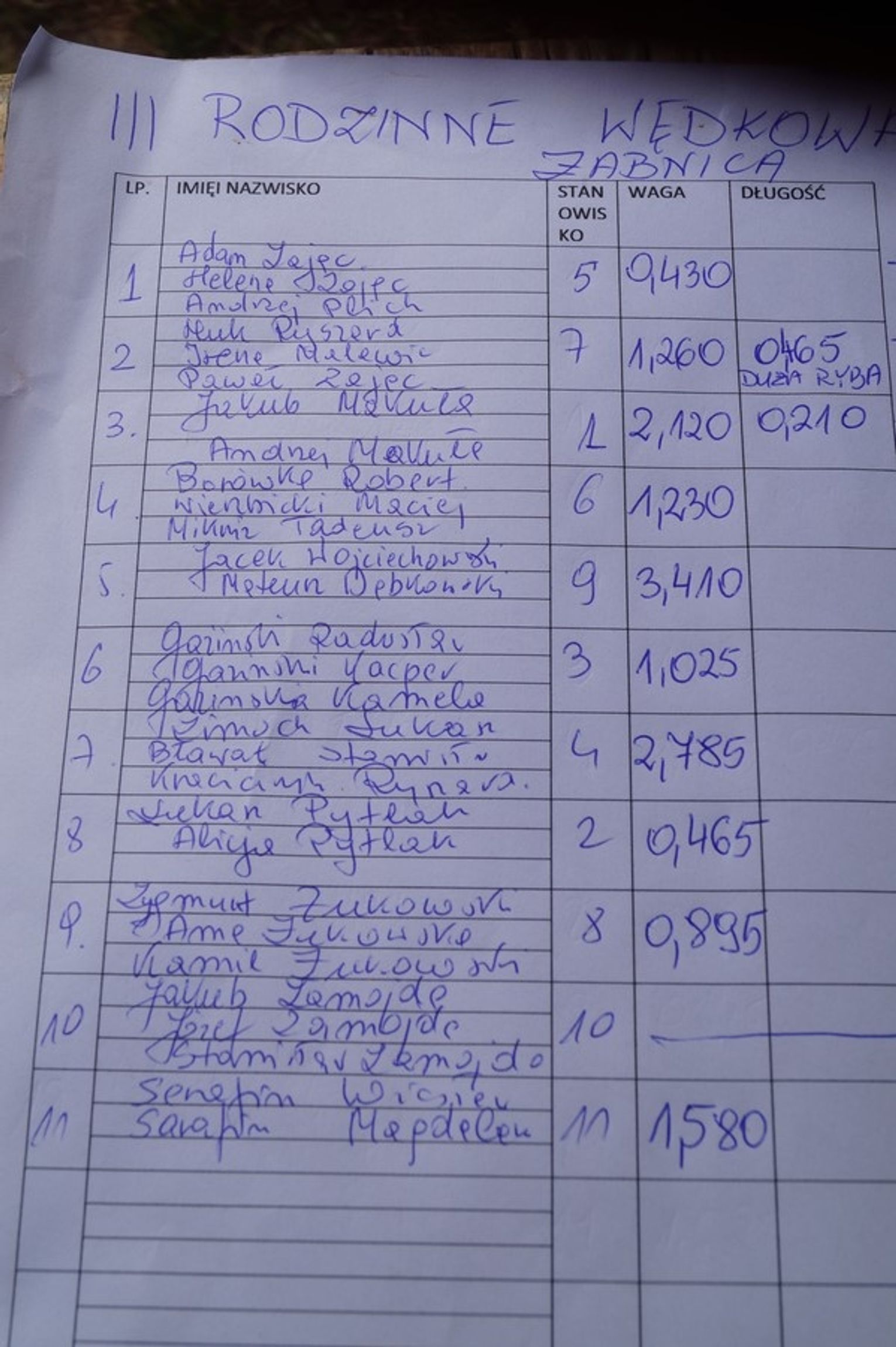 Ale najszczęśliwsze były ryby, które po zważeniu powróciły z powrotem do wody. Organizatory już teraz zapraszają do Żabnicy na kolejne rodzinne wędkowanie za rok.